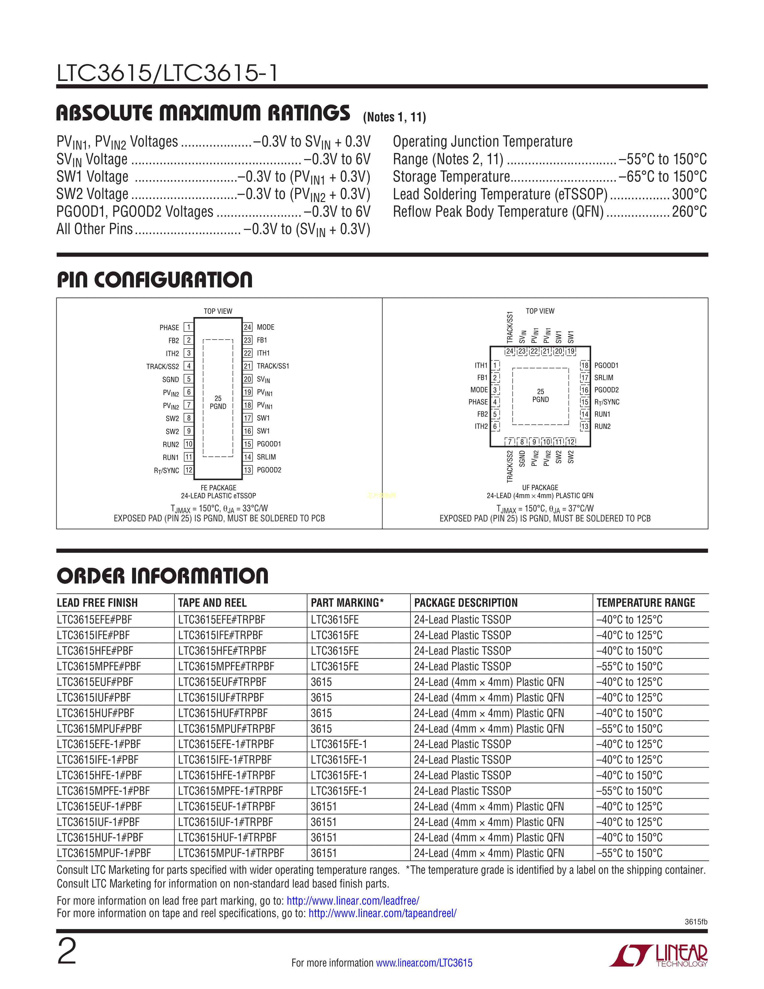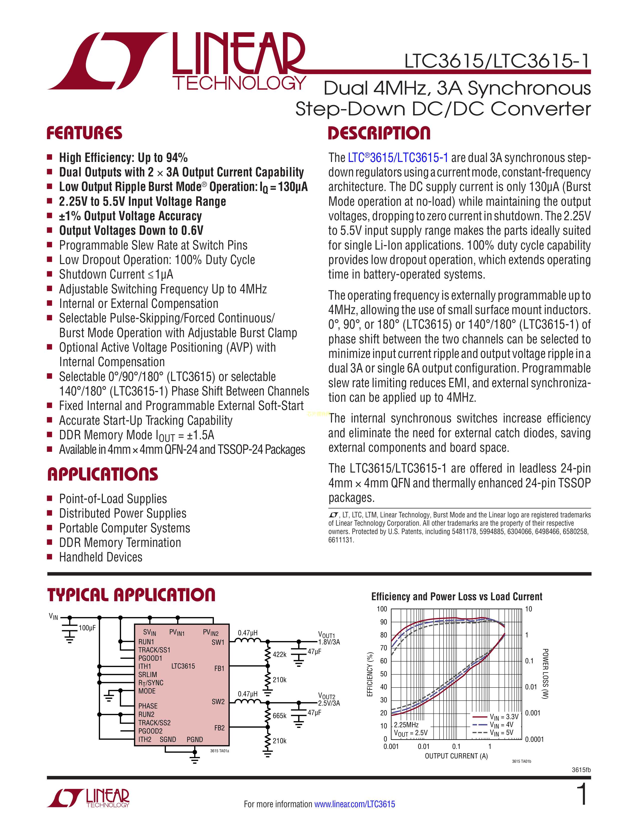 LTC3615HUF-1#PBF数据手册QFN-24封装ADI(亚德诺)-LINEARPDF规格书,