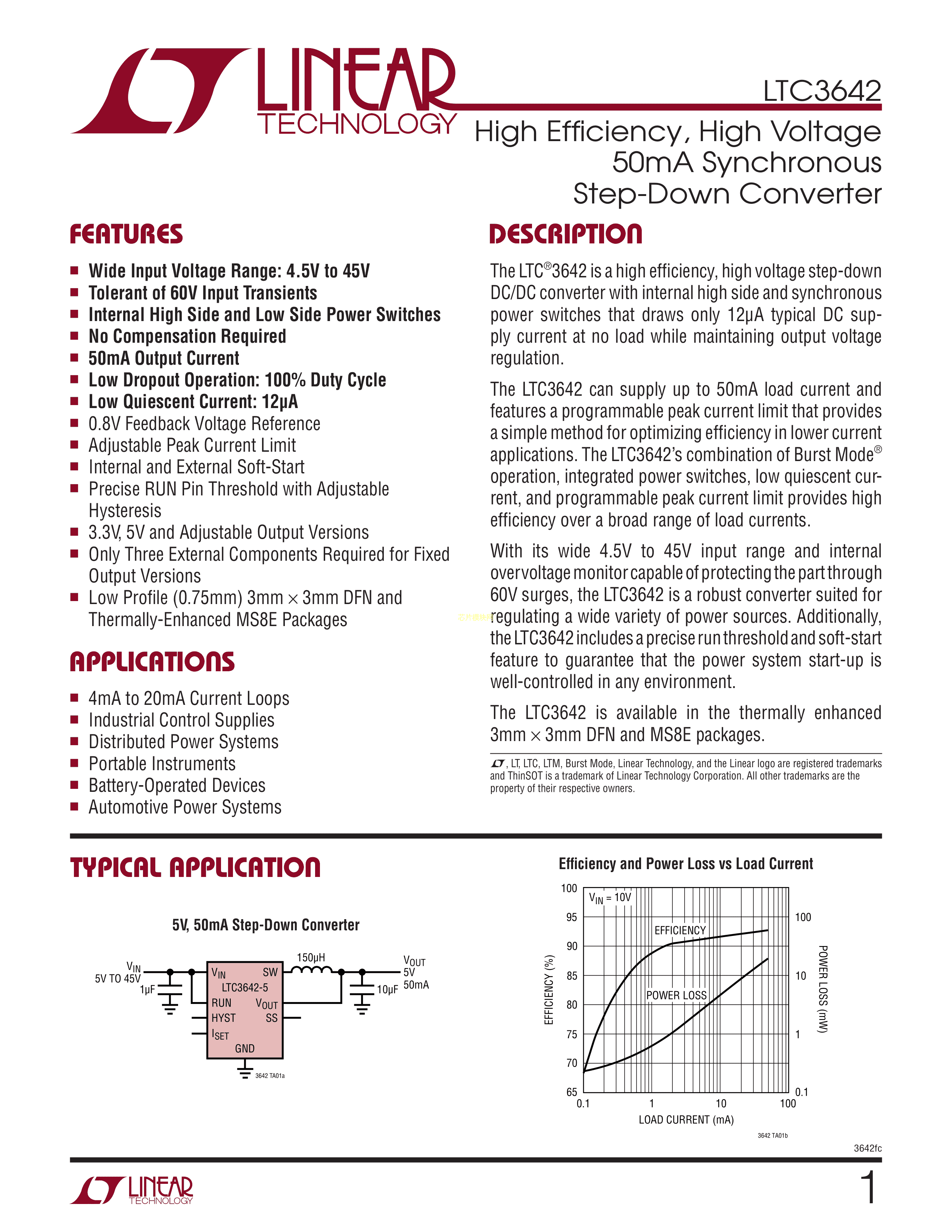 LTC3642EDD-5#PBF数据手册DFN-8封装ADI(亚德诺)-LINEARPDF规格书,中英文下载