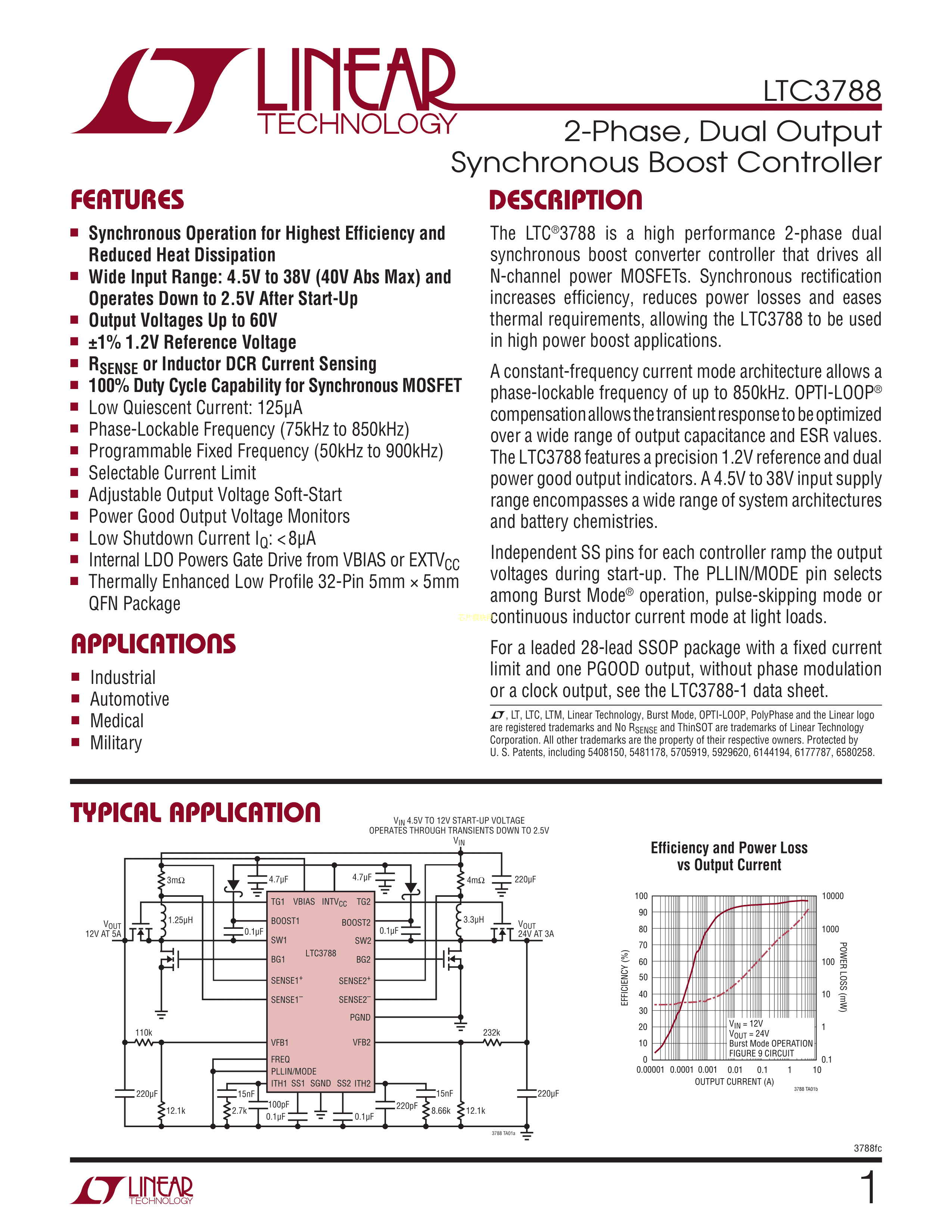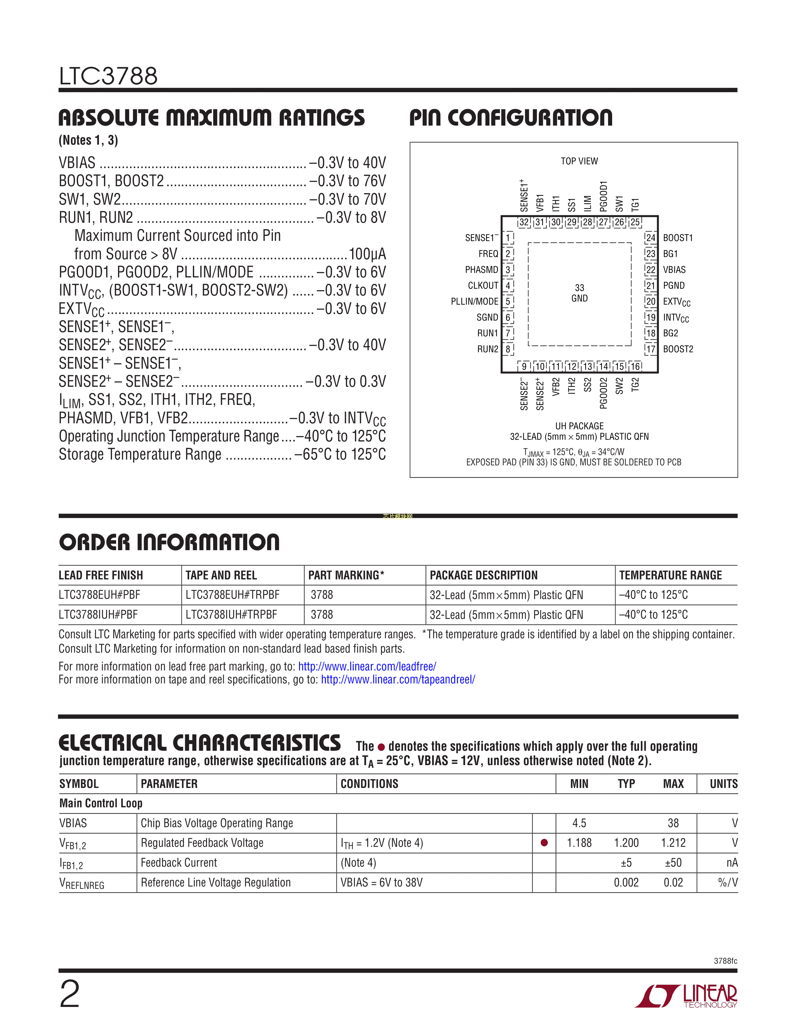LTC3788IUH#TRPBF数据手册QFN-32封装ADI(亚德诺)-LINEARPDF规格书,