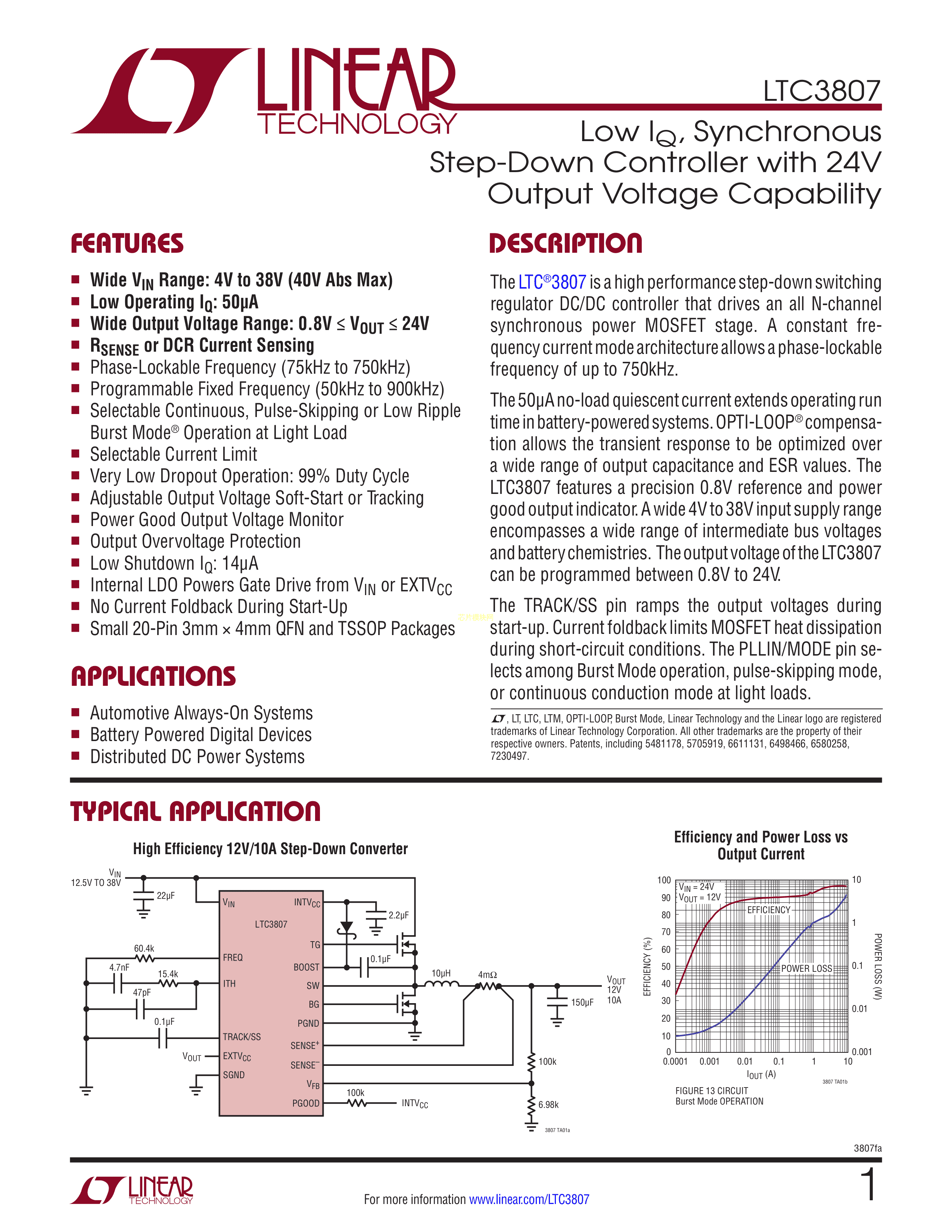 LTC3807MPFE#PBF数据手册TSSOP-20封装ADI(亚德诺)-LINEARPDF规格书