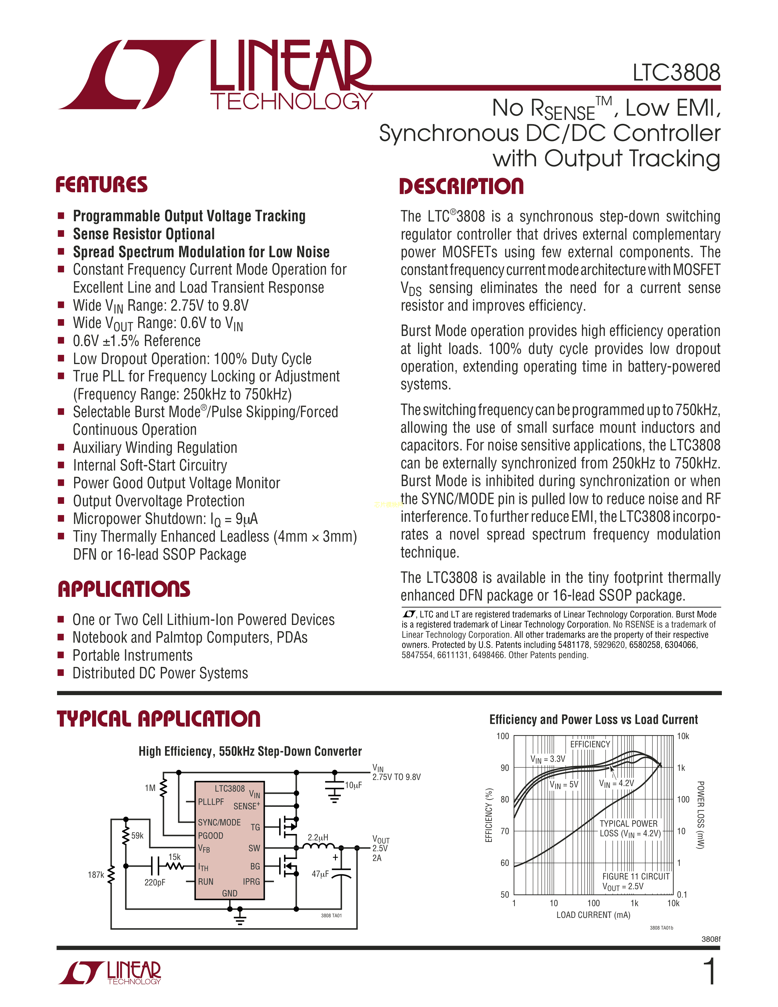 LTC3808EGN#PBF数据手册SSOP-16封装ADI(亚德诺)-LINEARPDF规格书,中