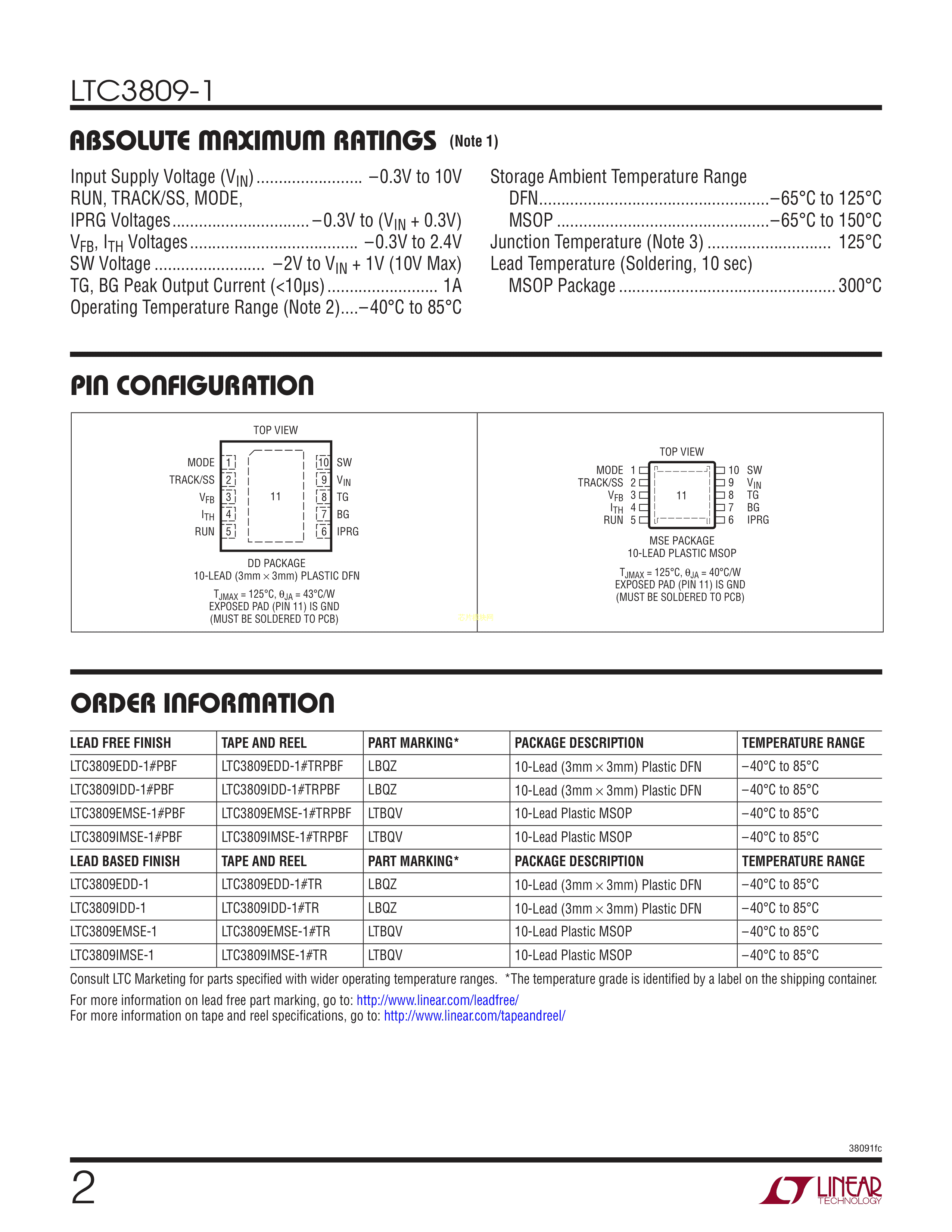 LTC3809IMSE-1#TRPBF数据手册MSOP-10封装ADI(亚德诺)-LINEARPDF