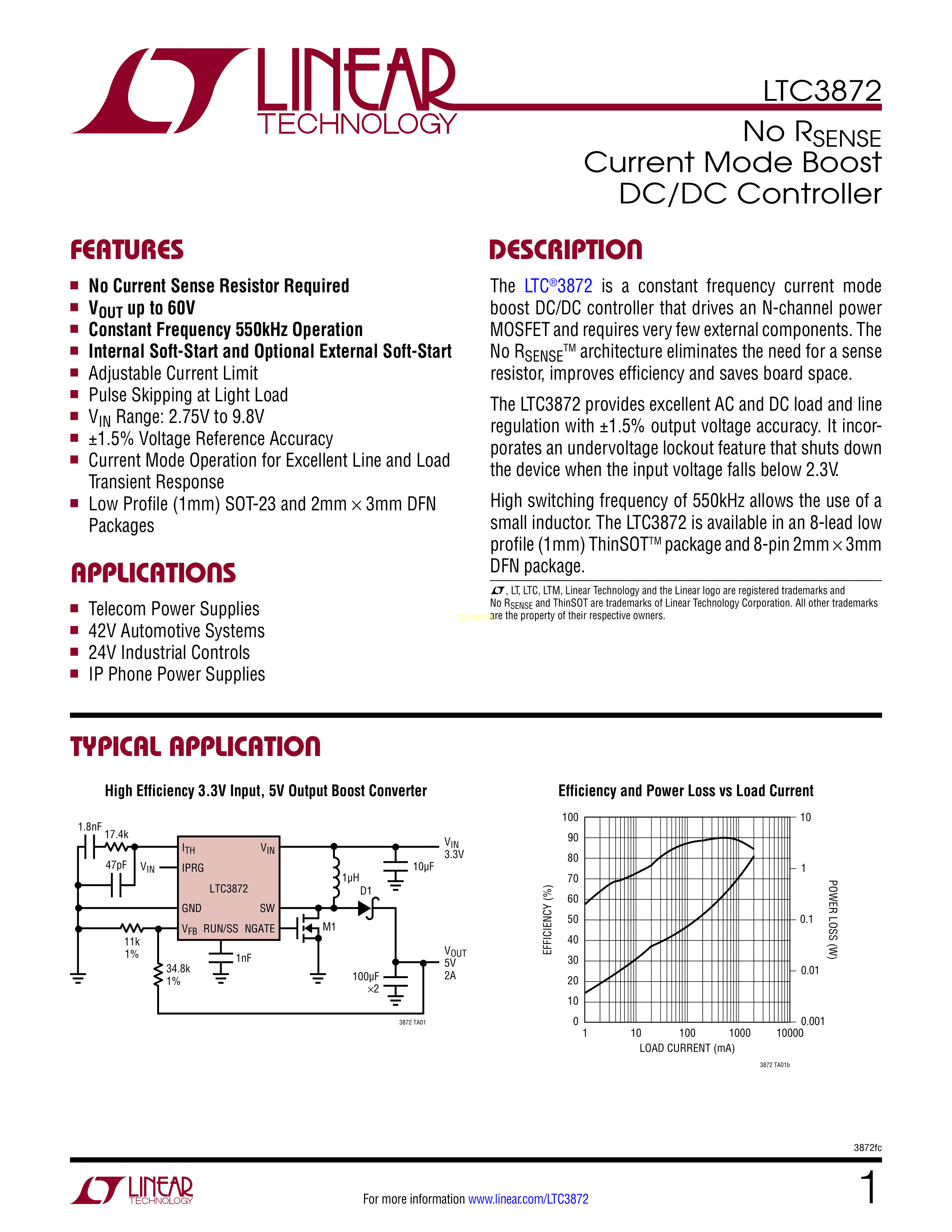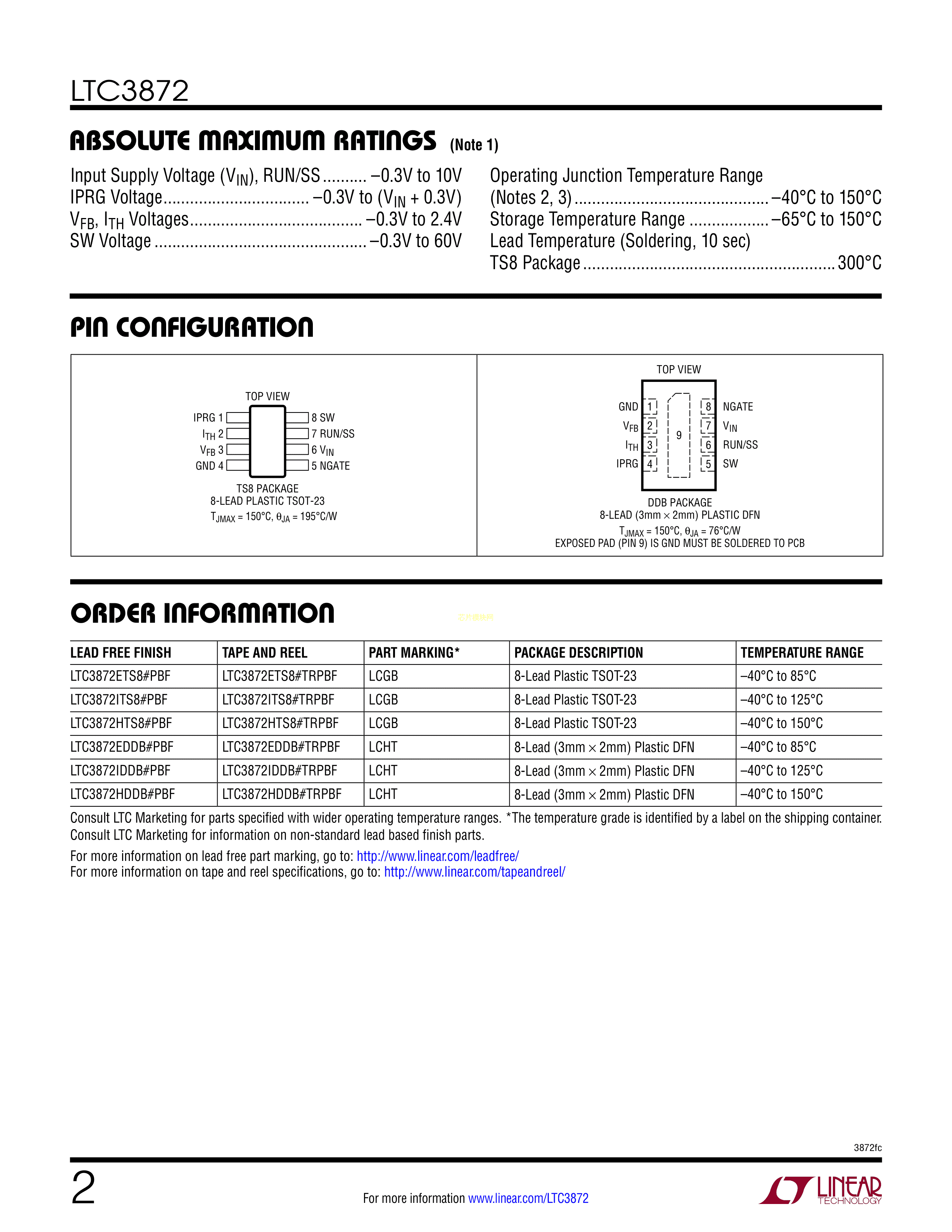 LTC3872ETS8#PBF数据手册TSOT-23-8封装ADI(亚德诺)-LINEARPDF规格