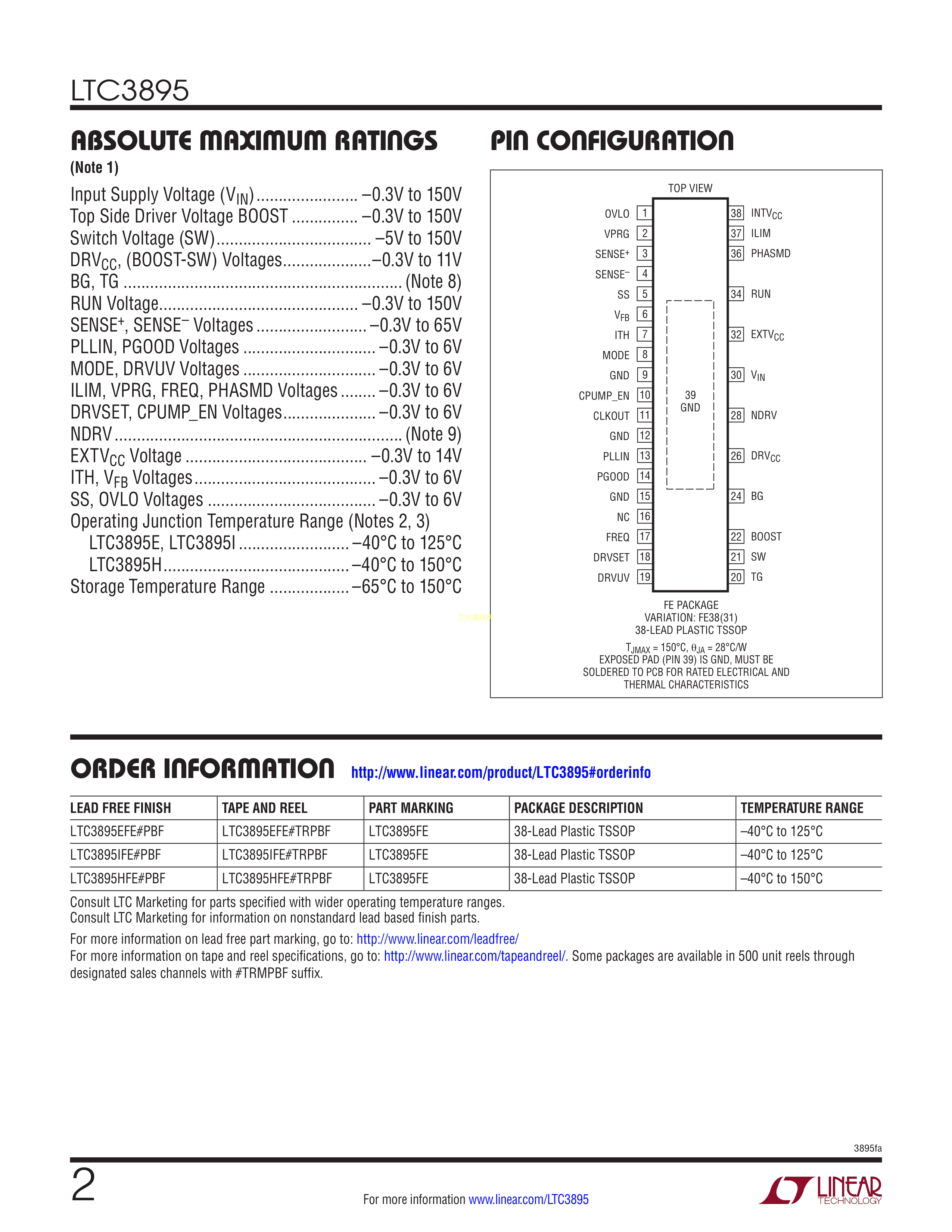 LTC3895HFE#PBF数据手册TSSOP-38封装ADI(亚德诺)-LINEARPDF规格书,