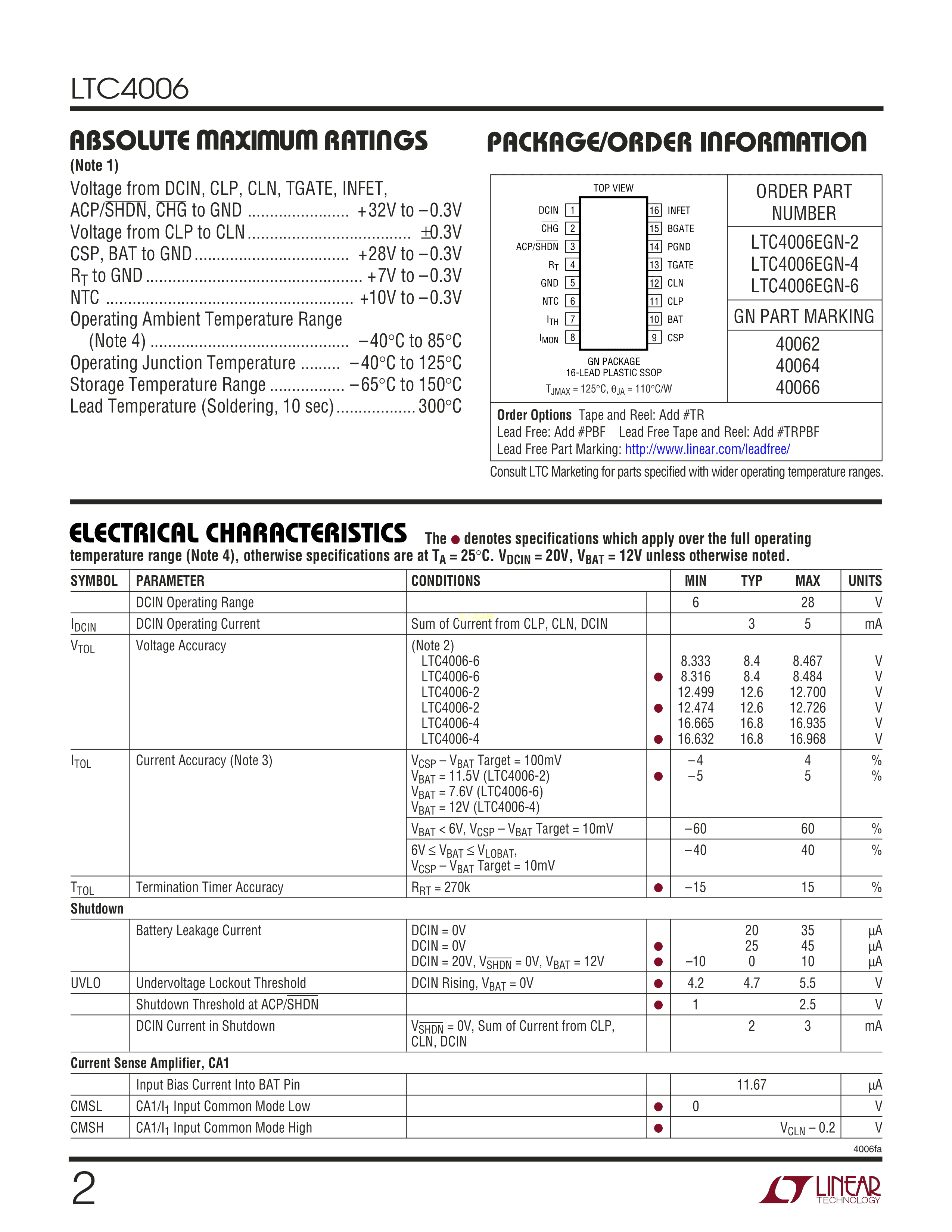LTC4006EGN-2#PBF数据手册SSOP-16封装ADI(亚德诺)-LINEARPDF规格书
