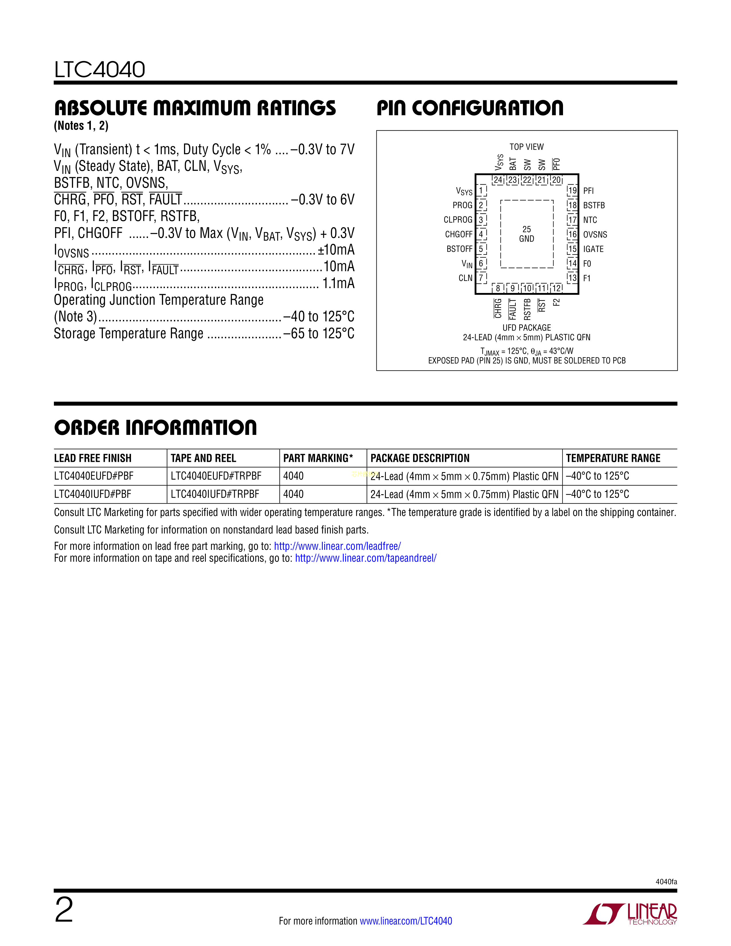 LTC4040EUFD#PBF数据手册QFN-24_4x5x05P封装ADI(亚德诺)-LINEAR