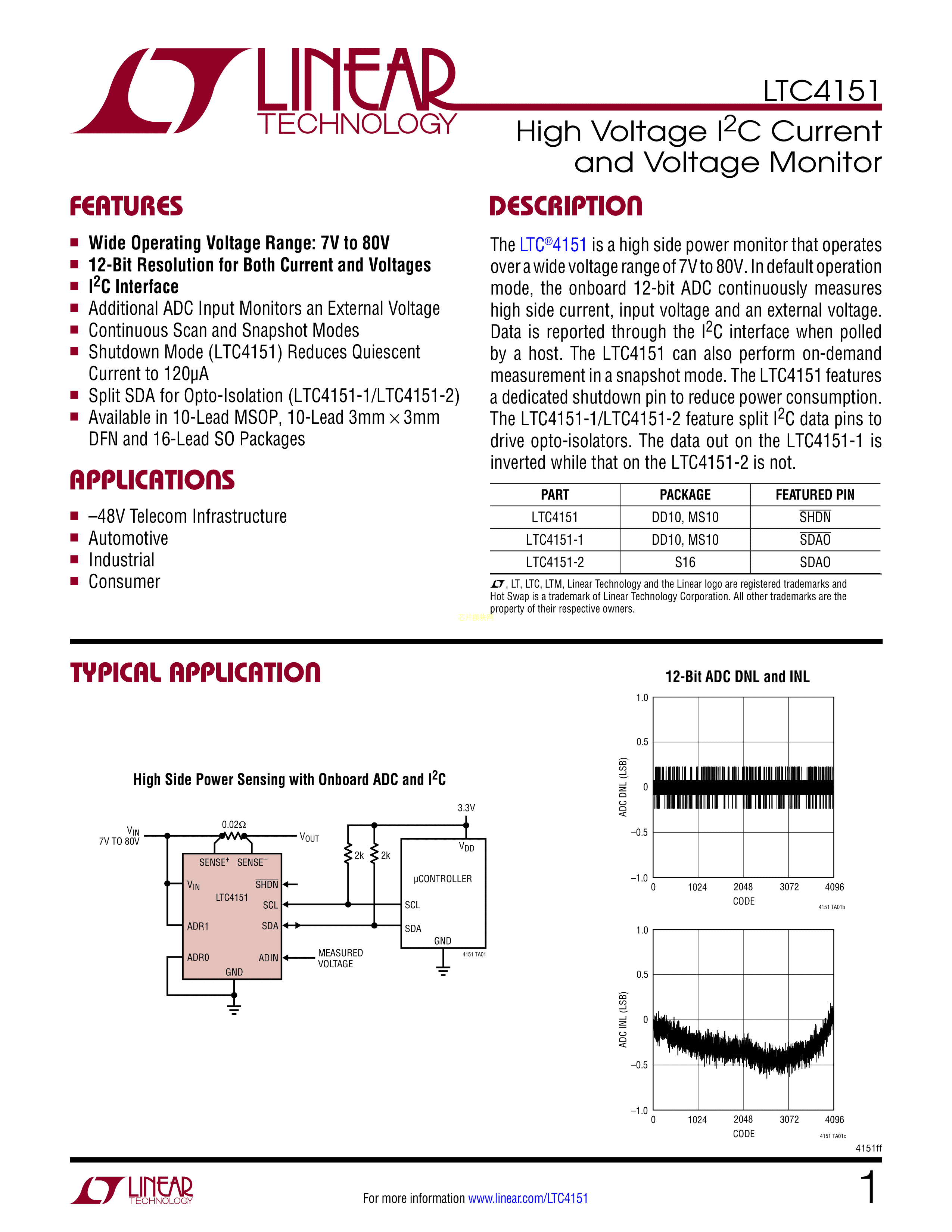 LTC4151CMS-1#TRPBF数据手册MSOP-10封装ADI(亚德诺)-LINEARPDF规