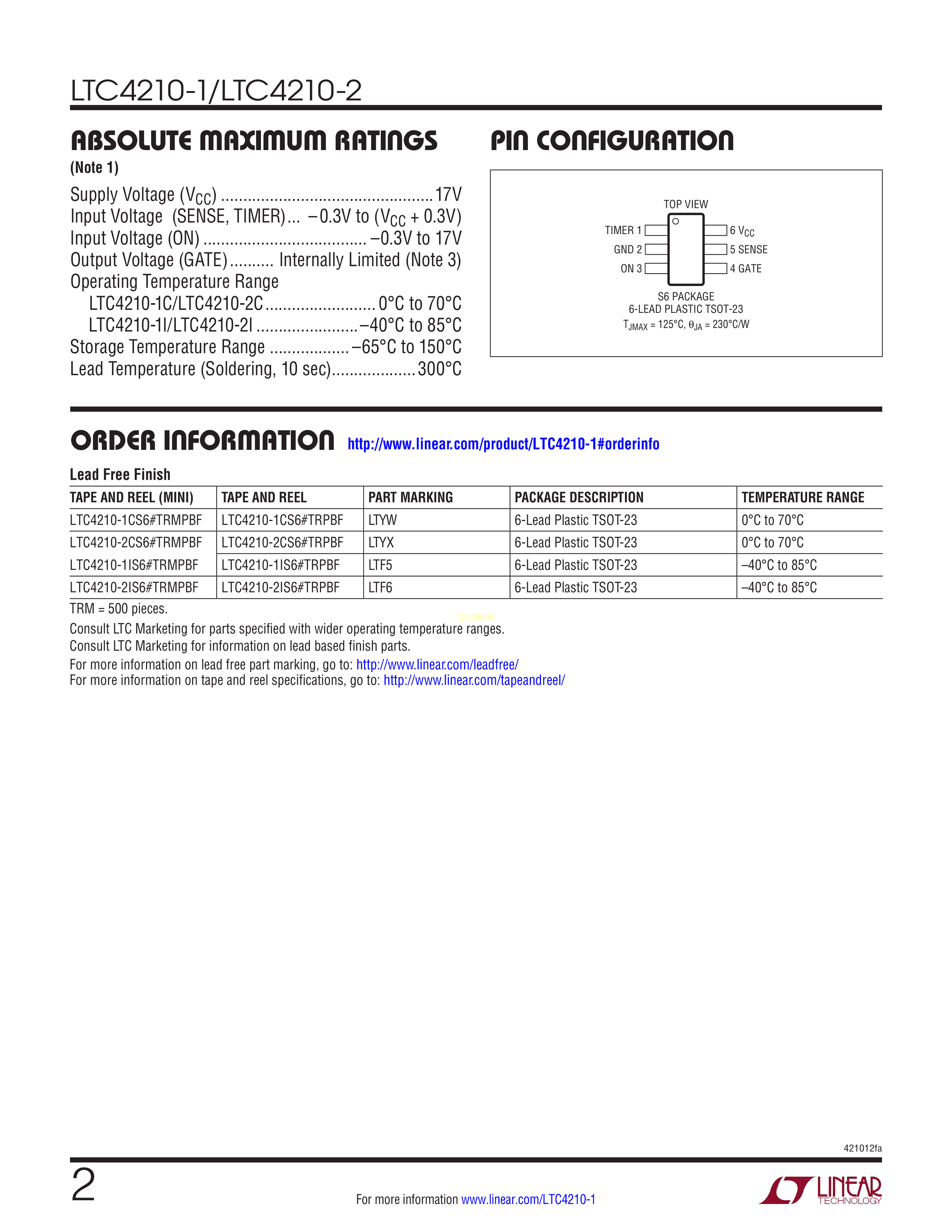 LTC4210-2IS6#TRMPBF数据手册TSOT-23-6封装ADI(亚德诺)-LINEARP
