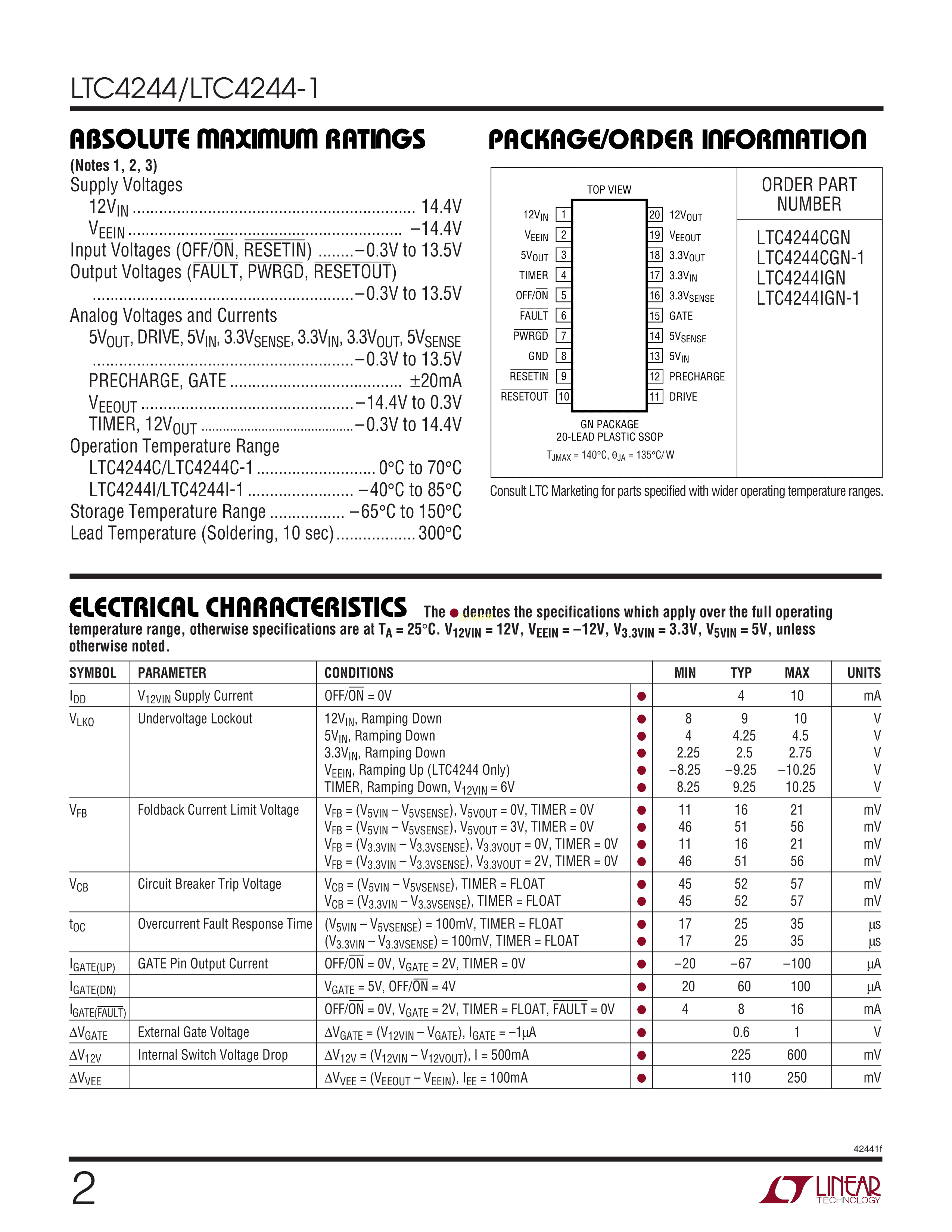 LTC4244CGN#TRPBF数据手册SSOP-20封装ADI(亚德诺)-LINEARPDF规格书