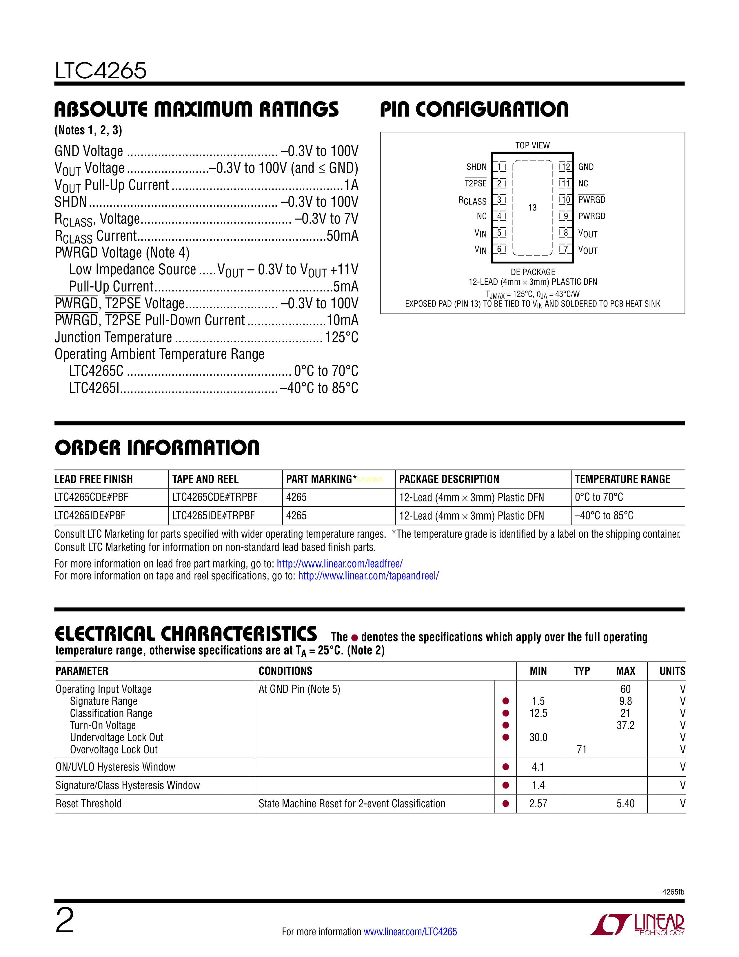 LTC4265IDE#PBF数据手册DFN-12封装ADI(亚德诺)-LINEARPDF规格书,中英