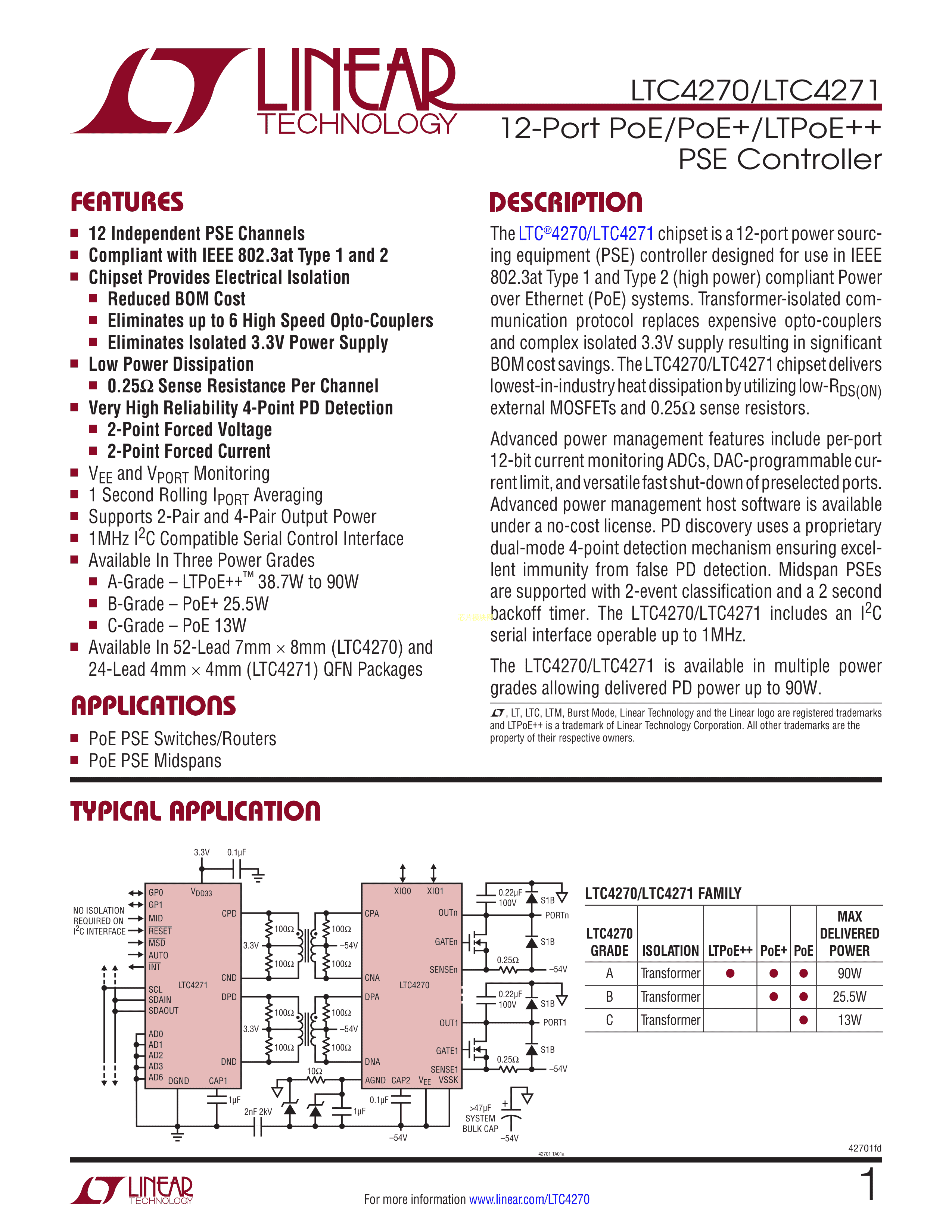 LTC4271IUF#PBF数据手册QFN-24(4x4)封装ADI(亚德诺)-LINEARPDF规