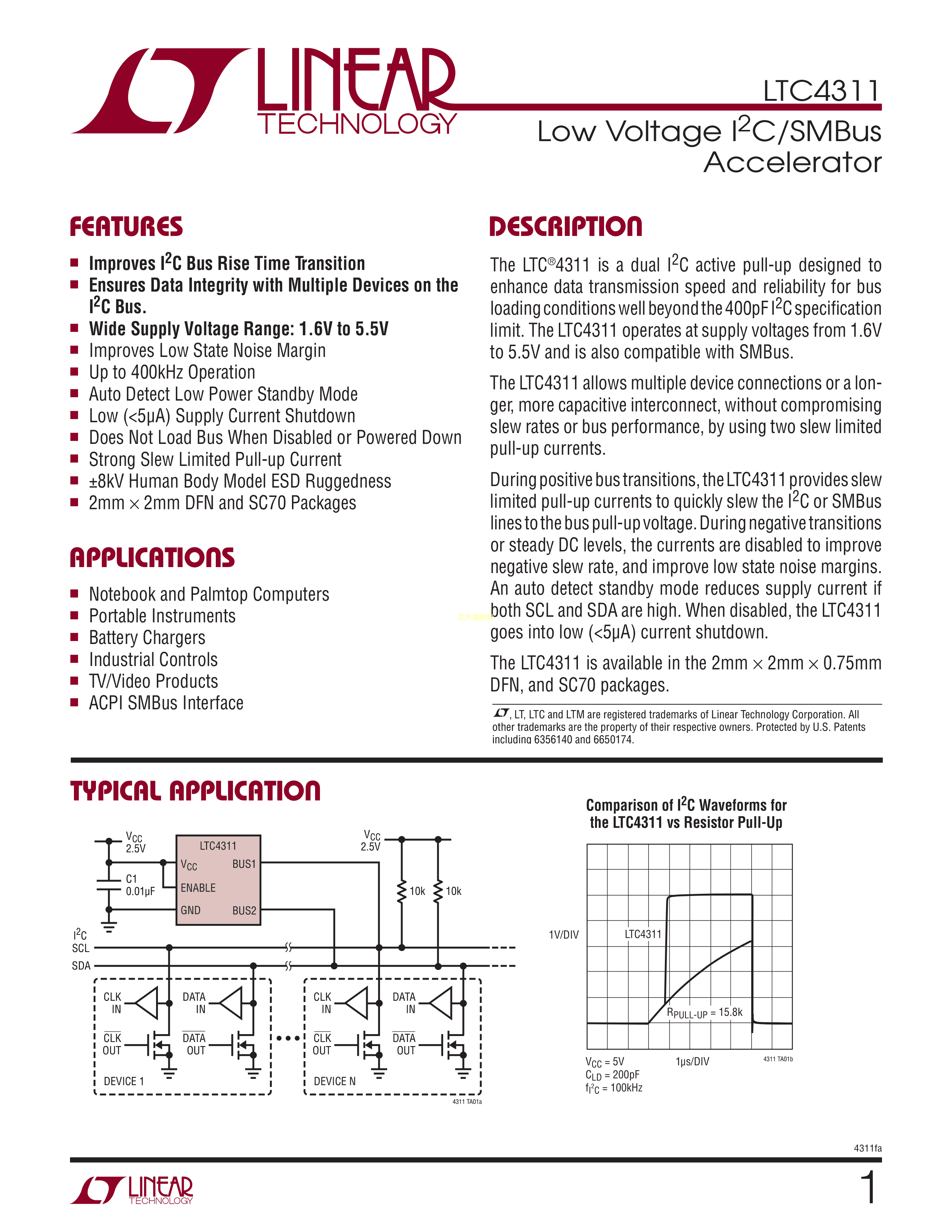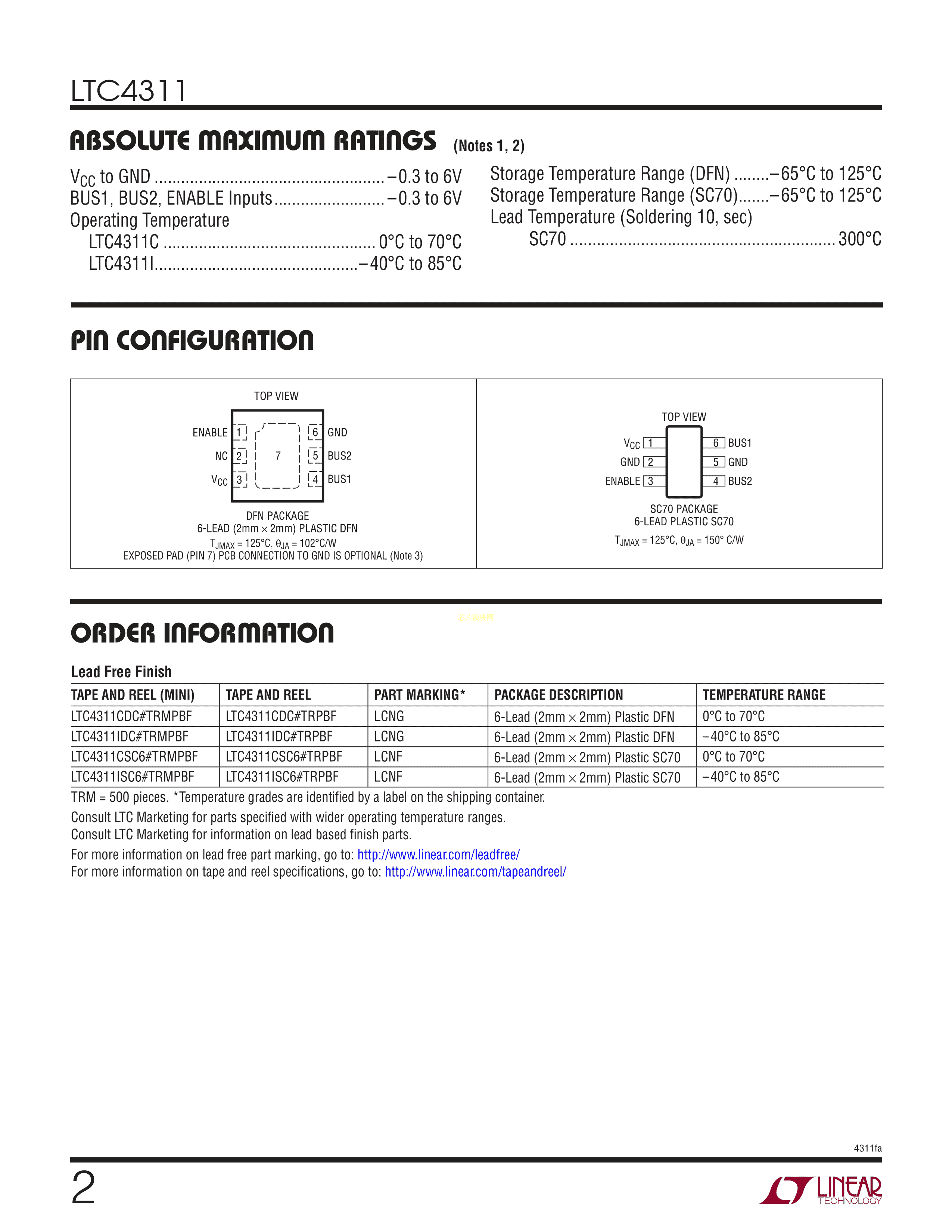LTC4311ISC6#TRMPBF数据手册SC-70-6封装ADI(亚德诺)-LINEARPDF规