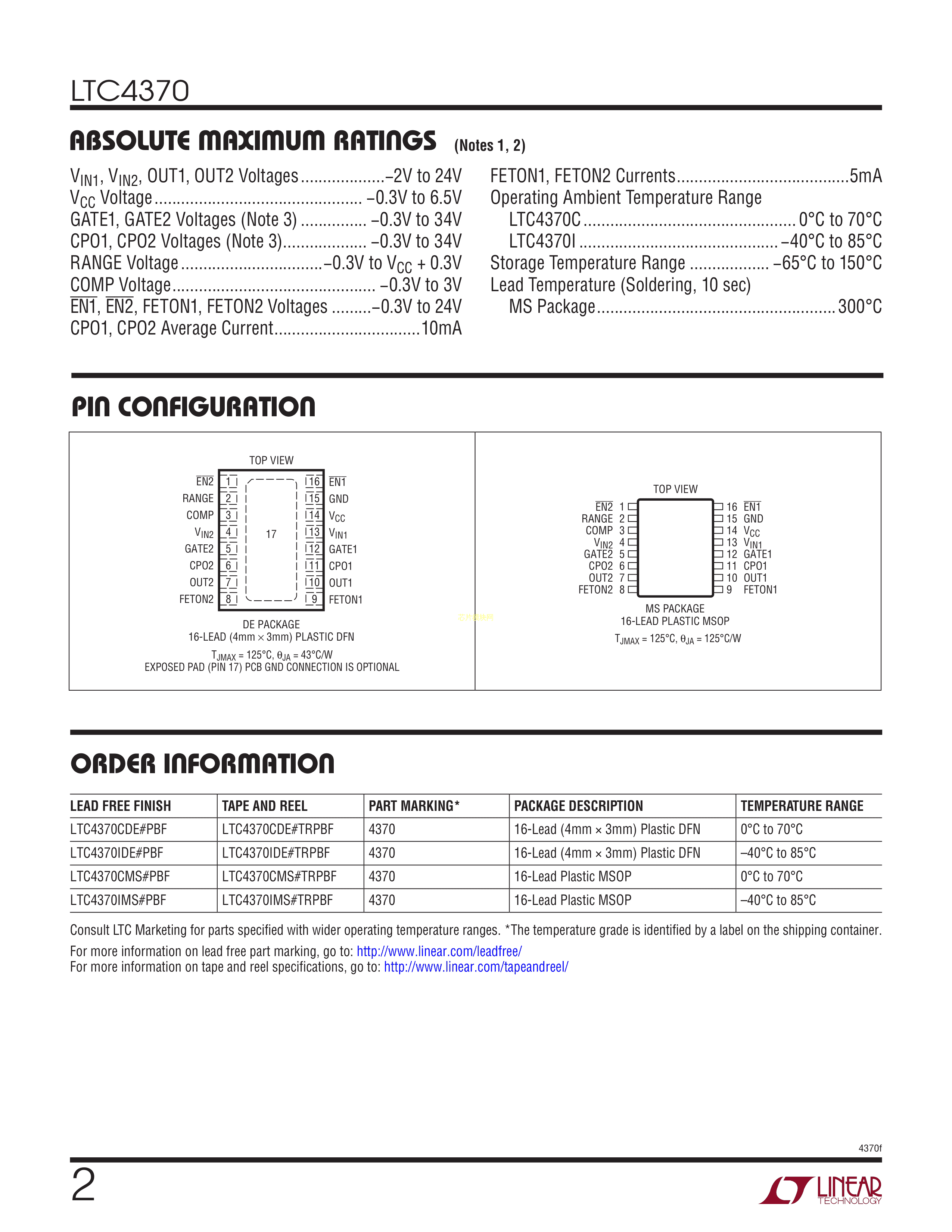 LTC4370CMS#TRPBF数据手册MSOP-16封装ADI(亚德诺)-LINEARPDF规格书