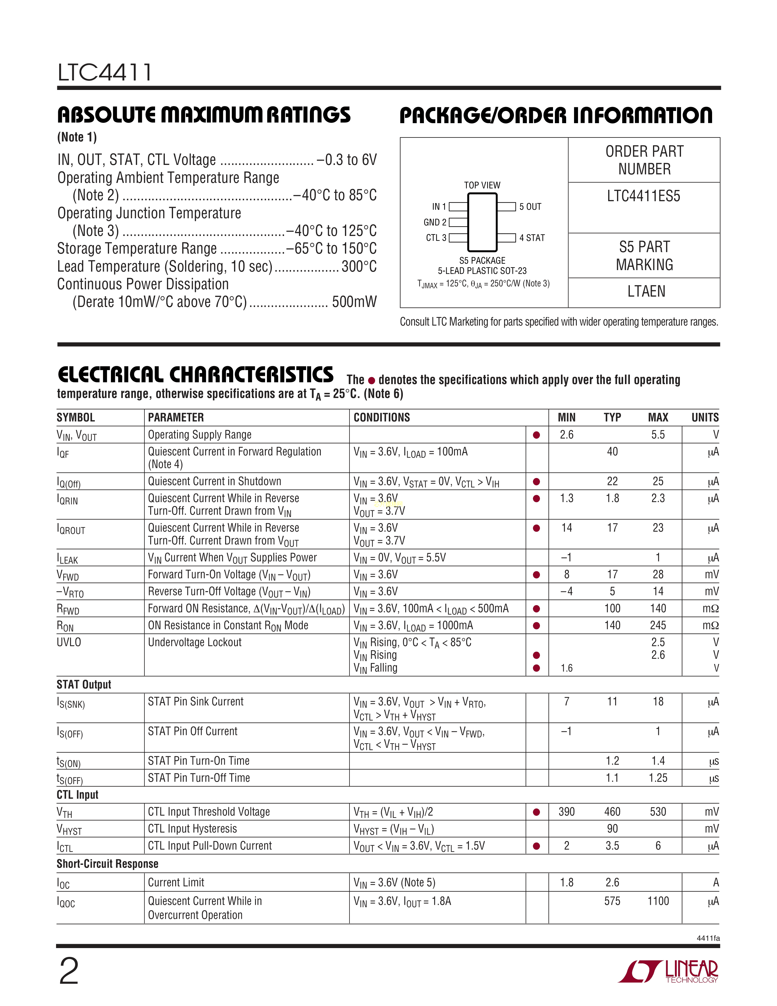 LTC4411ES5#TRPBF数据手册TSOT-23-5封装ADI(亚德诺)-LINEARPDF规