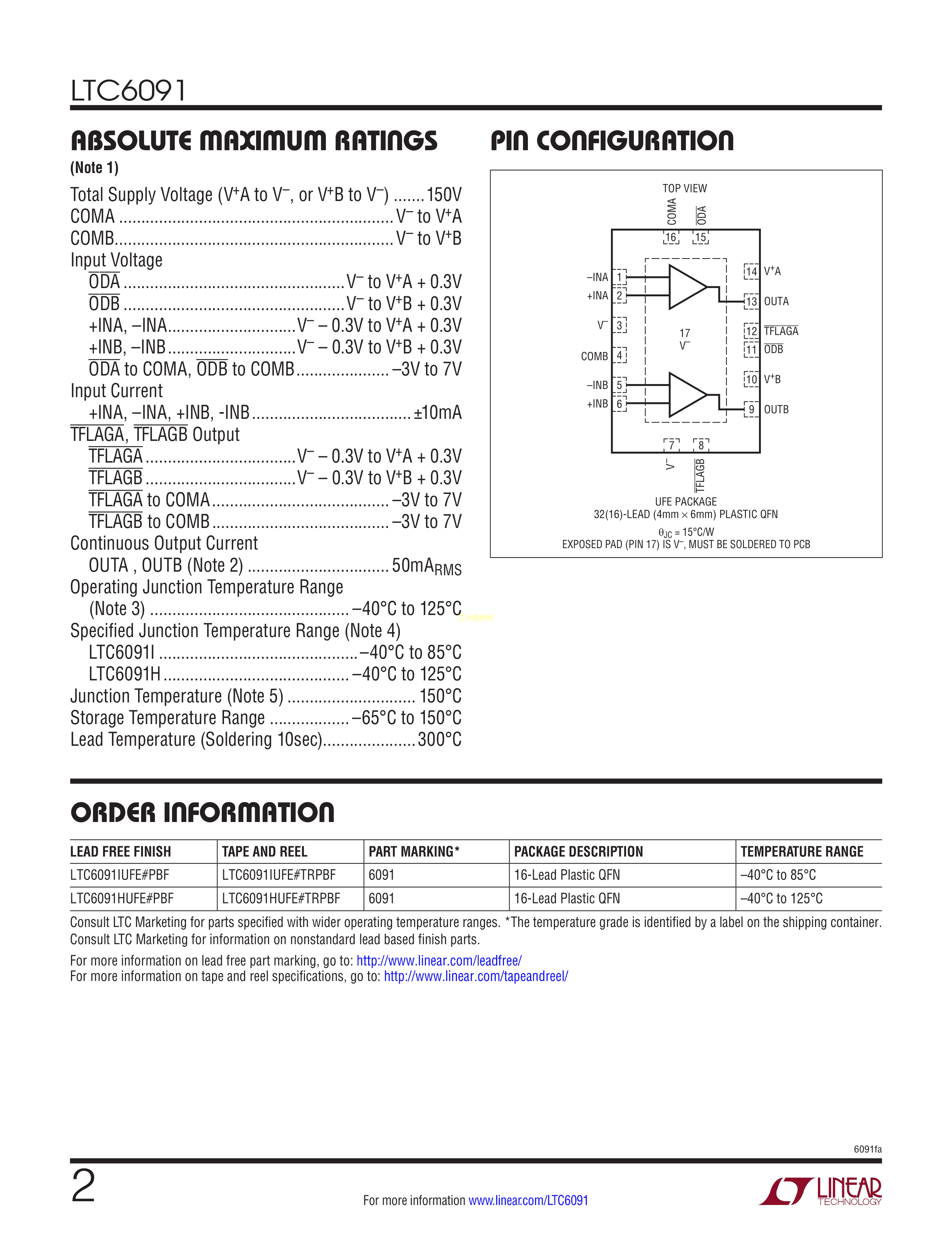 LTC6091HUFE#TRPBF数据手册QFN-16封装ADI(亚德诺)-LINEARPDF规格书,中英文下载