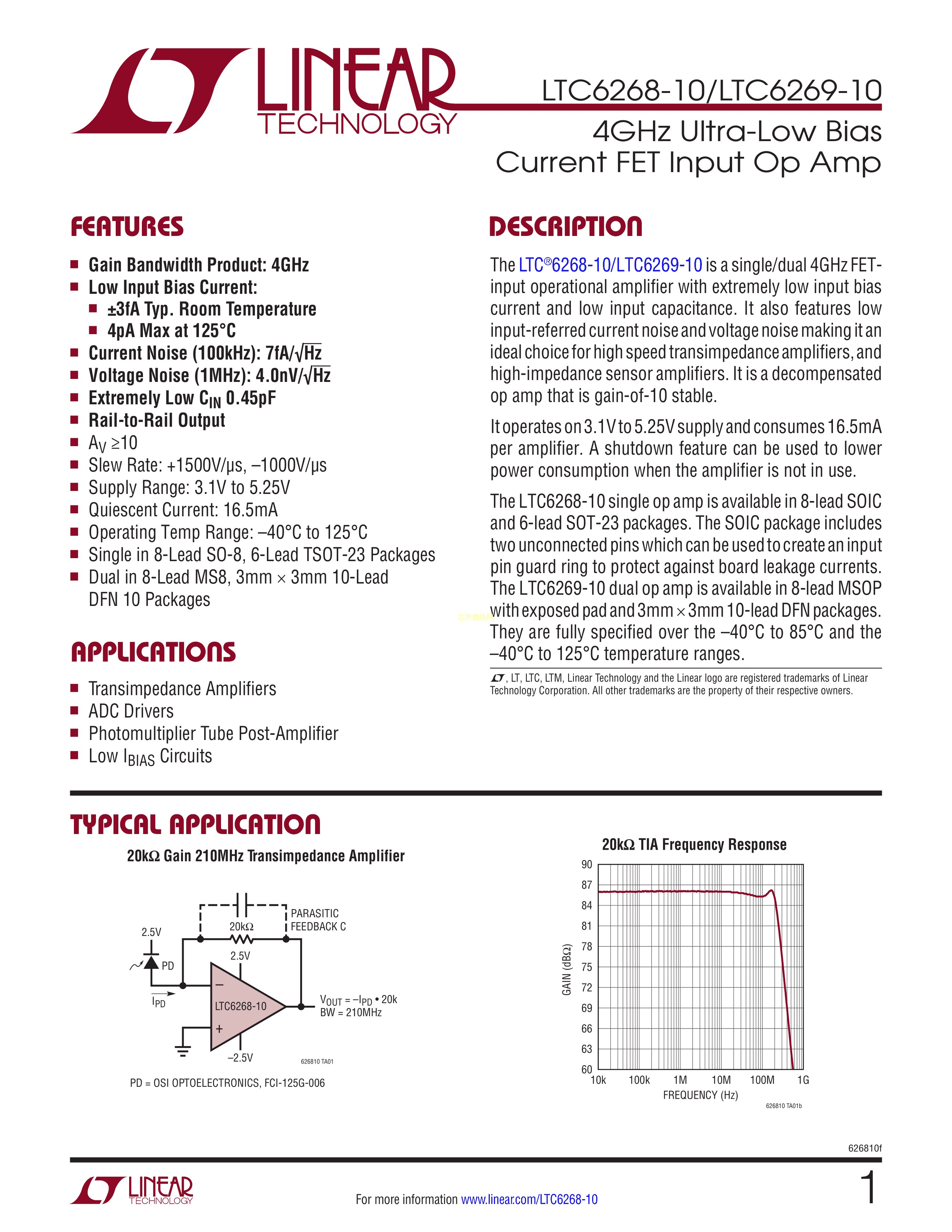 LTC6269IDD-10#PBF数据手册DFN-10封装ADI(亚德诺)-LINEARPDF规格书