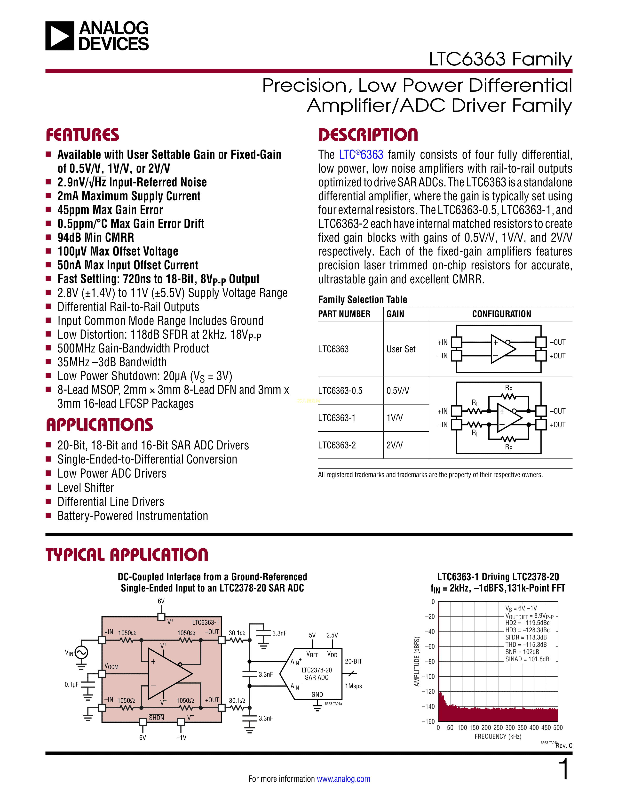 LTC6363HRD#PBF数据手册LFCSP-16封装ADI(亚德诺)-LINEARPDF规格书,
