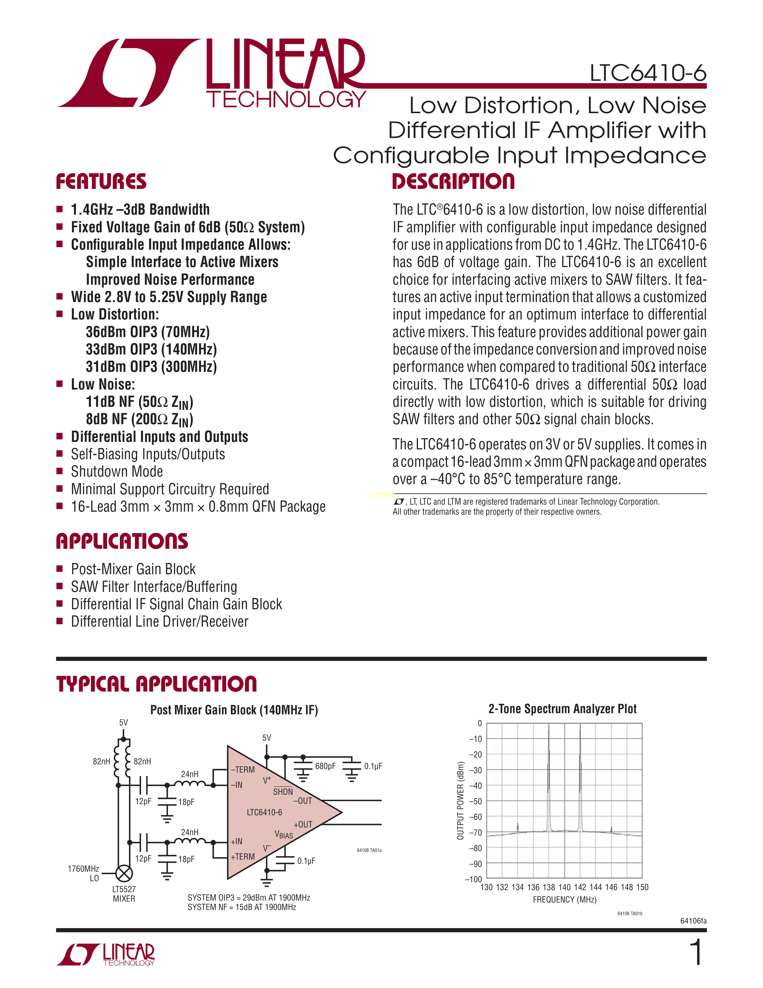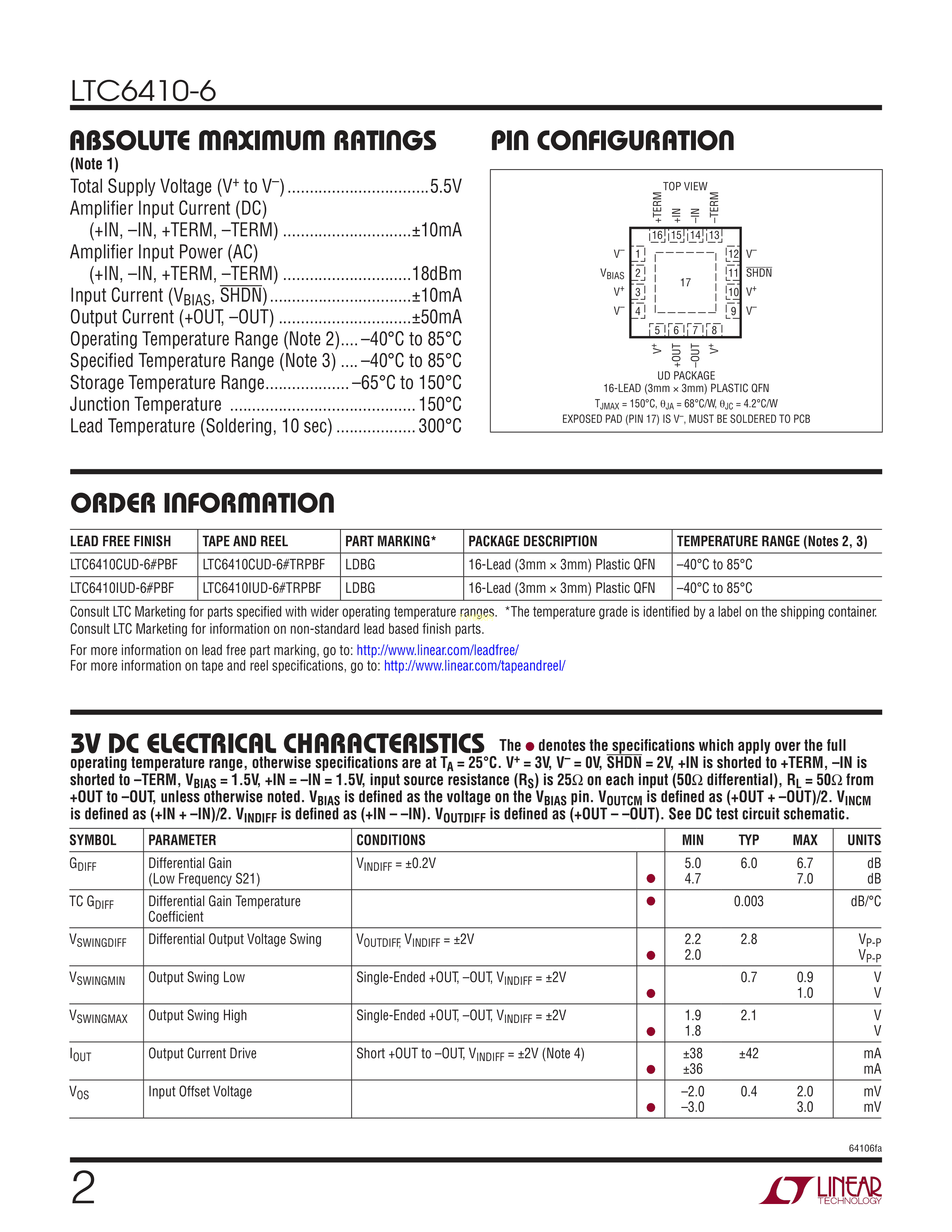 LTC6410CUD-6#PBF数据手册QFN-16封装ADI(亚德诺)-LINEARPDF规格书,