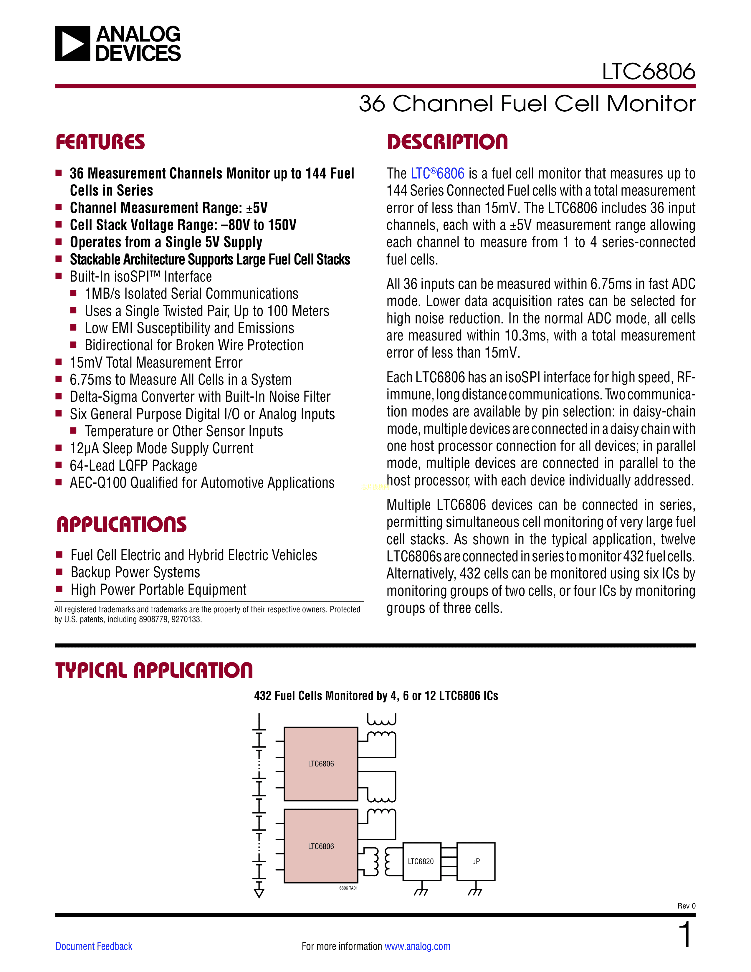 LTC6806HLW#3ZZTRPBF数据手册LQFP-64封装ADI(亚德诺)-LINEARPDF