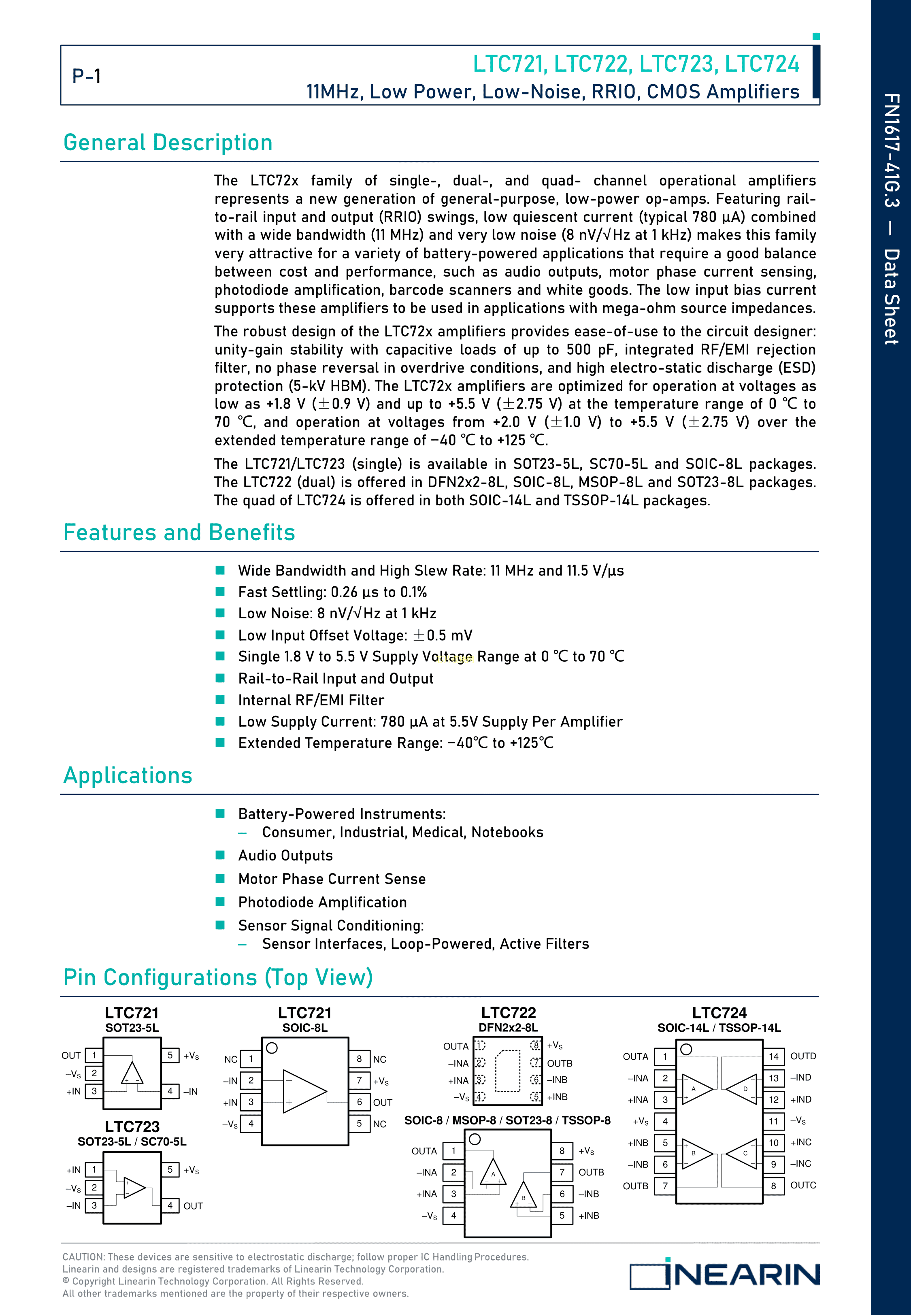 LTC722XT8-R6数据手册TSSOP-8L封装Linearin(先积)PDF规格书,中英文下载