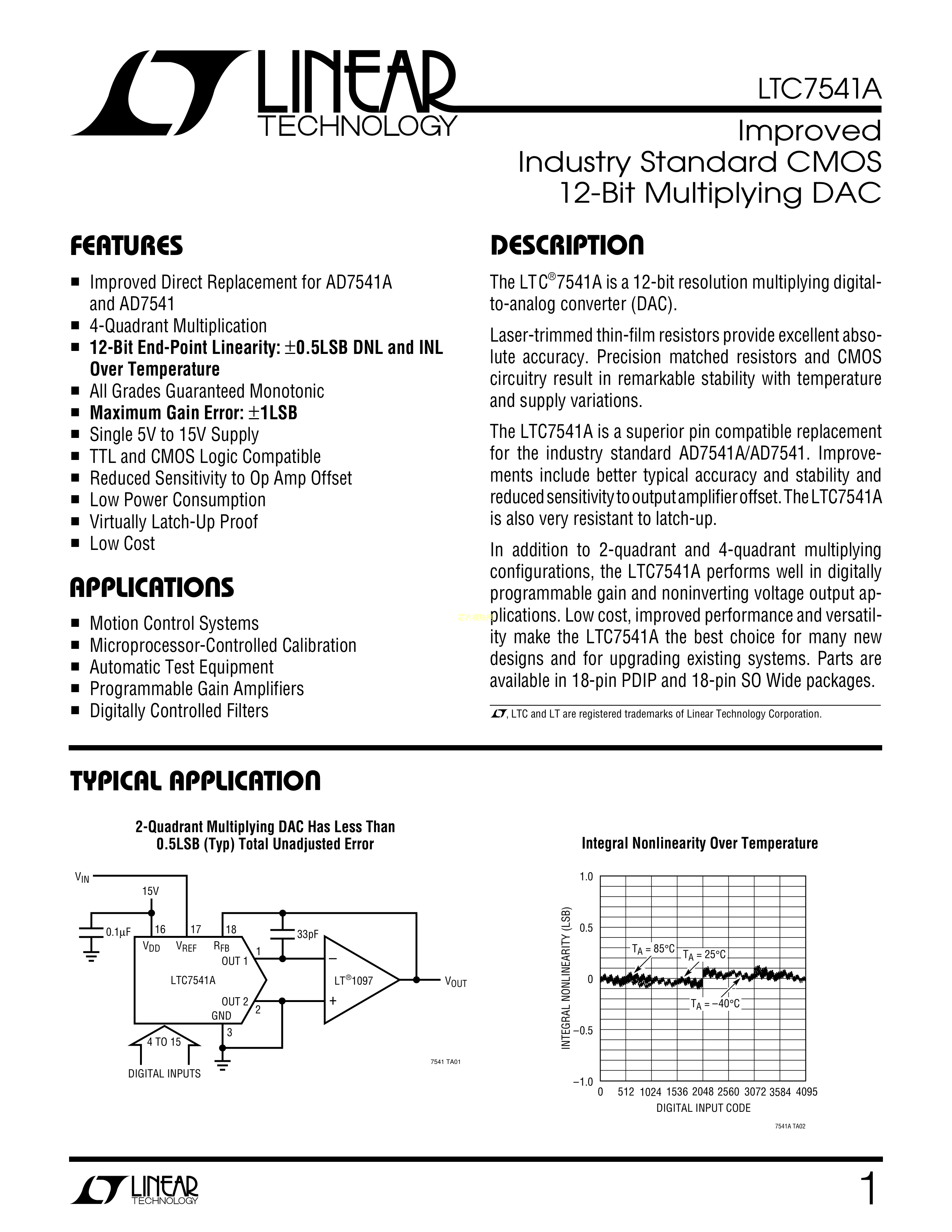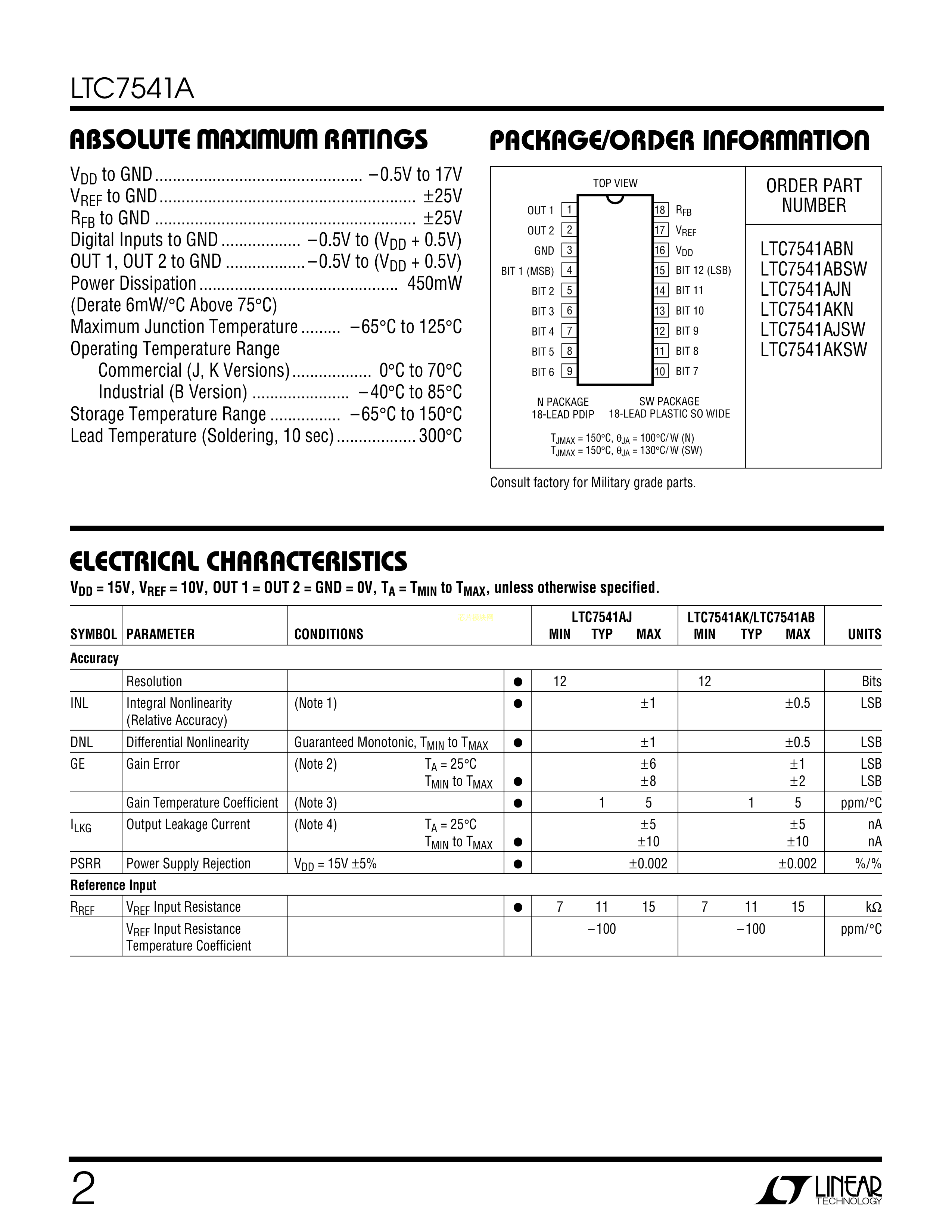 LTC7541AKN#PBF数据手册PDIP-18封装ADI(亚德诺)-LINEARPDF规格书,中英文下载