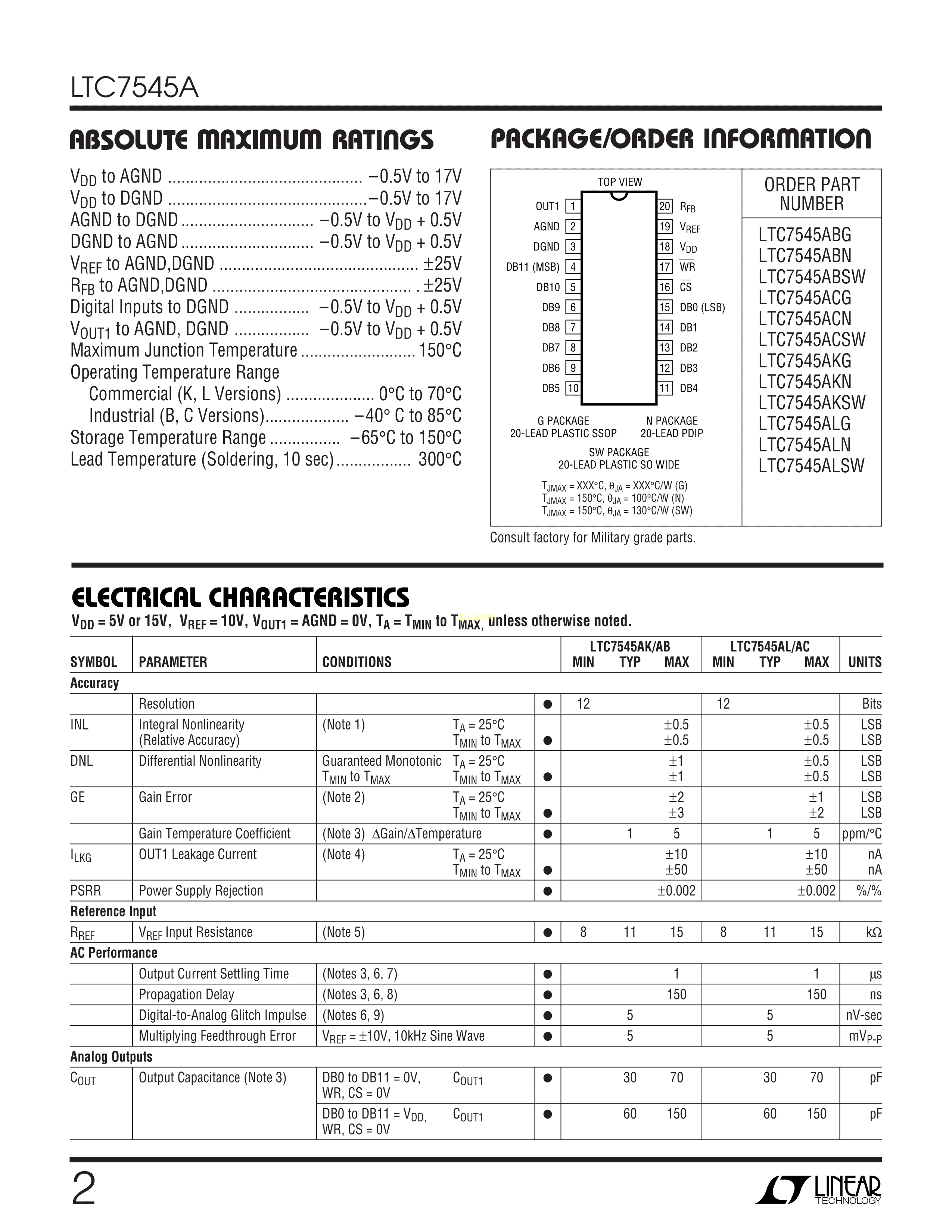 LTC7545ABG#TRPBF数据手册SSOP-20封装ADI(亚德诺)-LINEARPDF规格书,中英文下载