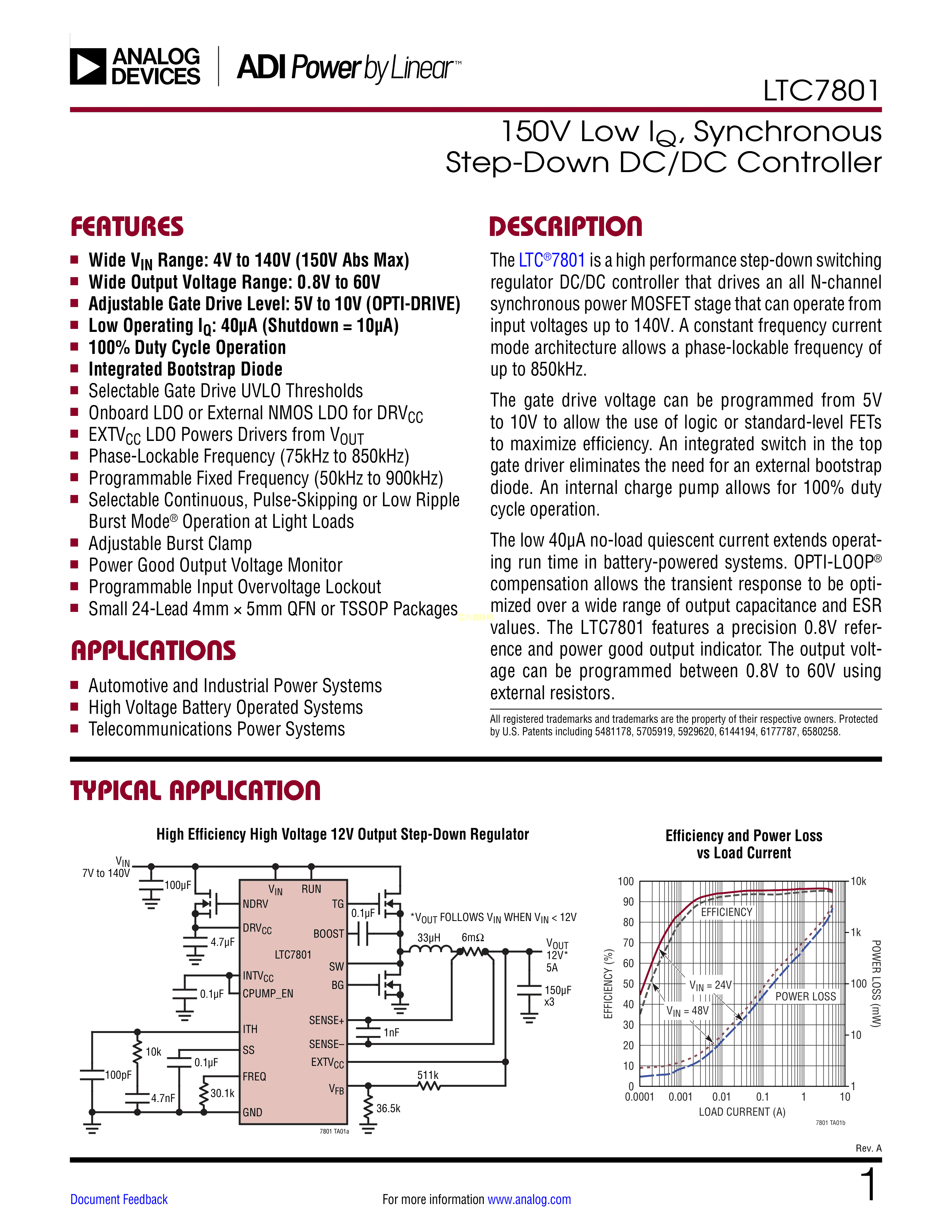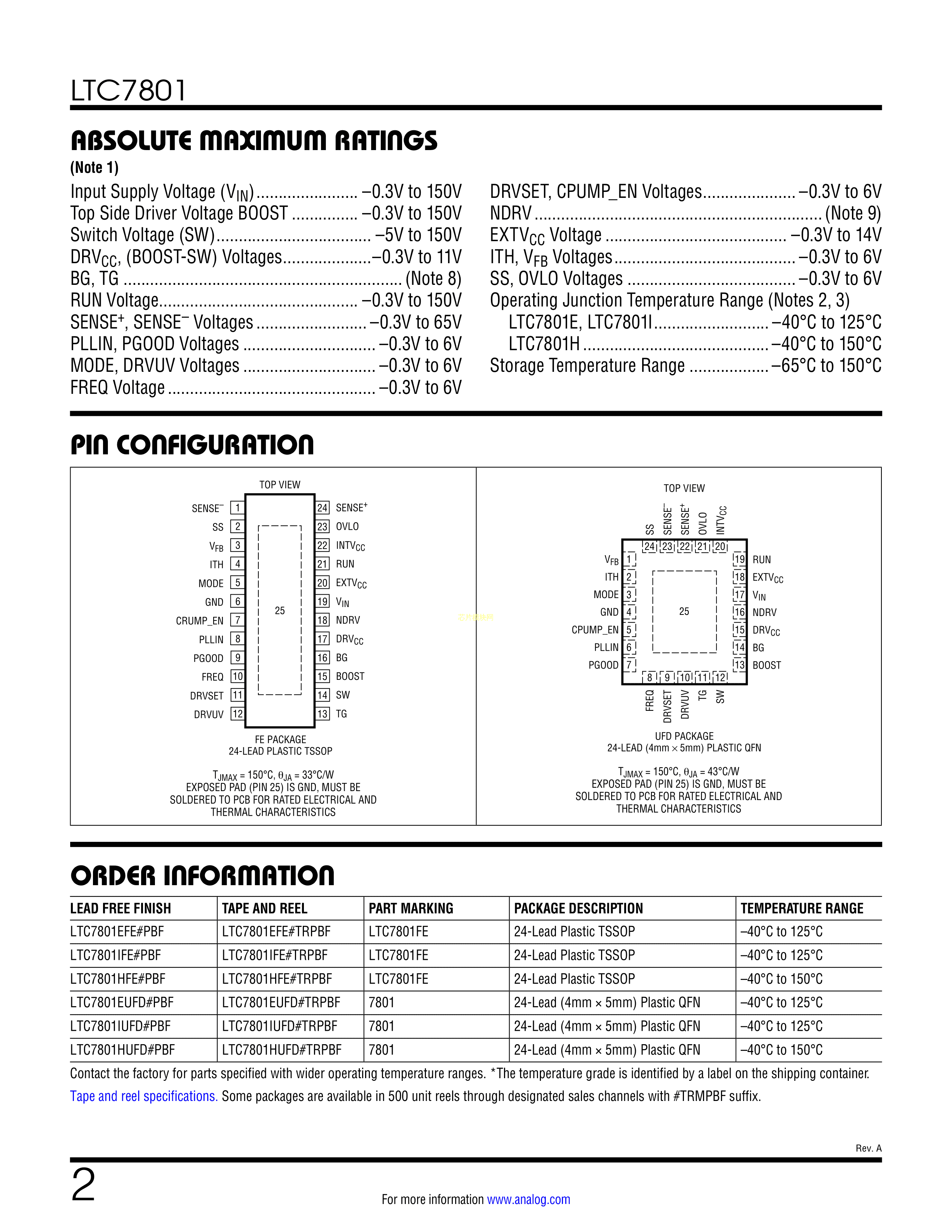LTC7801IUFD#TRPBF数据手册QFN-24封装ADI(亚德诺)-LINEARPDF规格书