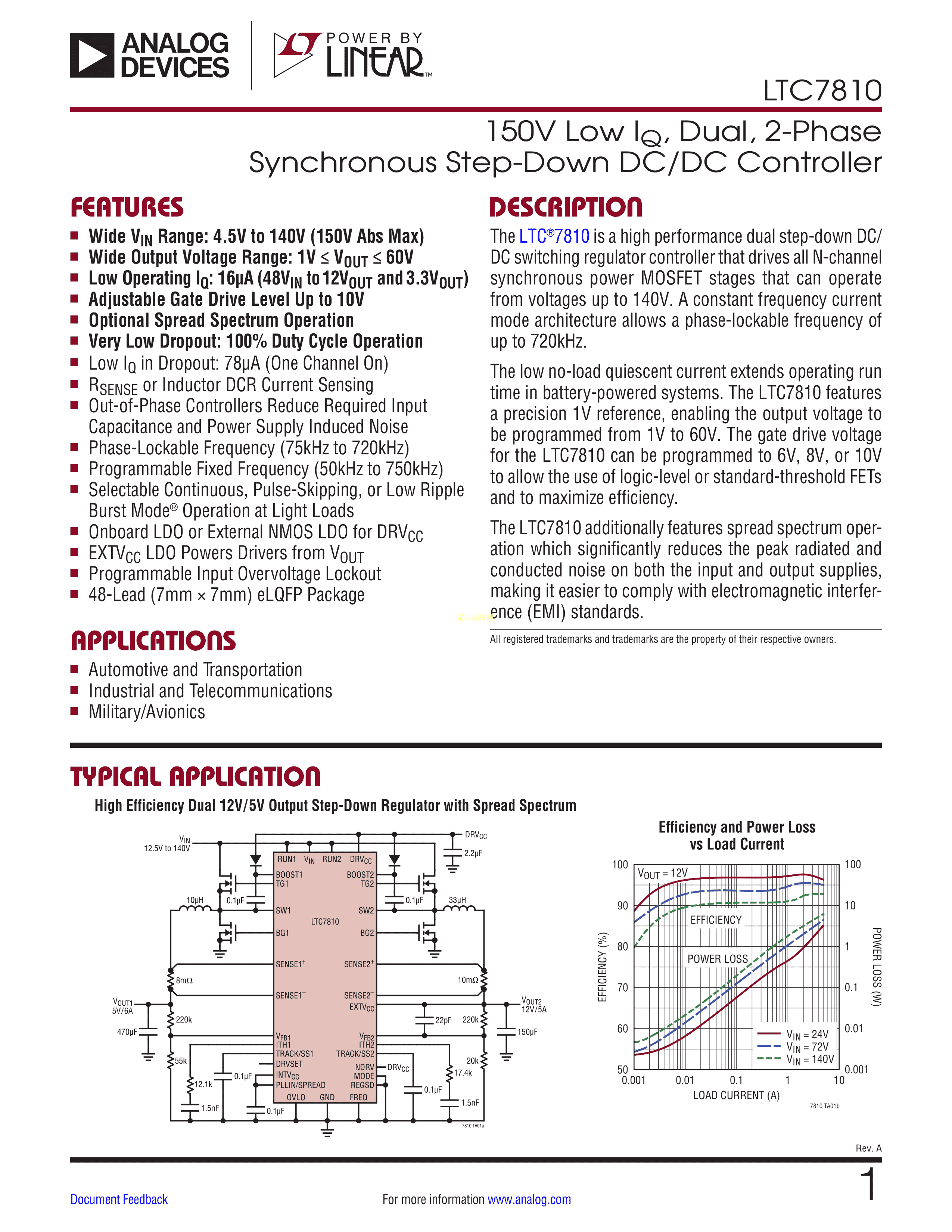 LTC7810HLXE#PBF数据手册eLQFP-48封装ADI(亚德诺)-LINEARPDF规格书,中英文下载