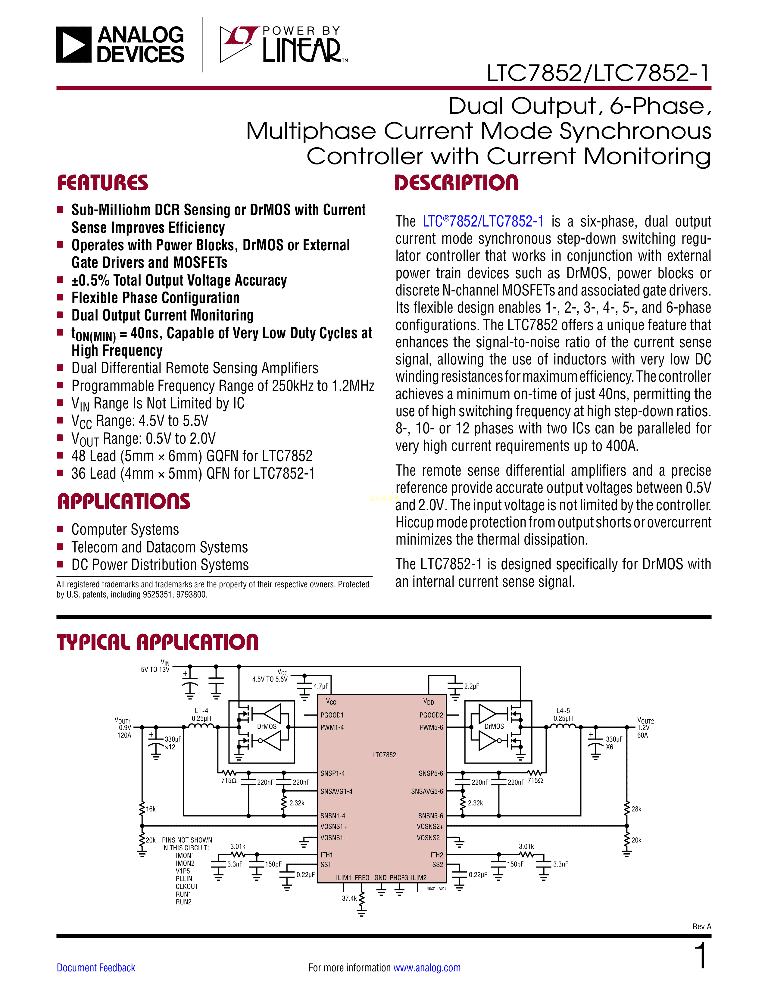 LTC7852IRHE#TRPBF数据手册GQFN-48封装ADI(亚德诺)-LINEARPDF规格