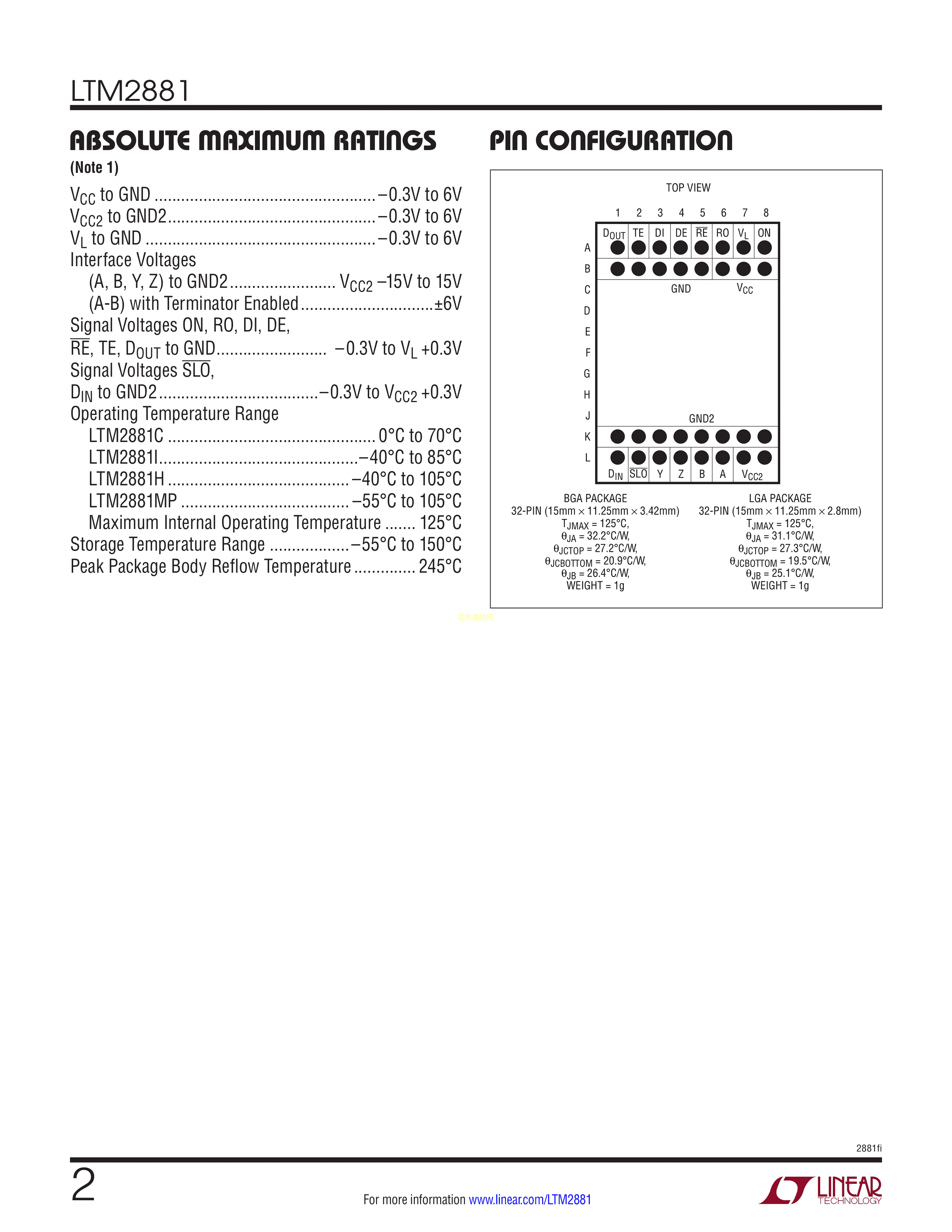 LTM2881MPY-3数据手册BGA-32封装ADI(亚德诺)-LINEARPDF规格书,中英文下