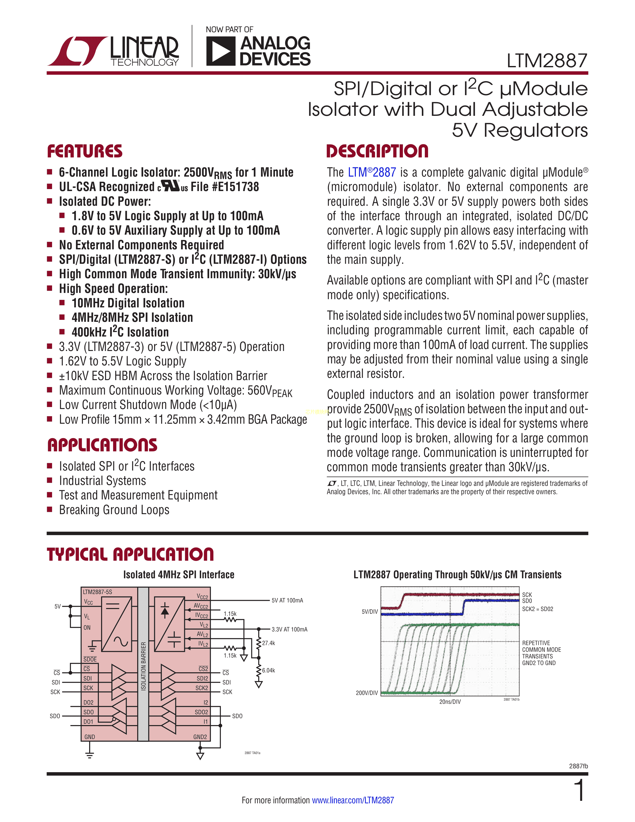 LTM2887IY-5I#PBF数据手册BGA-32封装ADI(亚德诺)-LINEARPDF规格书,