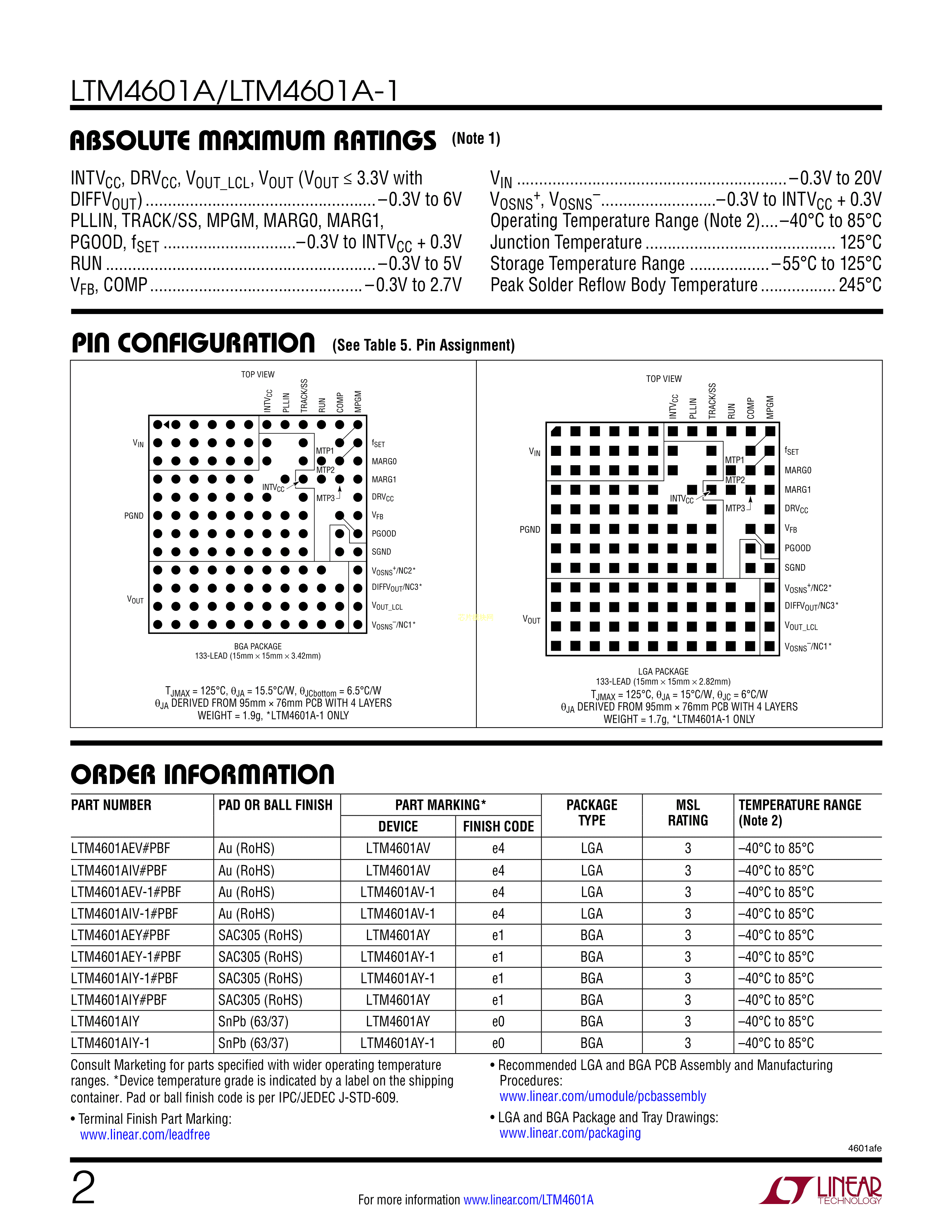 LTM4601AEY#PBF数据手册BGA-133封装ADI(亚德诺)-LINEARPDF规格书,中