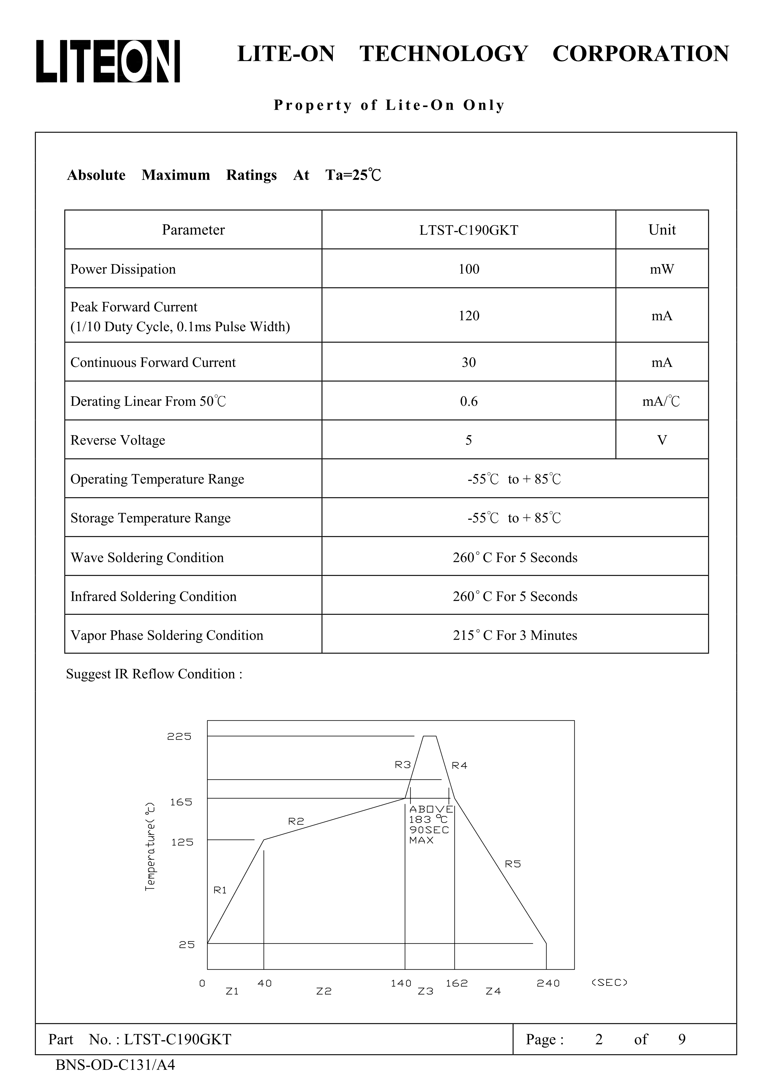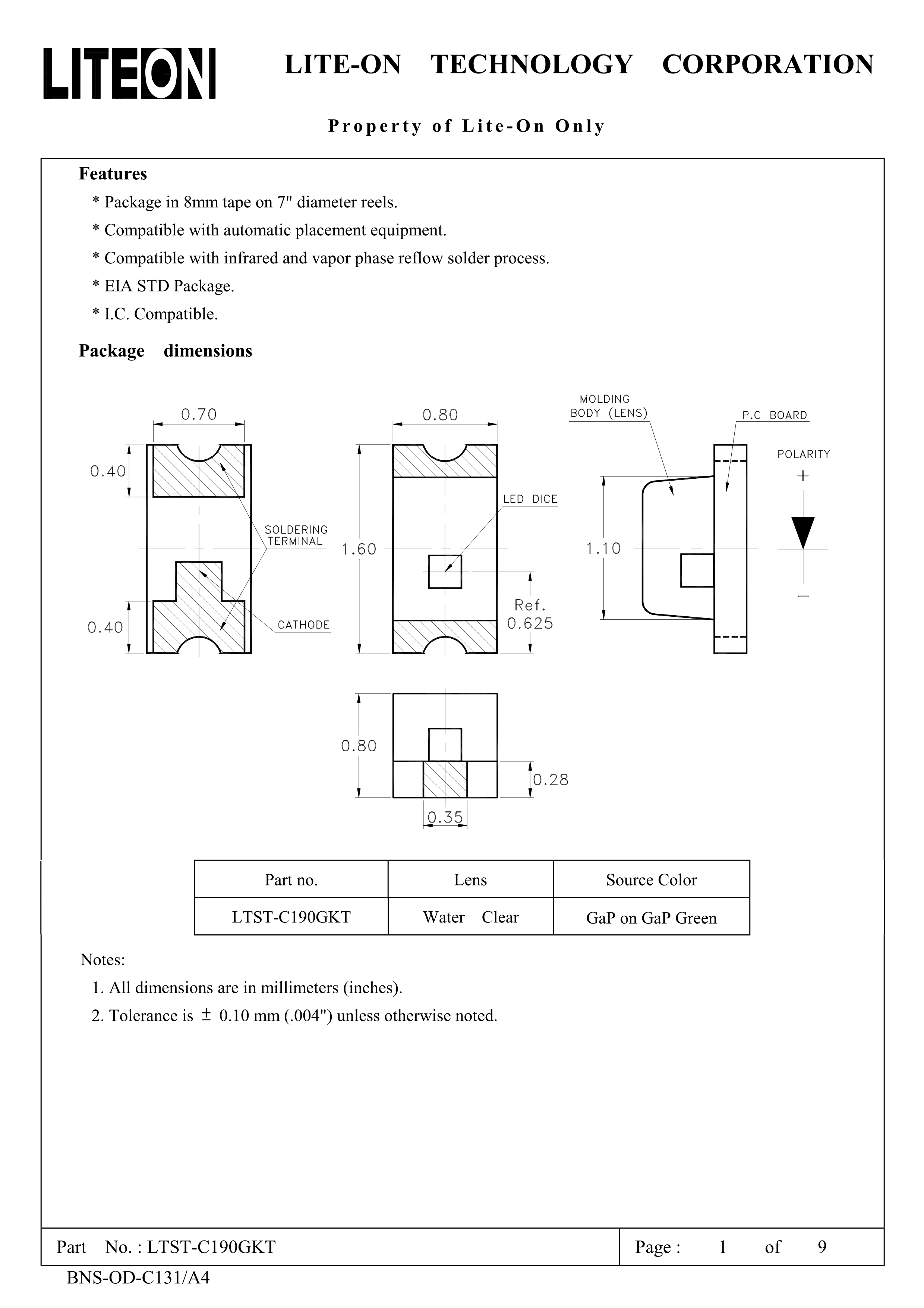 LTST-C190GKT数据手册0603封装LITEON(台湾光宝)PDF规格书,中英文下载