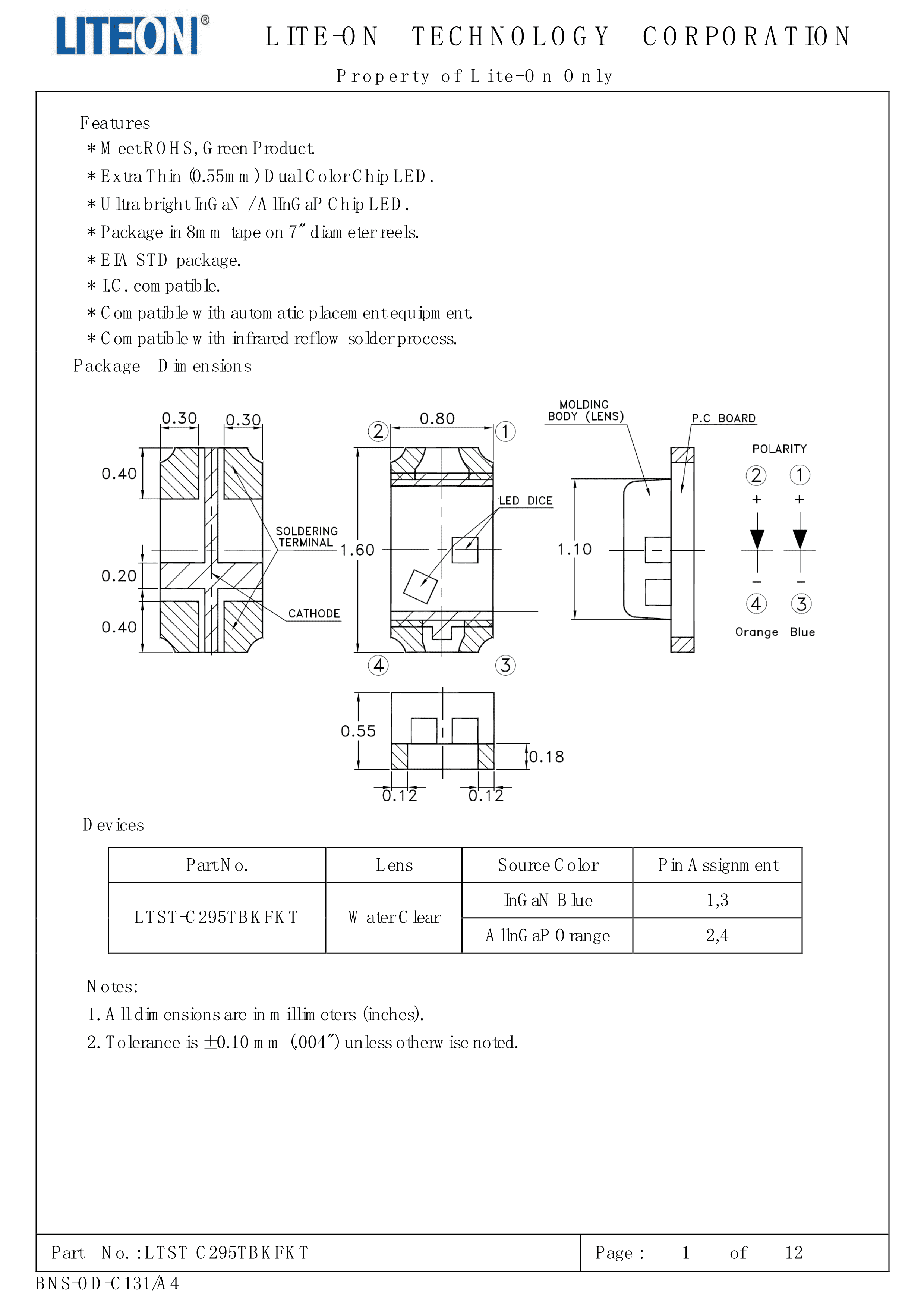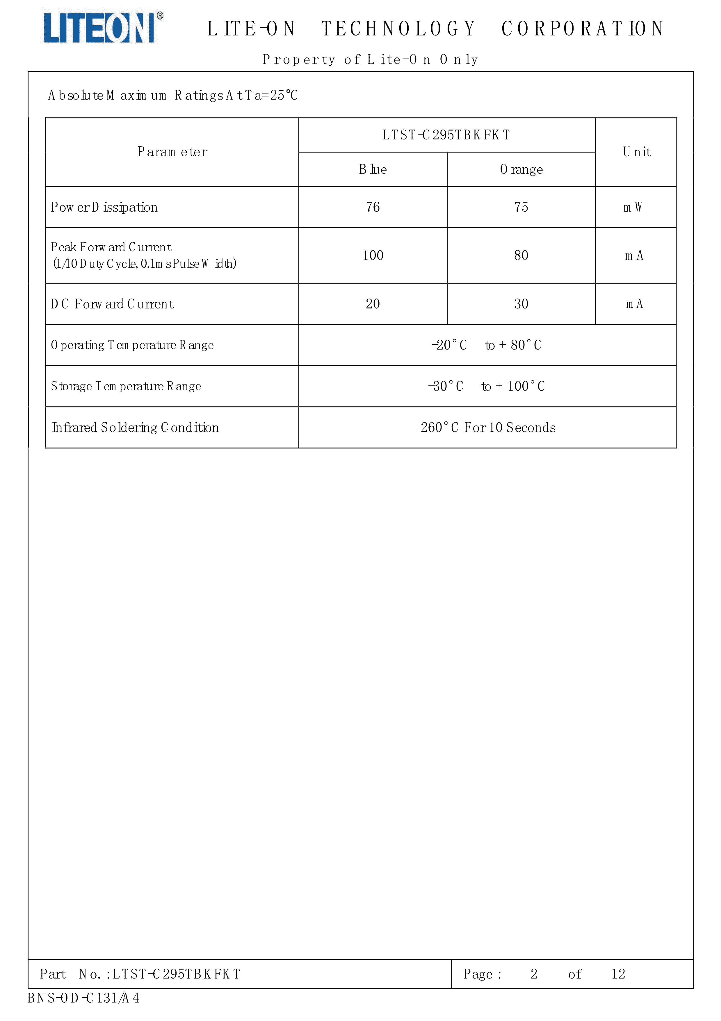 LTST-C295TBKFKT数据手册0603封装LITEON(台湾光宝)PDF规格书,中英文下载
