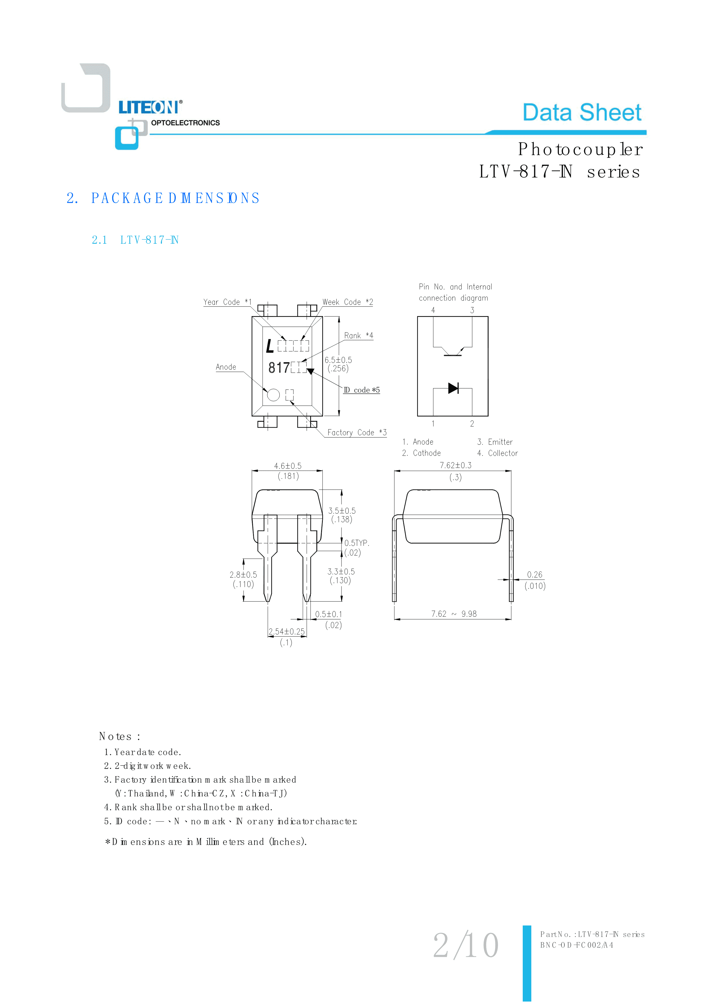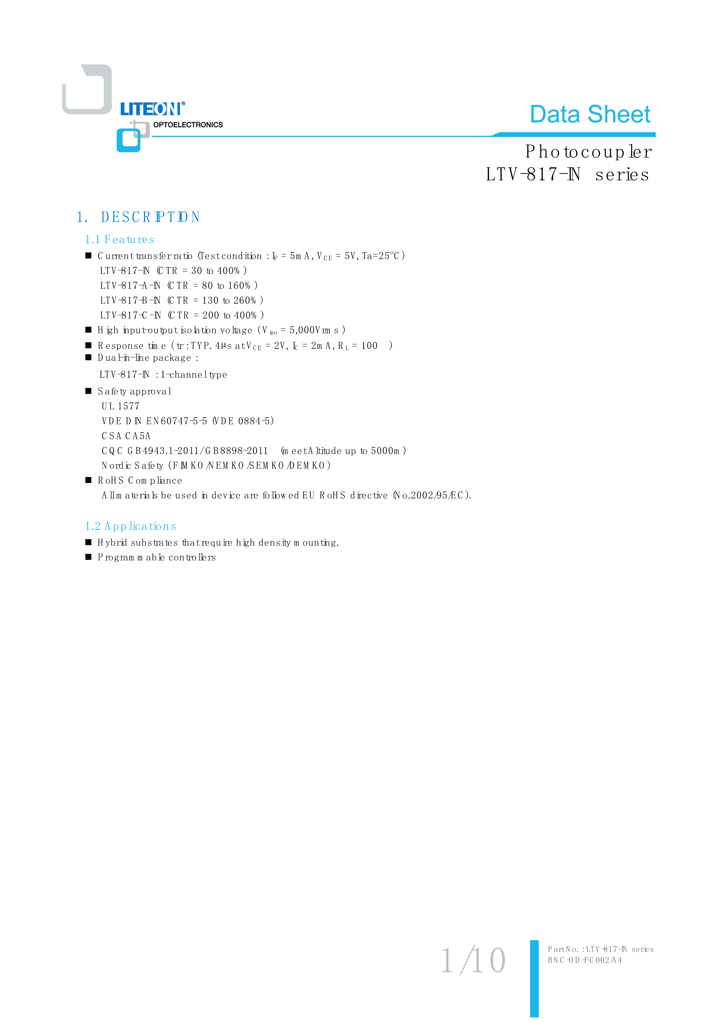 LTV-817-C-IN数据手册DIP-4封装LITEON(台湾光宝)PDF规格书,中英文下载