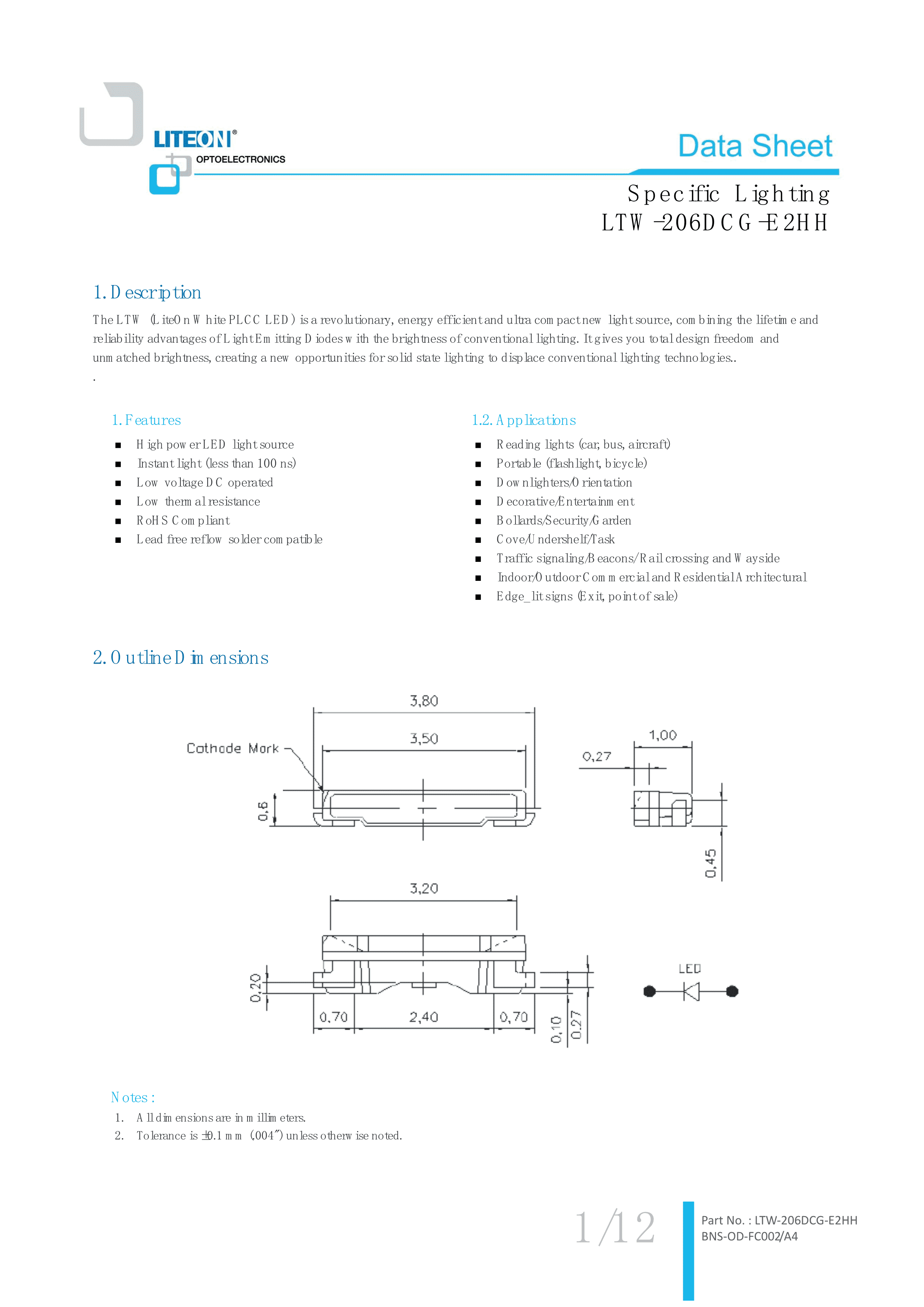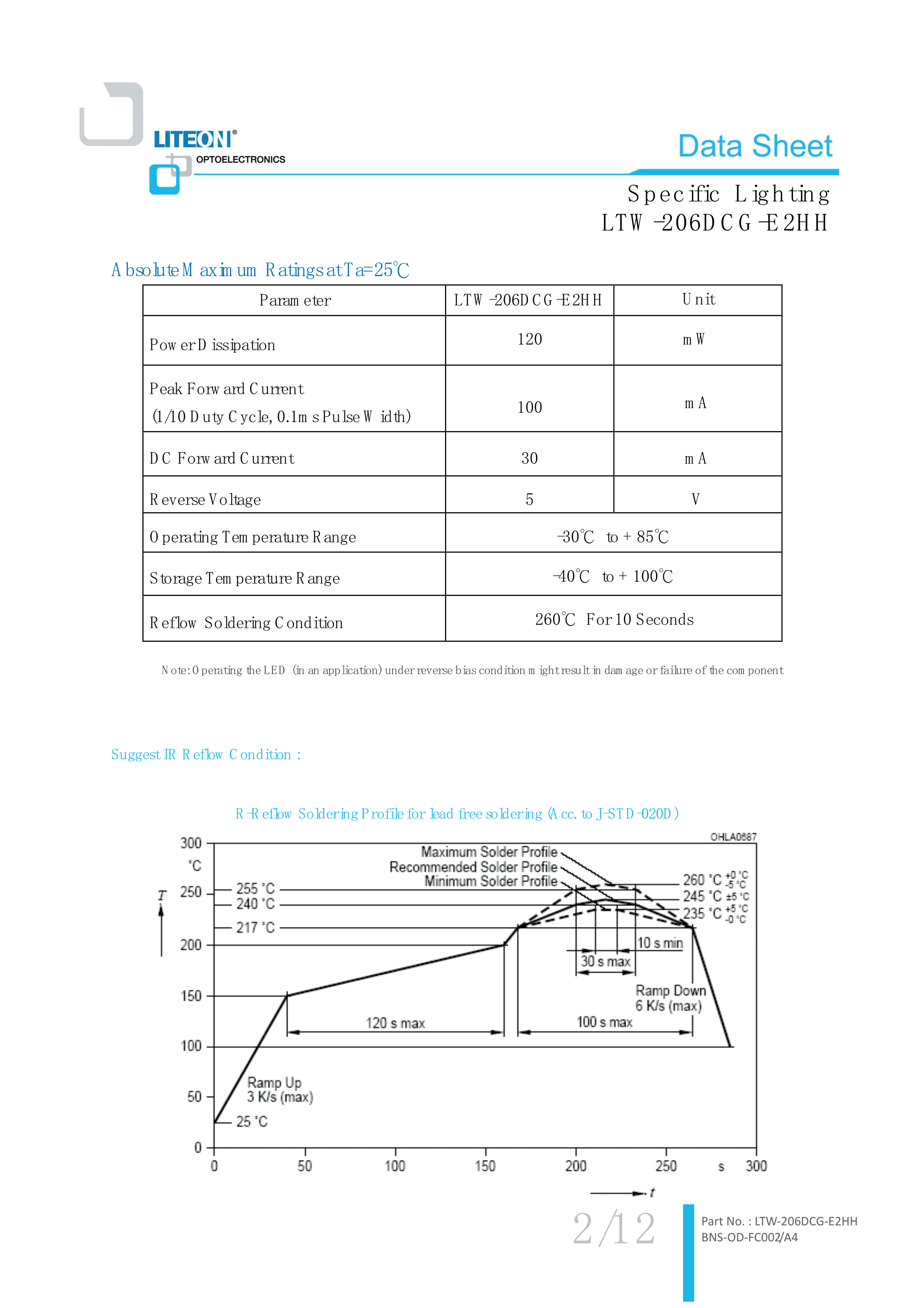 LTW-206DCG-E2HH数据手册SMD封装LITEON(台湾光宝)PDF规格书,中英文下载