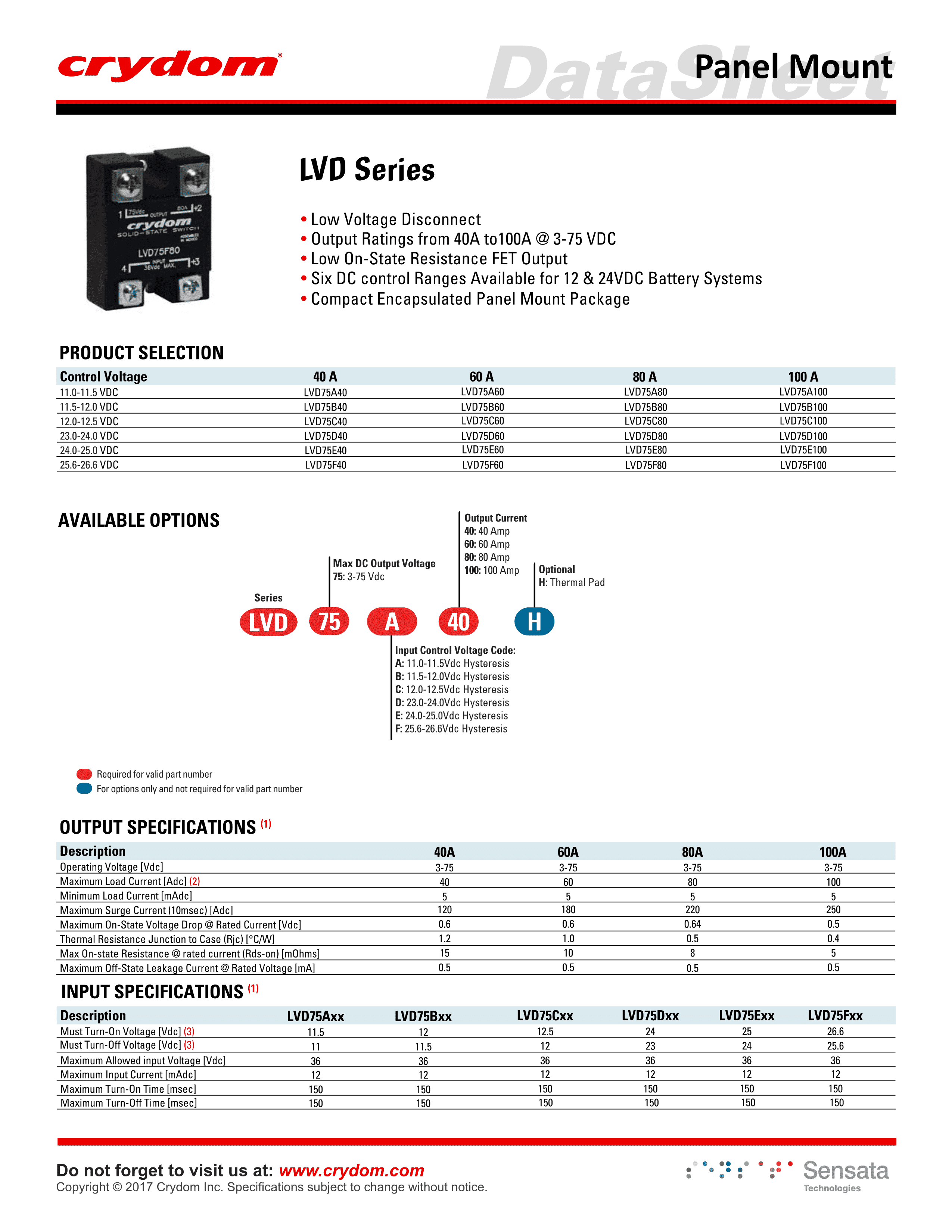 LVD75A40数据手册-封装SensataPDF规格书,中英文下载