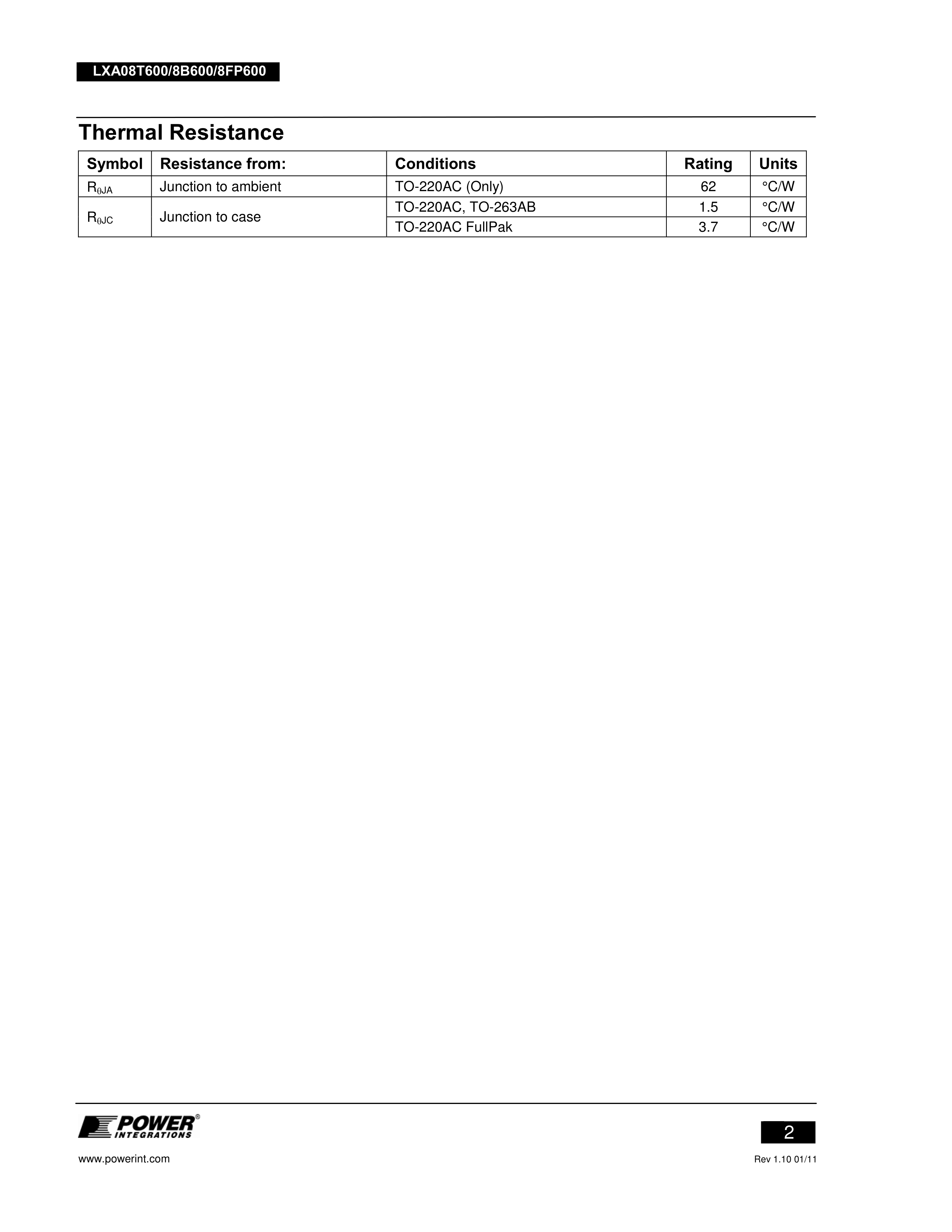 LXA08T600数据手册TO-220AC封装Power Integrations(帕沃英蒂格盛)P