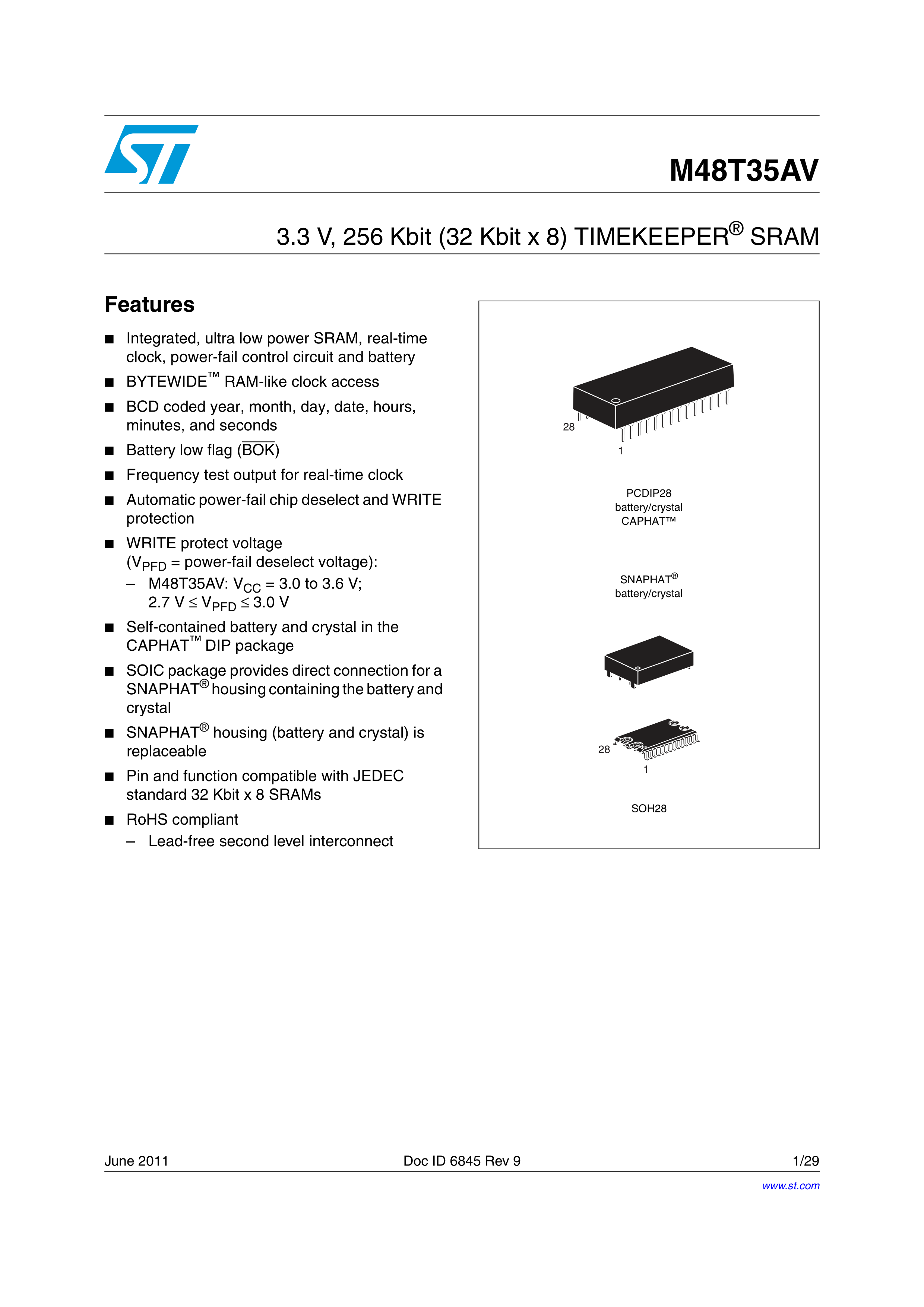 M48T35AV-10MH1F数据手册SOH-28封装ST(意法半导体)PDF规格书,中英文下载
