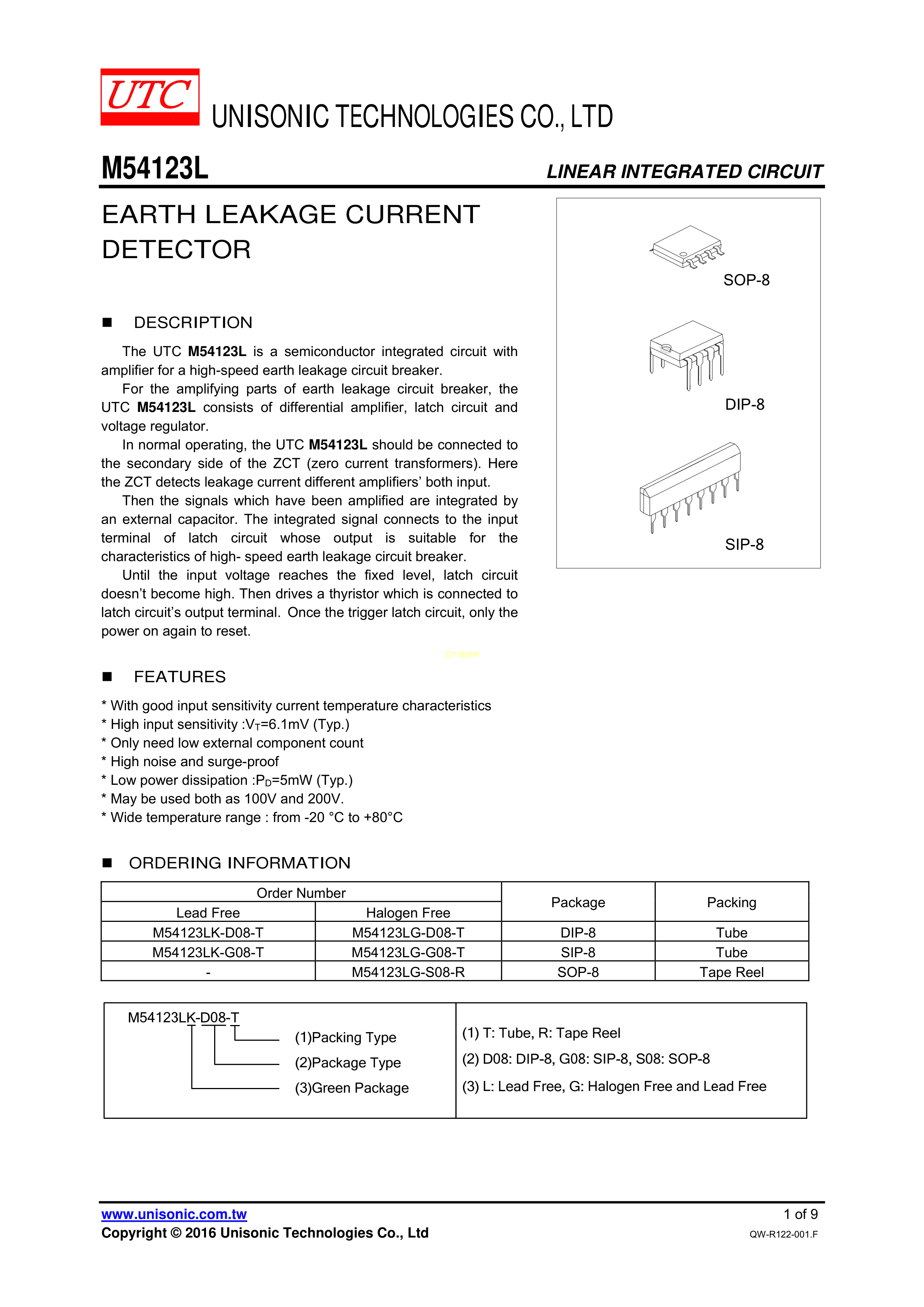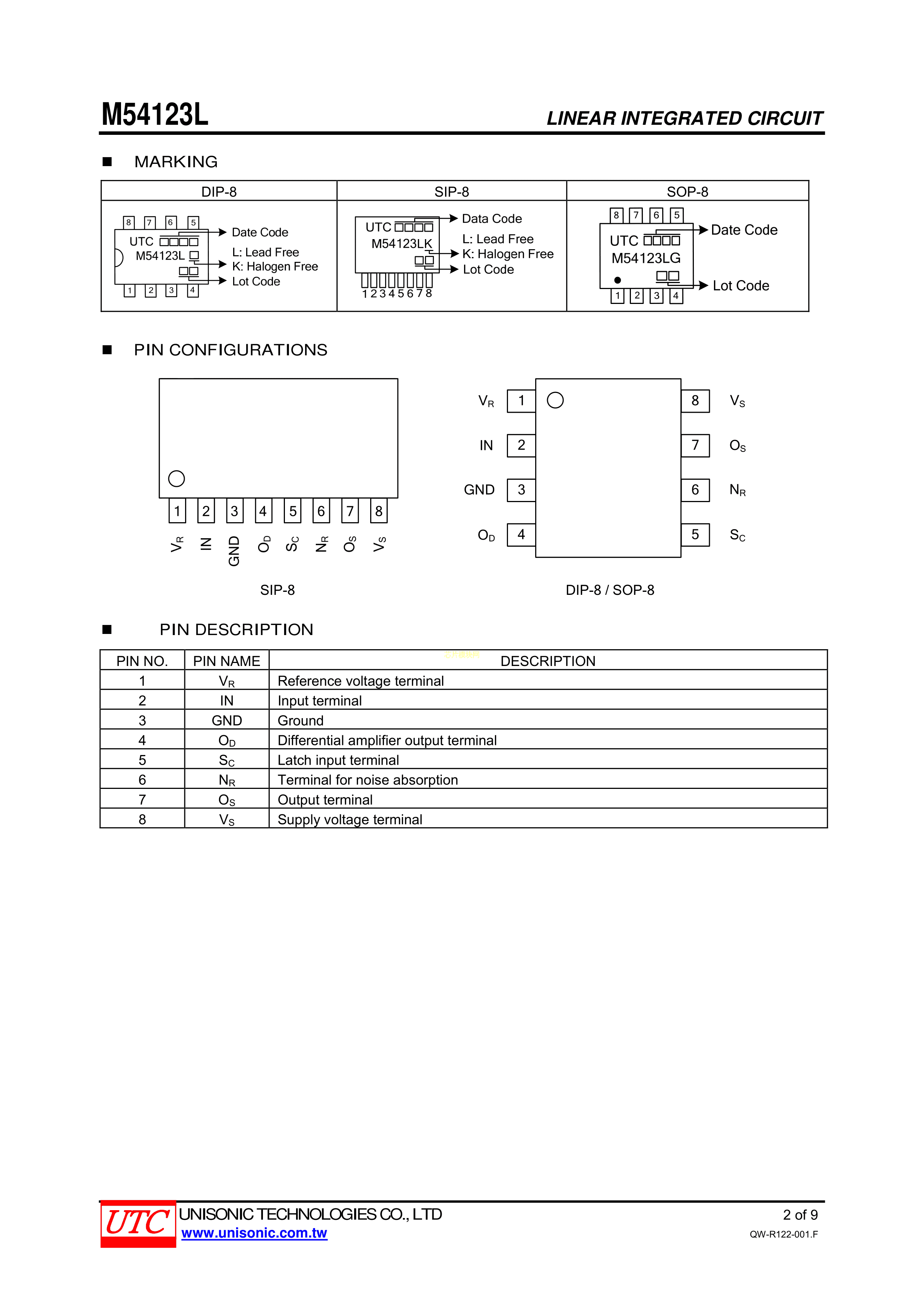 M54123LG-S08-R数据手册SOP-8封装UTC(友顺)PDF规格书,中英文下载