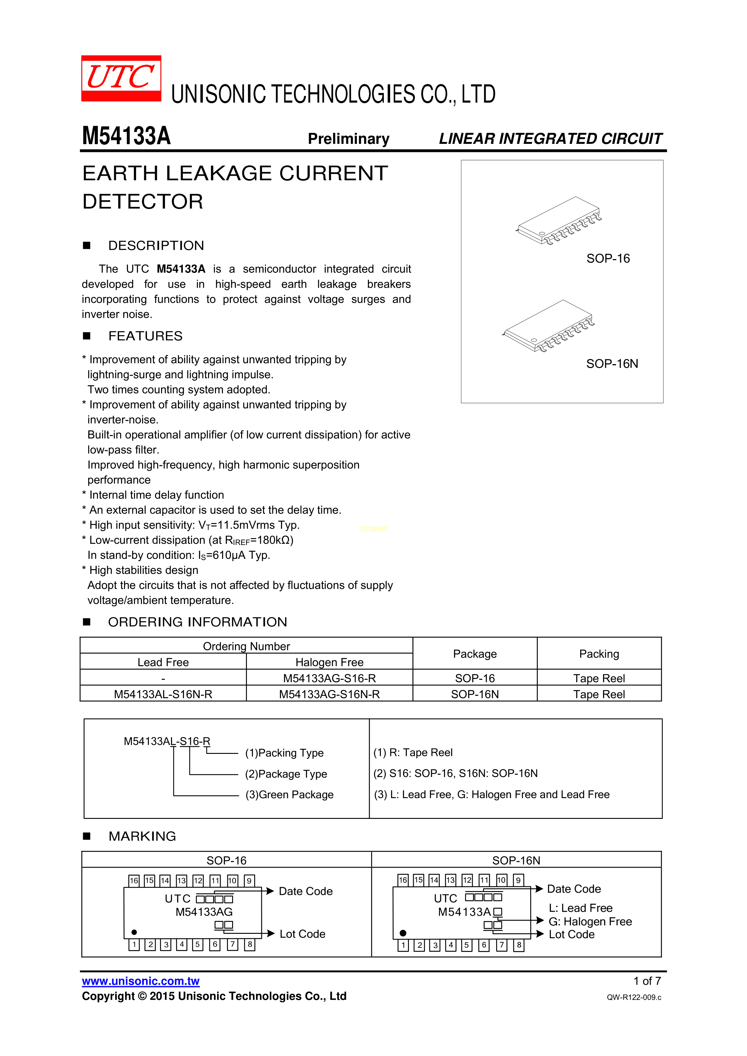 M54133AG-S16-R数据手册SOP-16_150mil封装UTC(友顺)PDF规格书,中英文