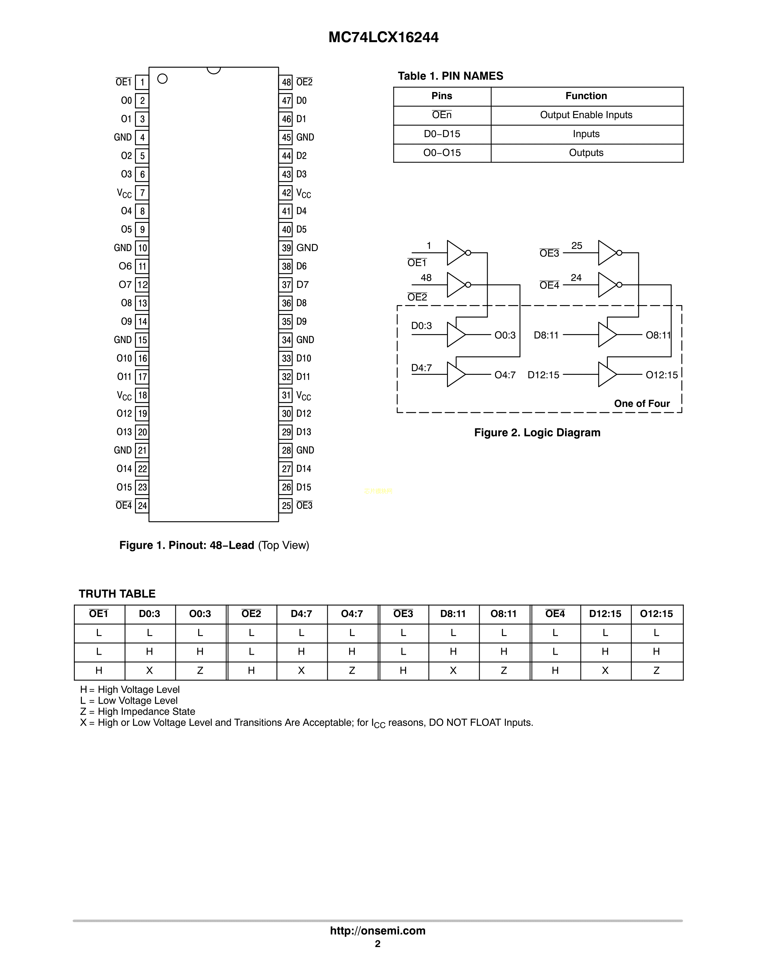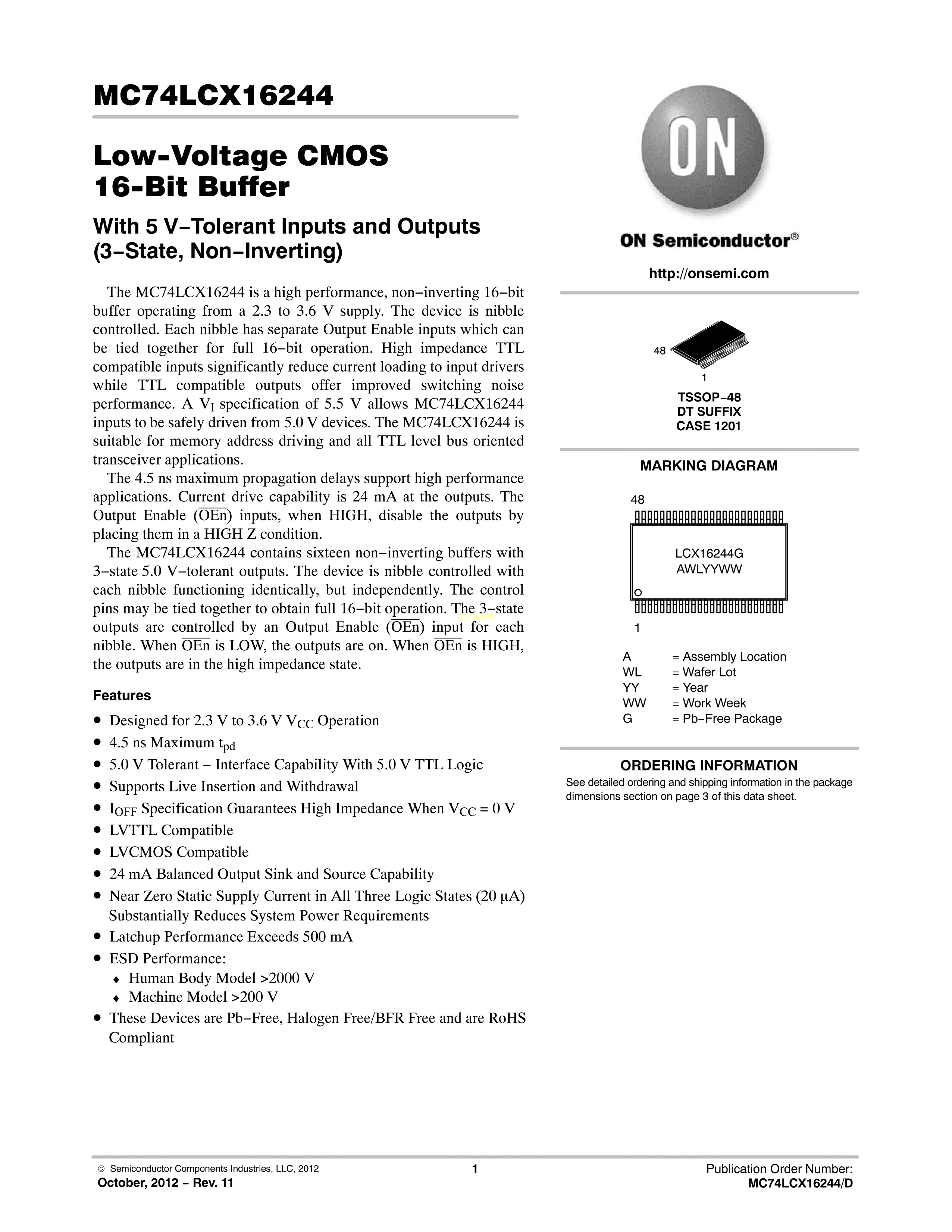 M74LCX16244DTR2G数据手册TSSOP-48封装onsemi(安森美)PDF规格书,中英