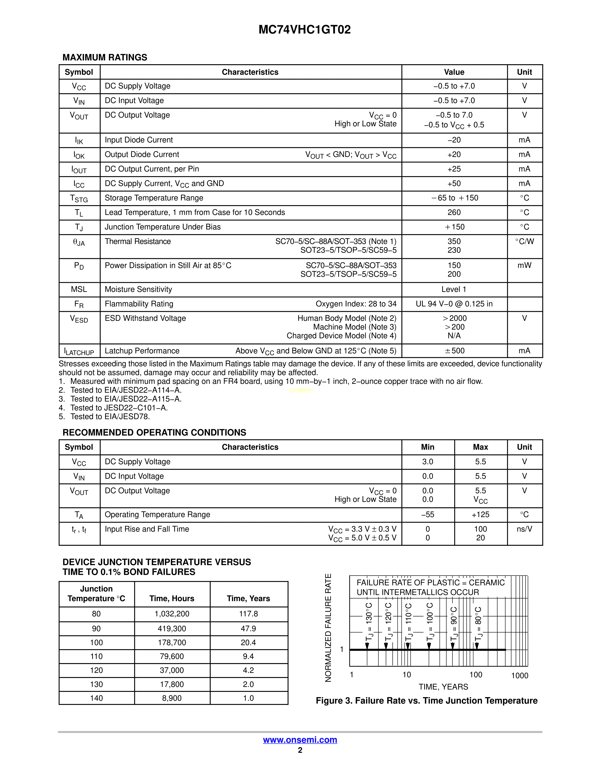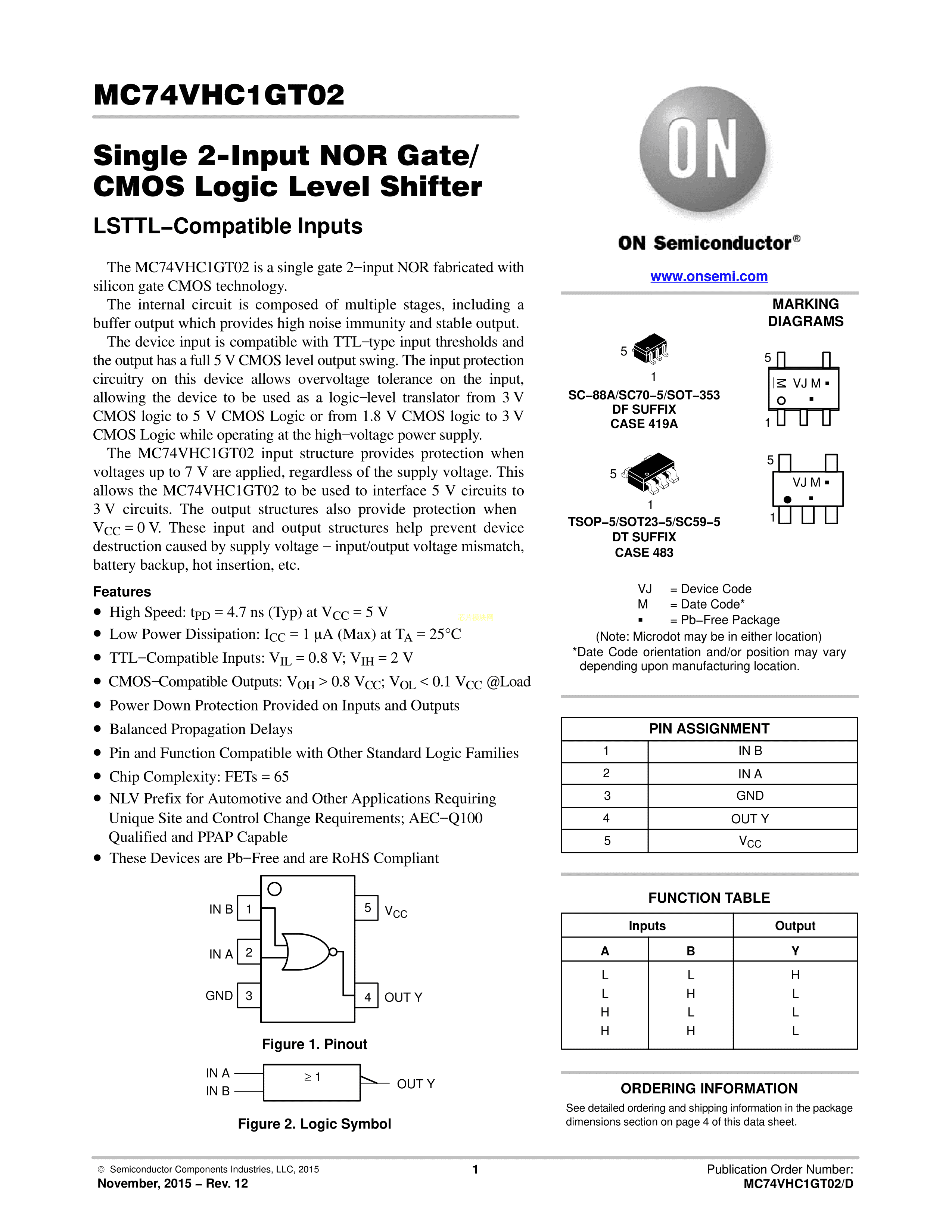 M74VHC1GT02DFT1G数据手册SC-70-5封装onsemi(安森美)PDF规格书,中英文