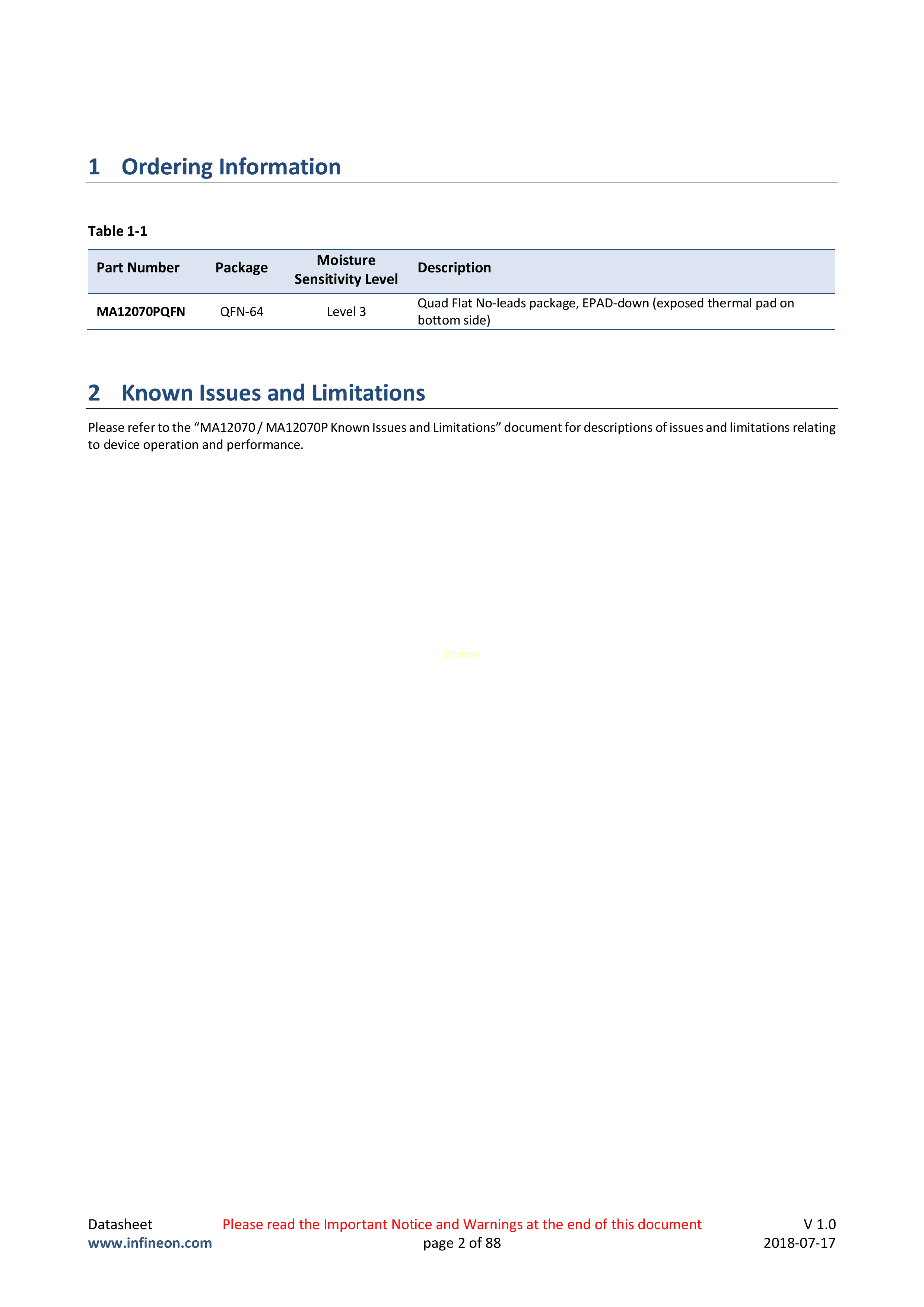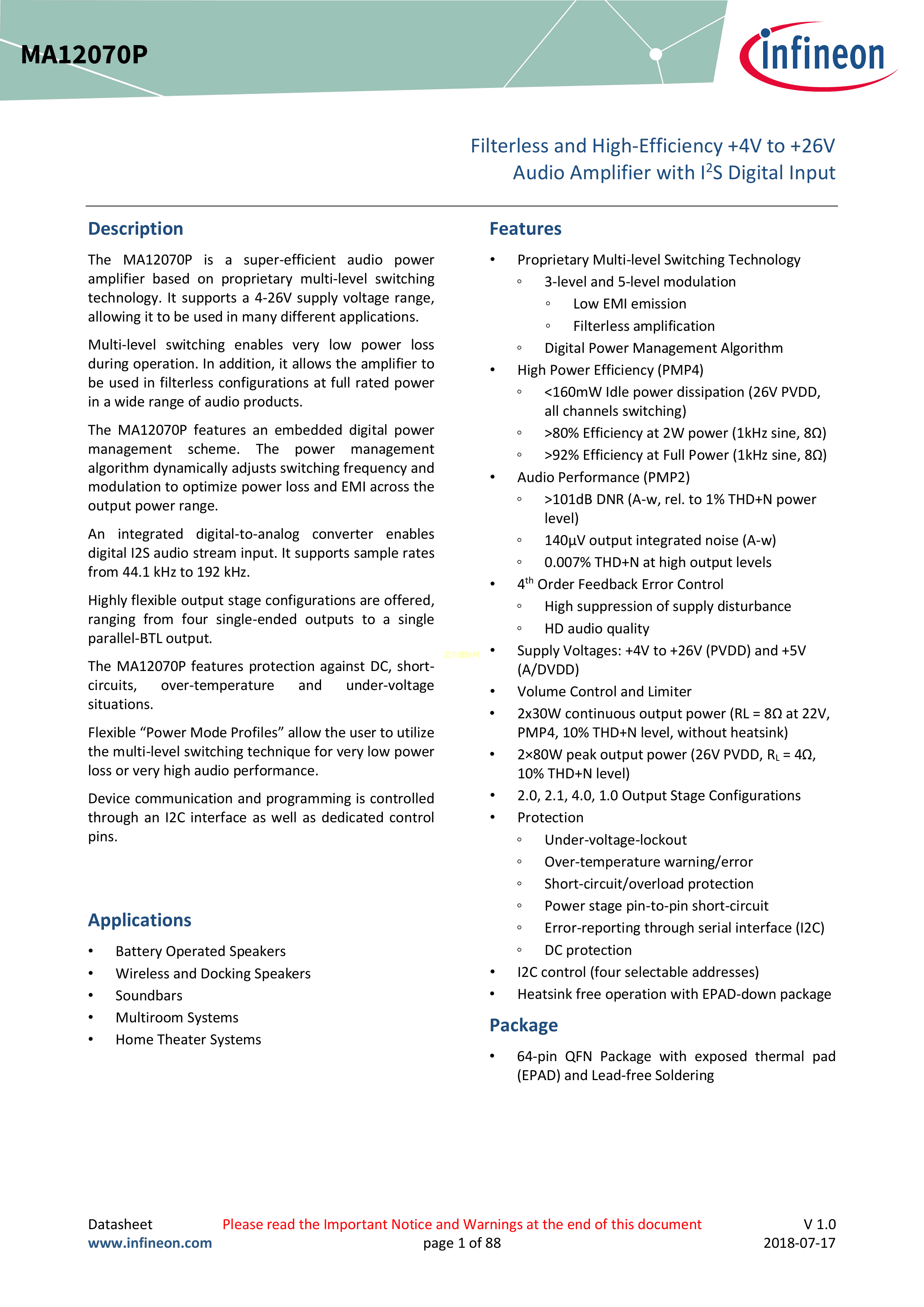 MA12070P数据手册QFN-64封装Infineon(英飞凌)PDF规格书,中英文下载
