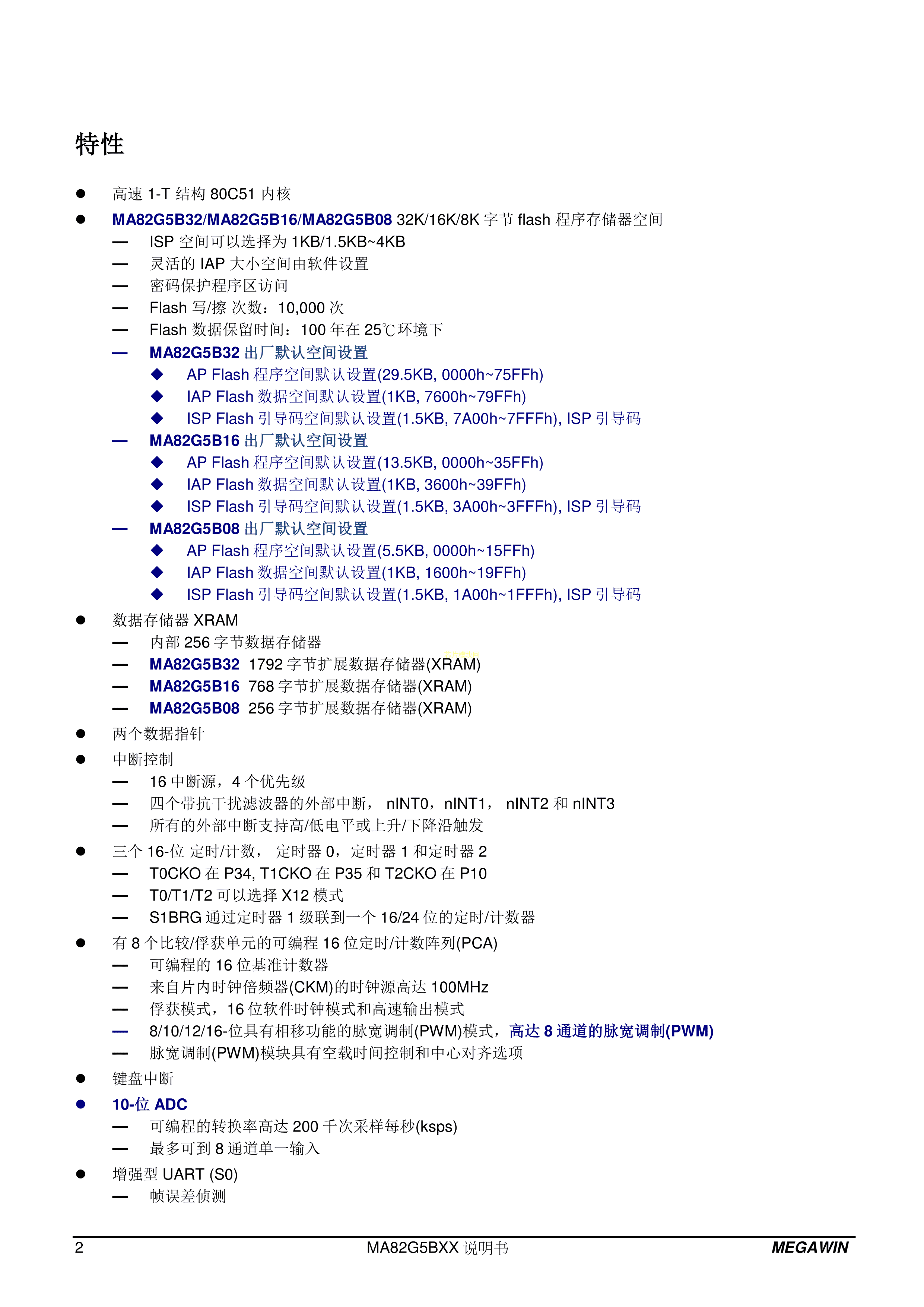 MA82G5B08AS20数据手册SOP-20_300mil封装MEGAWIN(笙泉)PDF规格书,