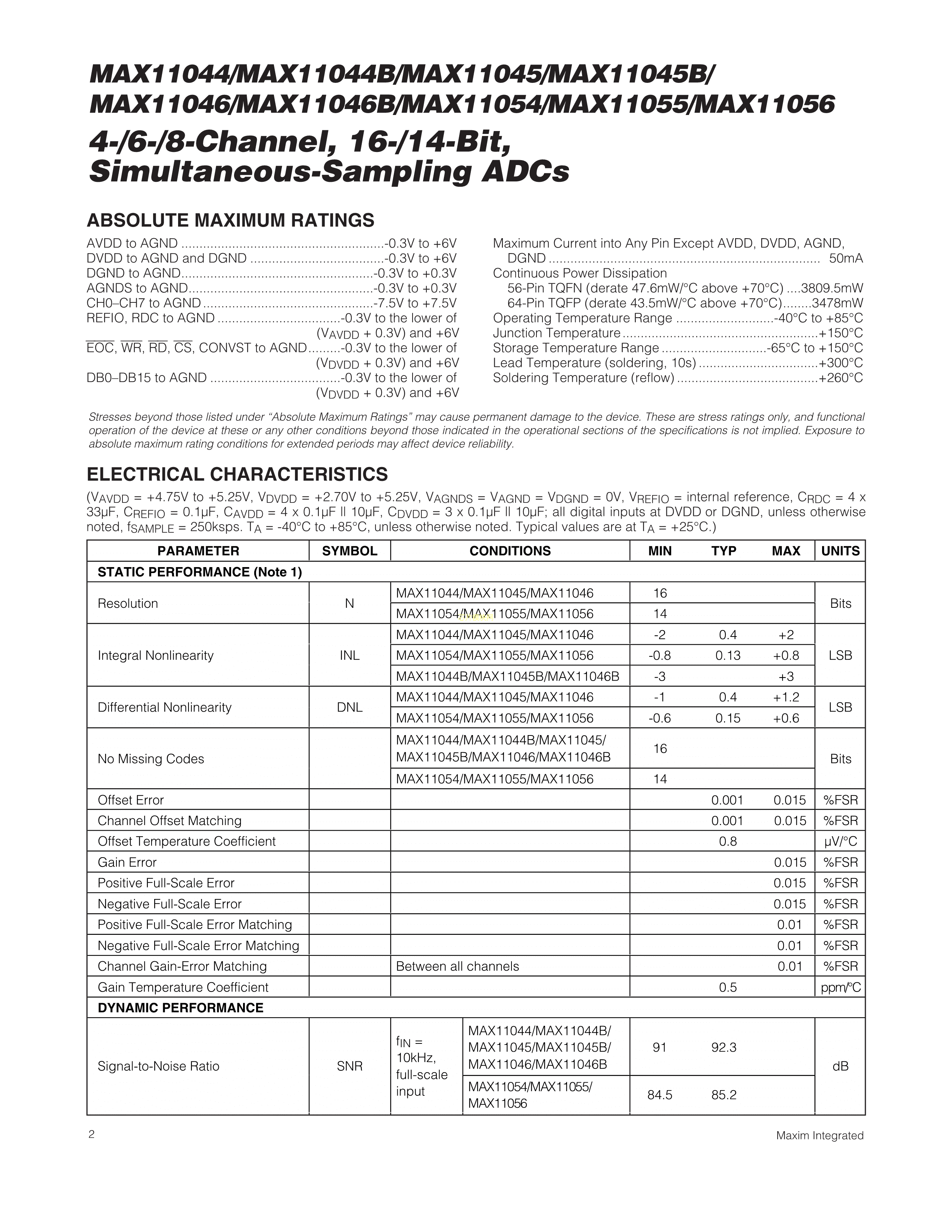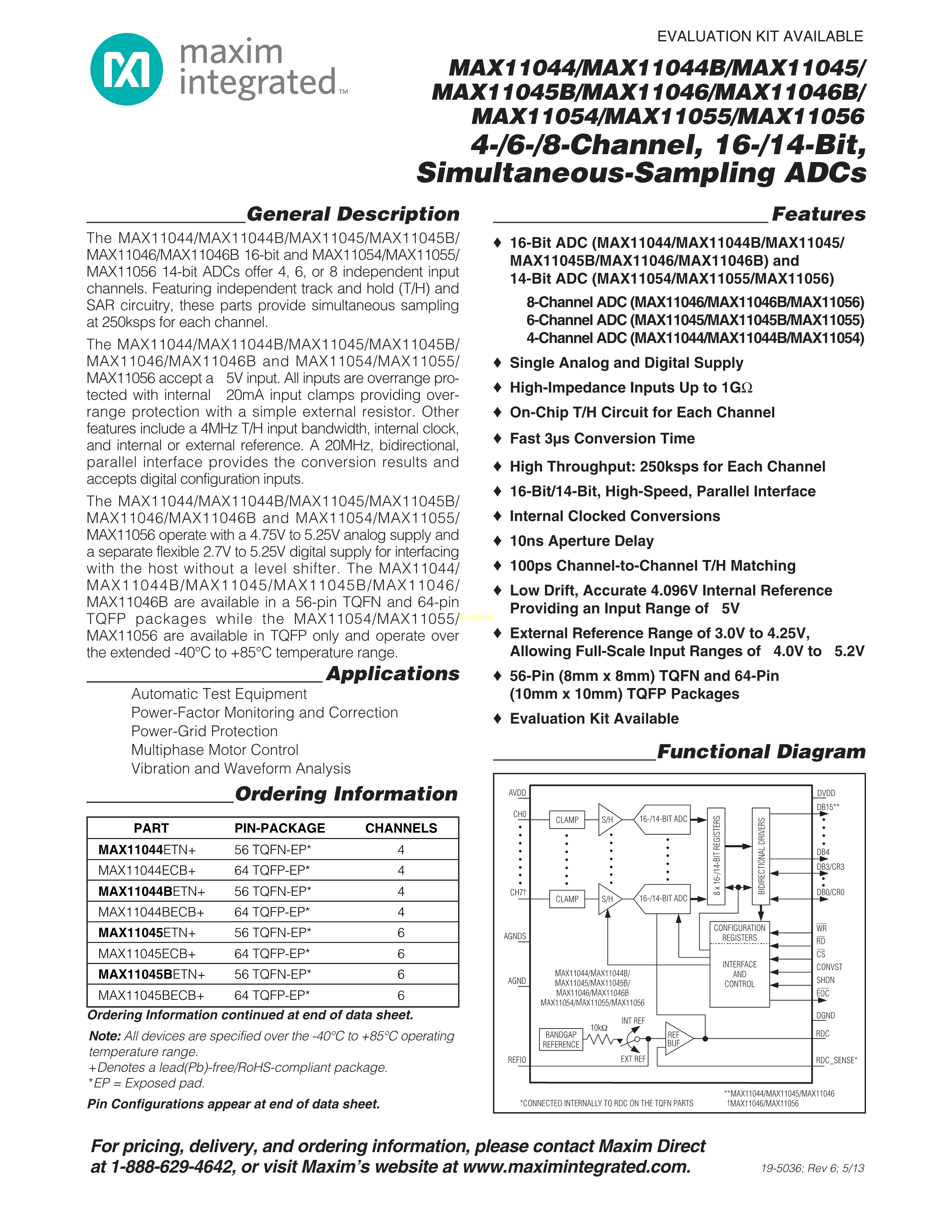 MAX11046ECB+T数据手册TQFP-64_EP(10x10)封装MAXIM(美信)PDF规格