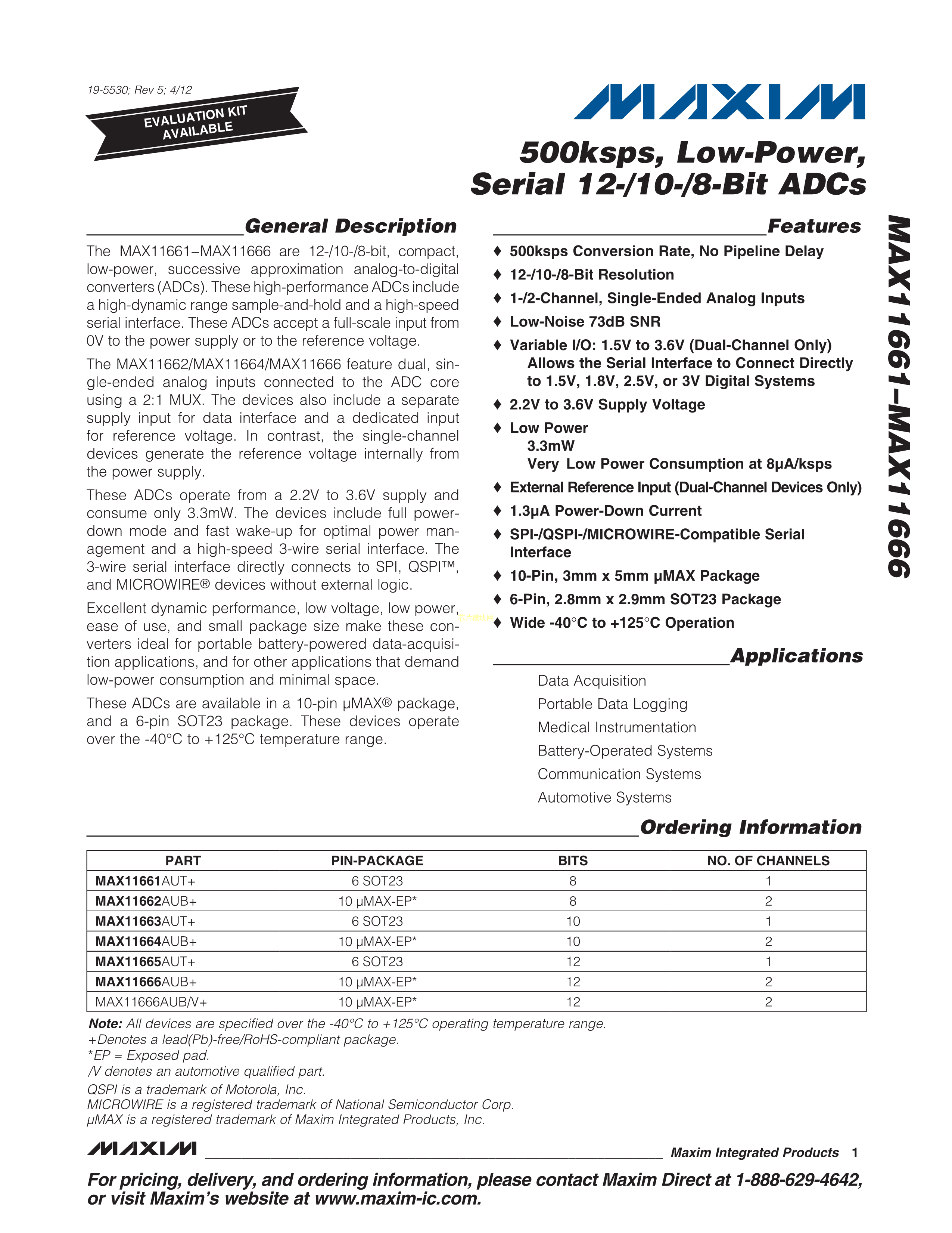 MAX11666AUB-V+T数据手册10uMAX-EP封装MAXIM(美信)PDF规格书,中英文下