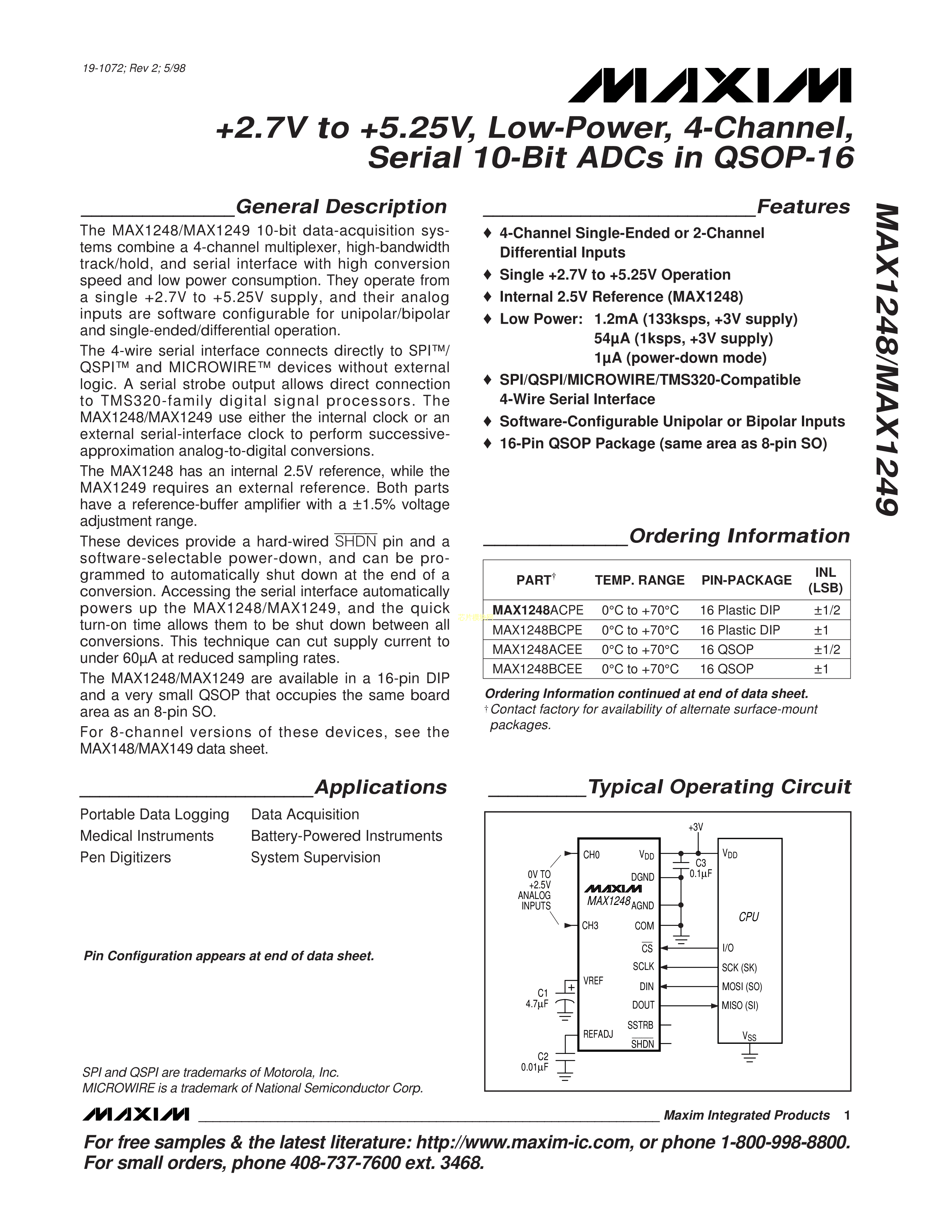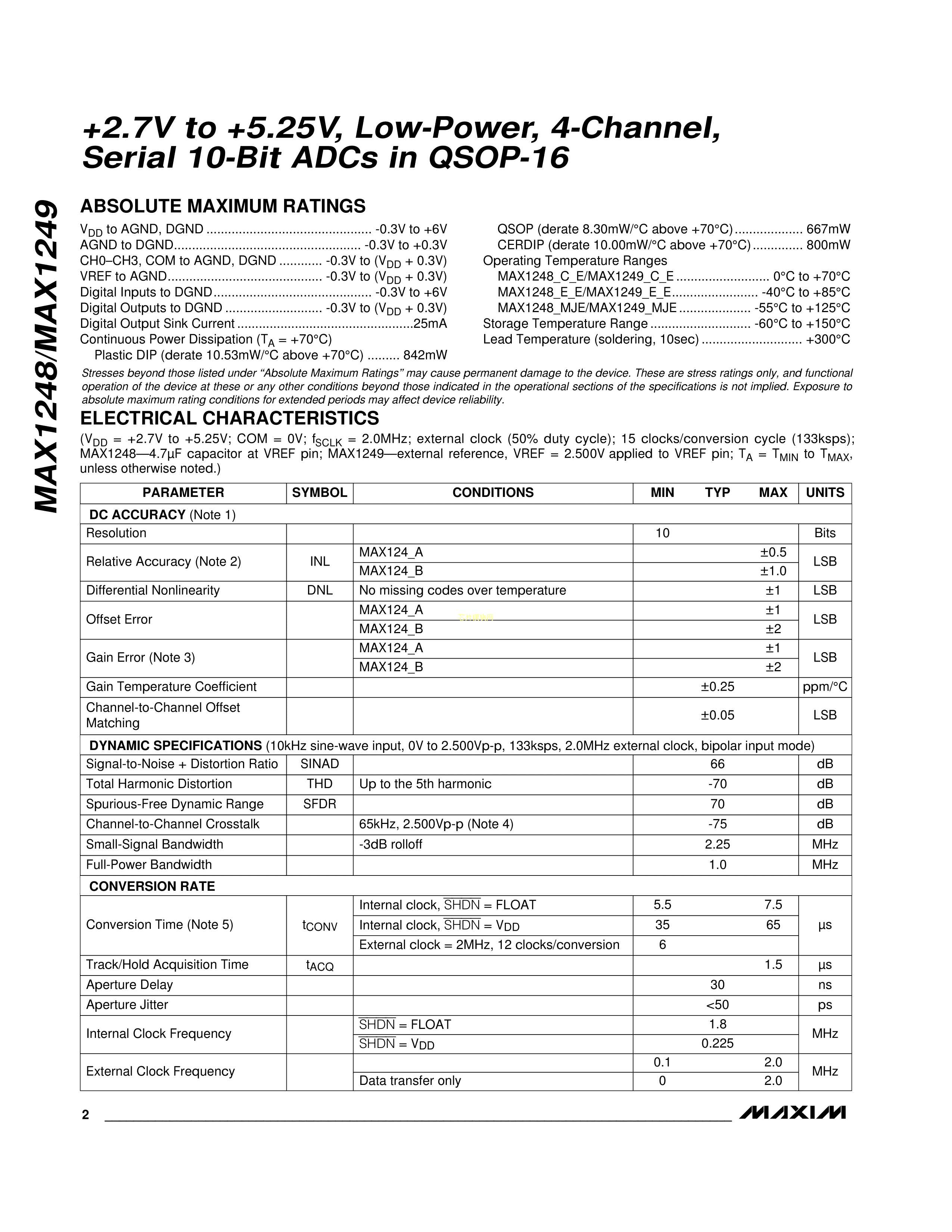MAX1249AEPE+数据手册PDIP-16封装MAXIM(美信)PDF规格书,中英文下载