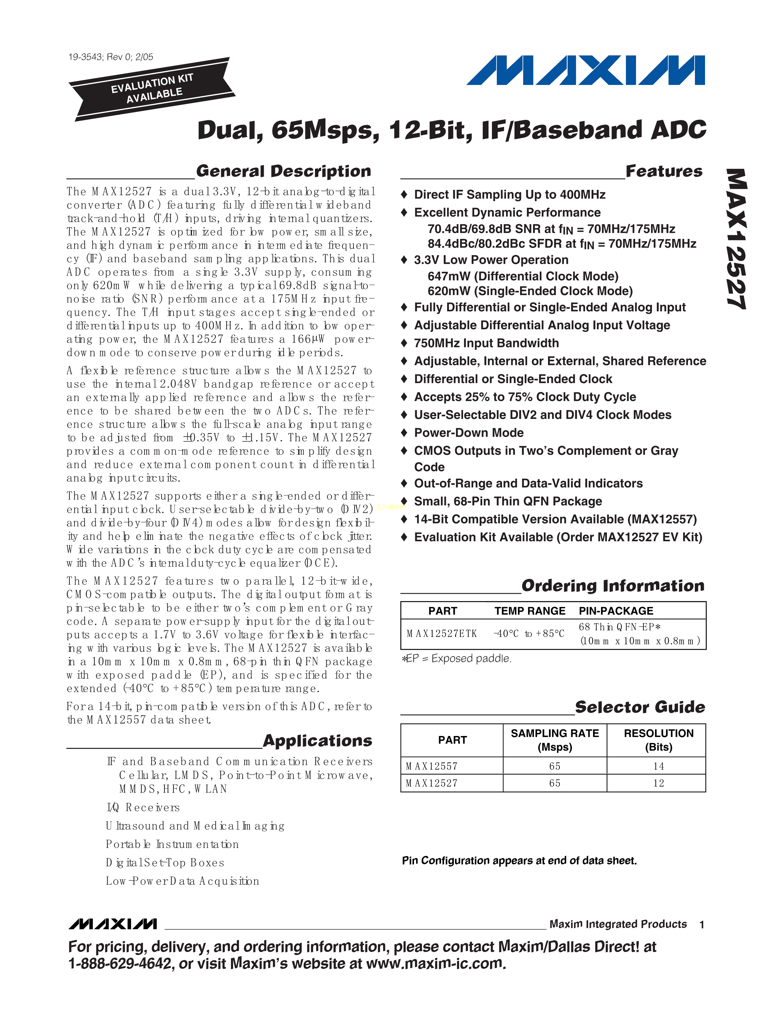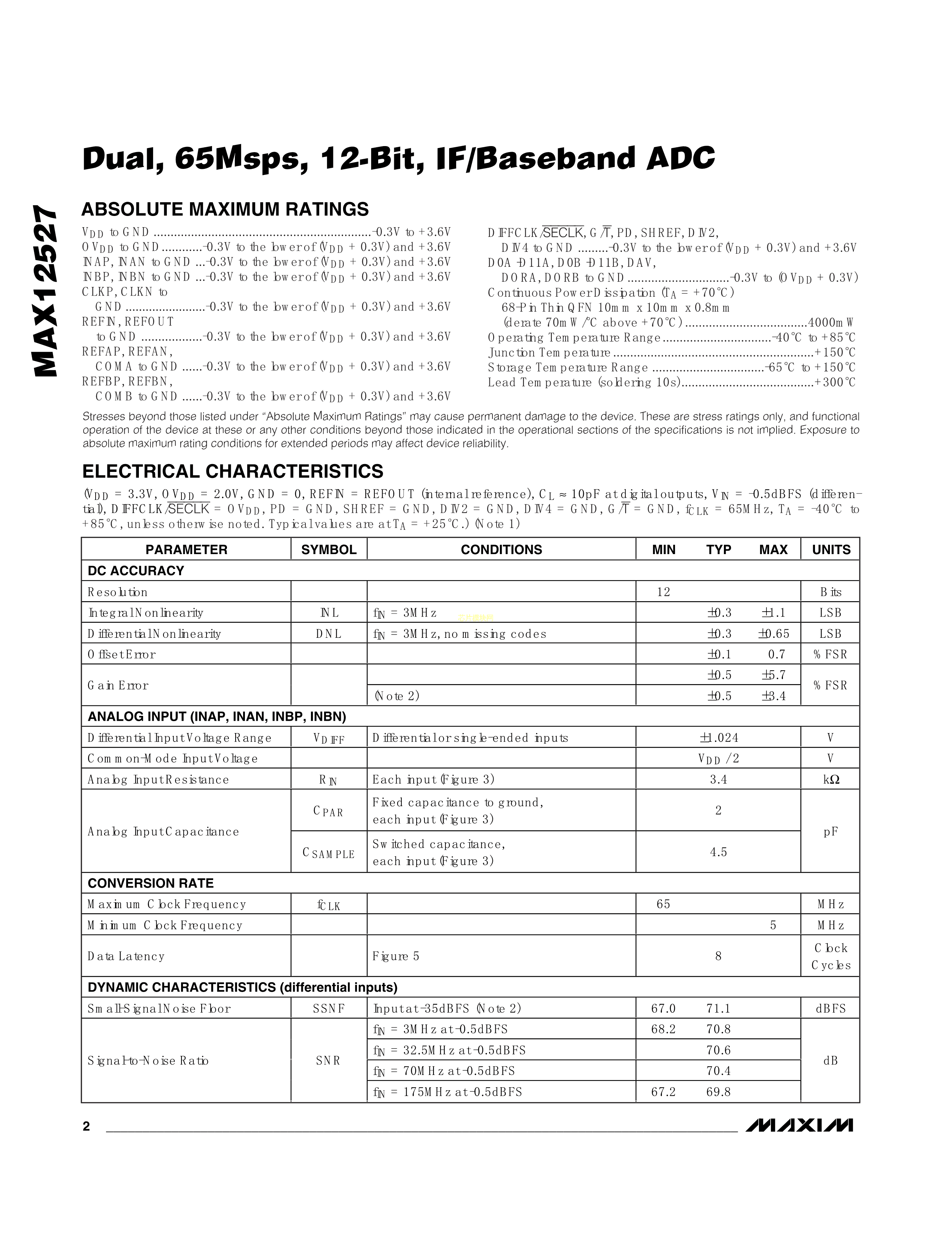 MAX12527ETK+D数据手册TQFN-68(10x10)封装MAXIM(美信)PDF规格书,中