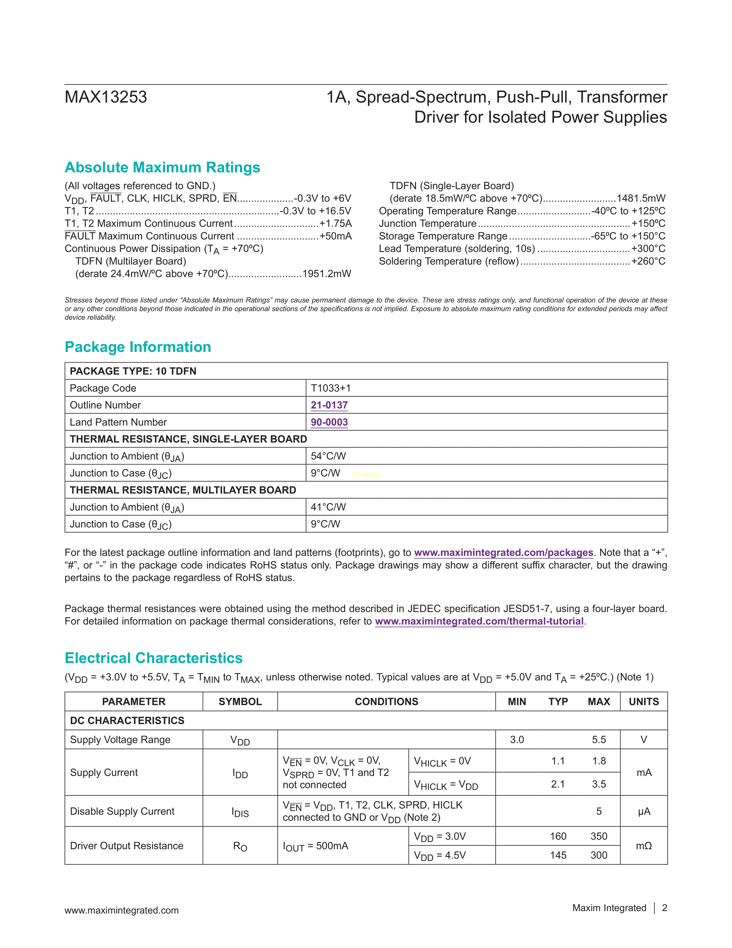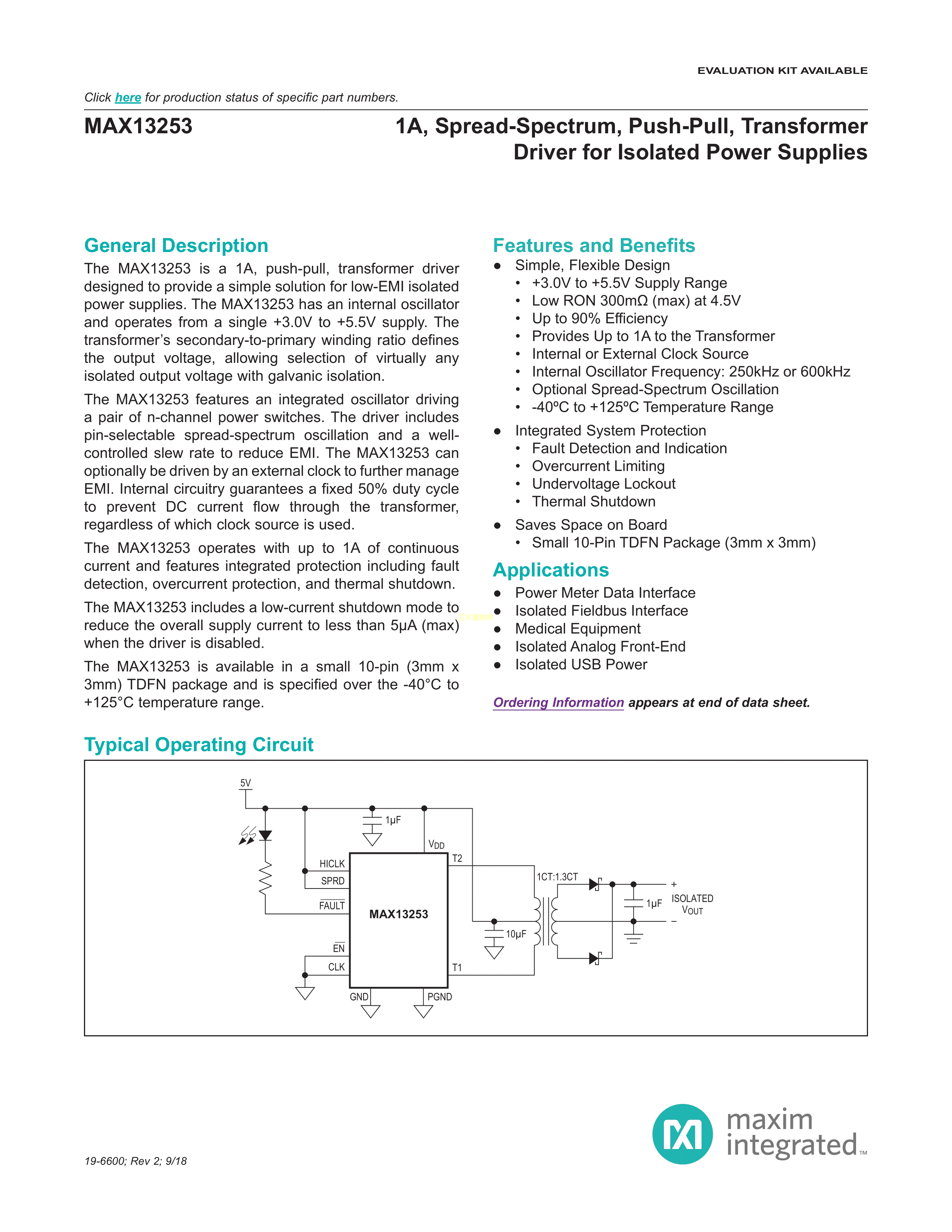 MAX13253ATB+T数据手册TDFN-10_EP(3x3)封装MAXIM(美信)PDF规格书,